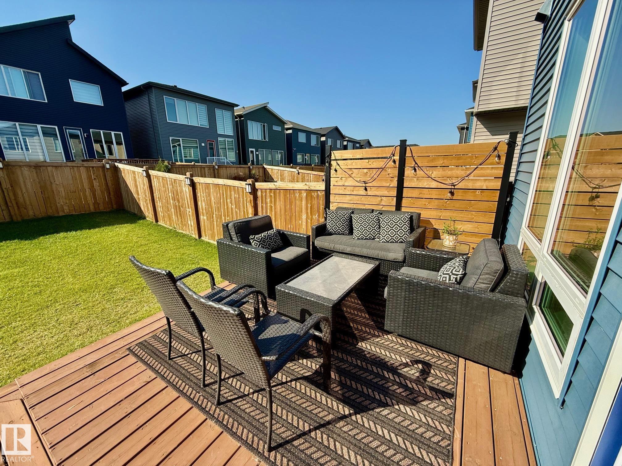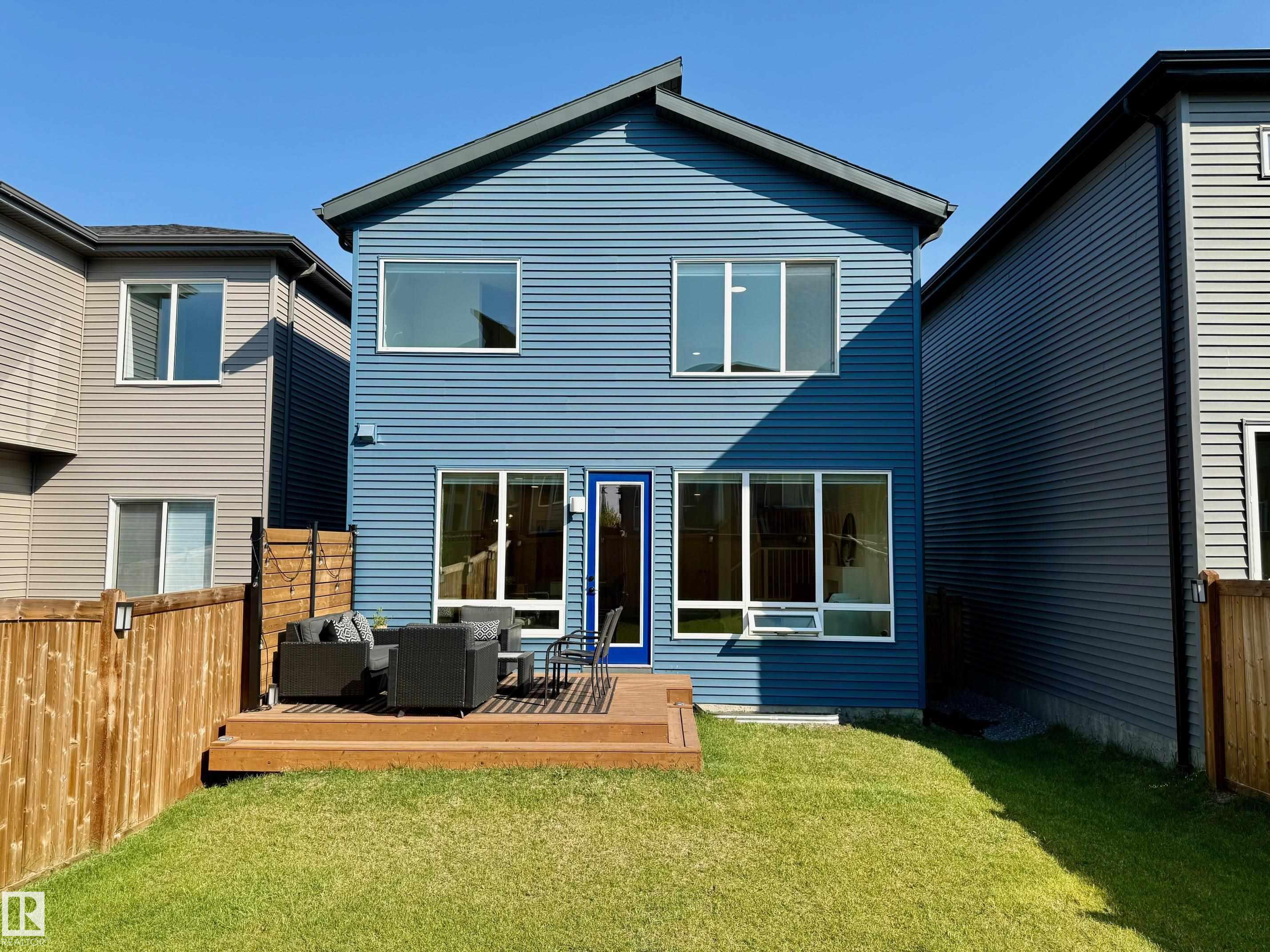 Located in the beautiful area of Orchards in Southeast Edmonton, near the airport, parks, shopping, and more, this stunning 1,978 sq ft home features a fully landscaped yard with a deck, an open-concept main floor, 4 well-sized bedrooms and 2.5 bathrooms. Built in 2022, the main floor of this modern home features a gorgeous open kitchen with a large island, a living area with a fireplace, and 9 ft. ceilings. The second floor features a stunning primary suite with a spa-inspired en-suite, including a large soaker tub, standing shower, and 2 sinks, and a large walk-in closet. On the second floor, there are also 3 spacious guest bedrooms, an additional bathroom, laundry area, and a lounge/theatre room. The basement is unfinished, with a side entrance that is ideal for developing a rental suite or entertainment area. The rear of this home faces south, featuring large windows that allow in plenty of natural light. This home is in a family-friendly area.