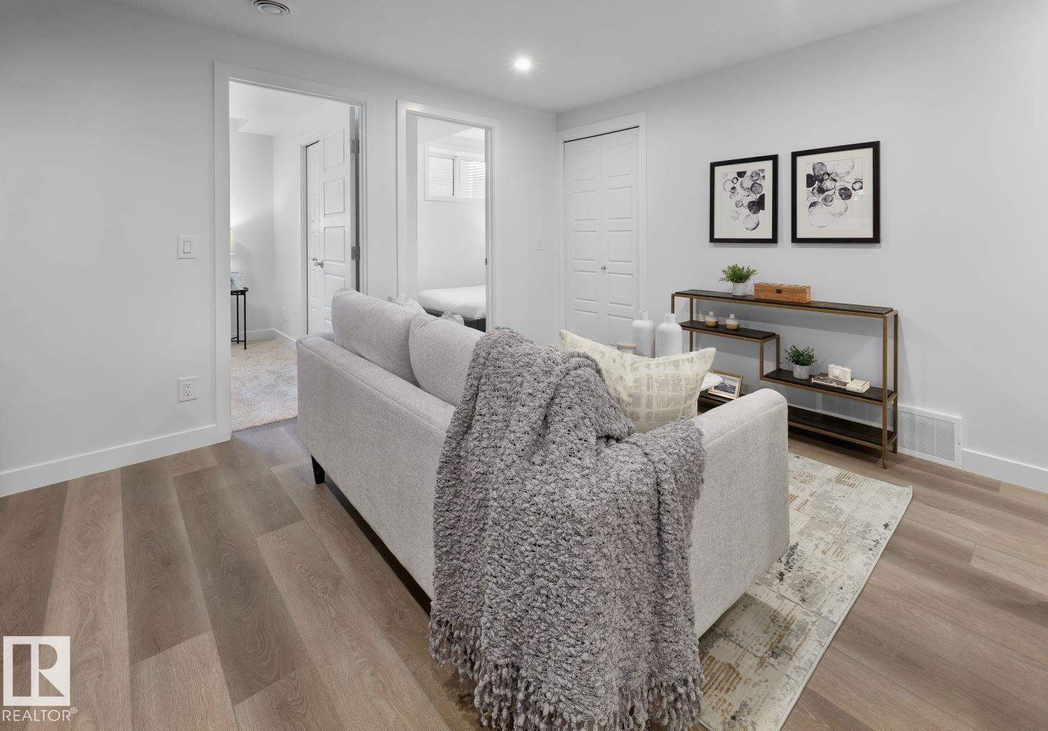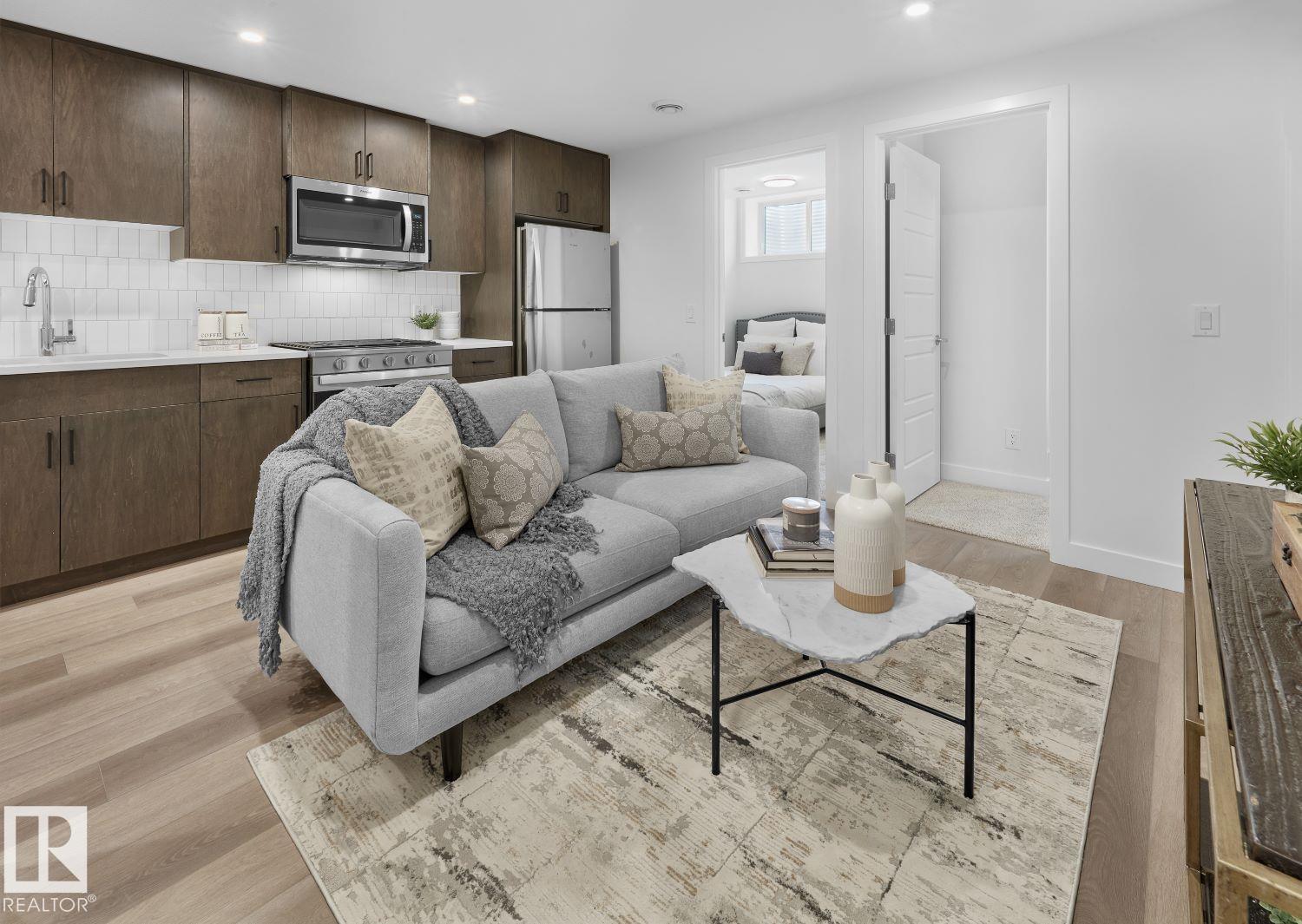 *TWO BEDROOM LEGAL SUITE, BACKING ONTO A SCHOOL PARK, EXTERIOR DECK INCLUDED* Looking for a DOUBLE FRONT ATTACHED GARAGE SINGLE FAMILY HOME with a SOUTH WEST facing yard? The Cascade is our 1854 sq.ft. (491 sq ft in the suite) 5 bedroom home located in Edmonton's award winning community of the Orchards. This spacious plan includes a MAIN FLOOR BEDROOM AND FULL BATHROOM. A beautifully upgraded kitchen, equipped with 3CM quartz, a chimney hoodfan, GAS range, built in microwave, french door fridge with EXTERNAL ice/water dispenser and dishwasher. The legal suite includes 9 ft foundation walls, two bedrooms, stainless steel kitchen appliances and a washer/dryer pair. Upstairs, the primary ensuite offers dual vanities, and we've equipped the laundry room with a washer/dryer. The lot is a CONVENTIONAL lot (not a zero lot line) and backs onto a FUTURE SCHOOL PARK. We've already included a 10x10 PTW deck with aluminum railing. Please note: Photographs are of show home