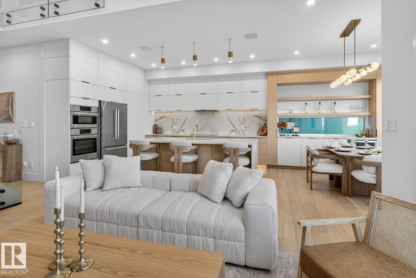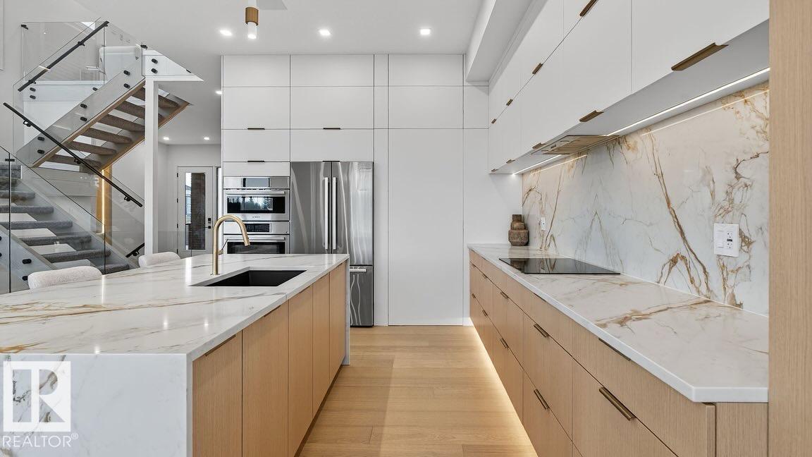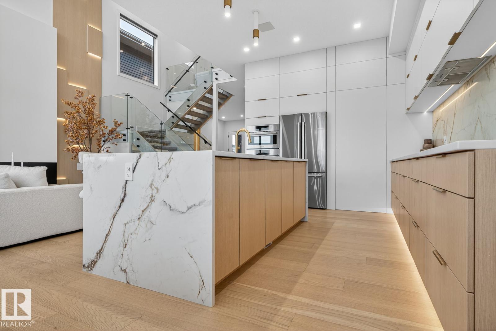 Welcome to THE ORCHARDS, one of the South Edmonton's most popular and family friendly communities. This stunning 4 BEDROOM, 3 BATHROOM single family home sits on a walkout lot backing onto a serene pond, offering both luxury and tranquility. The main floor features a bedroom with a full bath, 9ft ceilings, and a chef's kitchen with premium quartz countertops, high end cabinetry, hardwood flooring and built in speakers throughout the home. Enjoy the abundance of natural light from extra large windows and admire the imported designer lightning and plumbing fixtures. Additional highlights include a walk-in laundry room an central vacuum rough-in. Ideally located close to parks, schools, the airport and major highways, this home combines upscale finishes with everyday convenience, a perfect choice for modern family living. . *taxes not assessed
