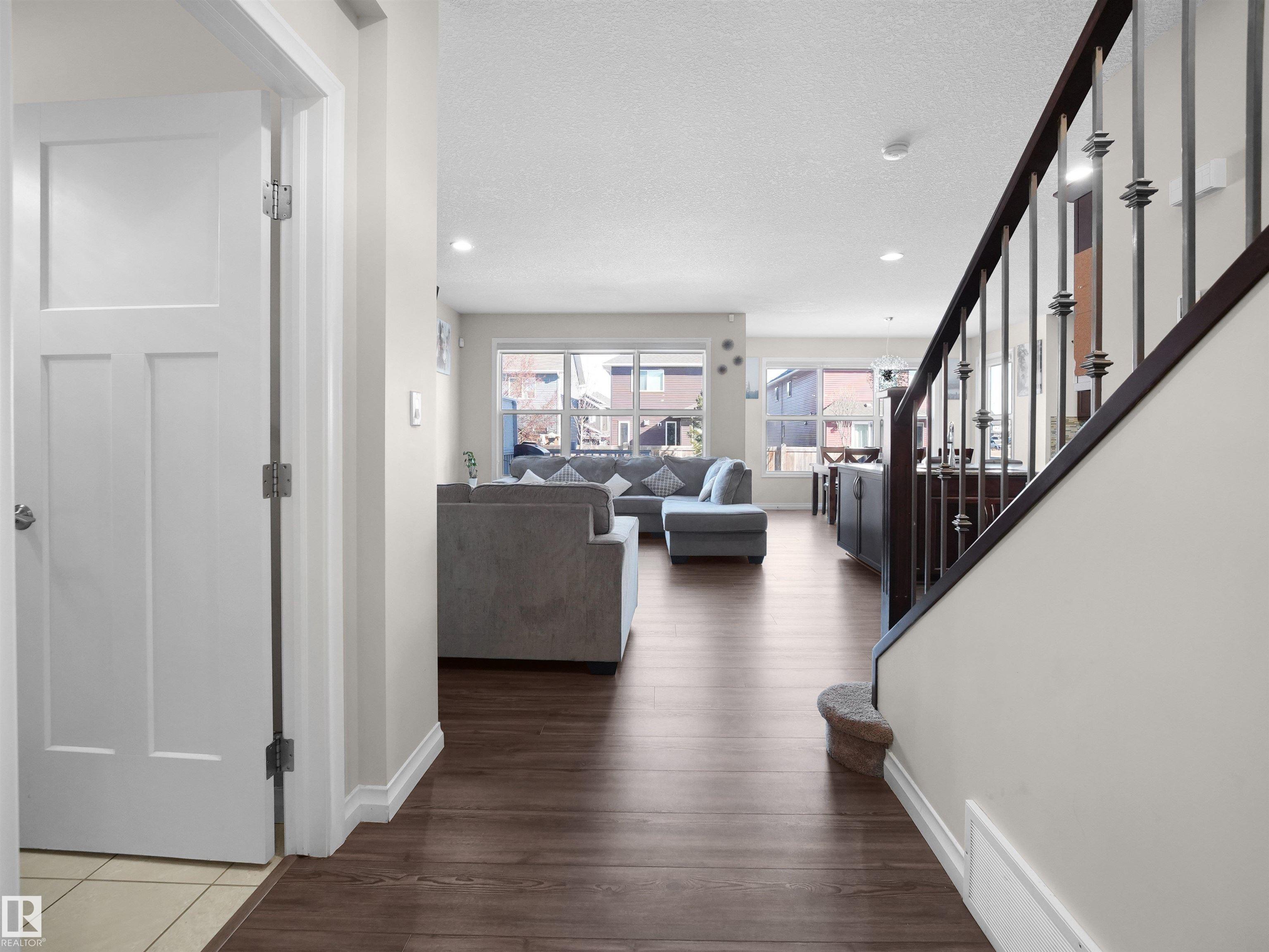 Welcome to this stunning 2-storey home offering 2,081 sq ft in the sought-after Orchards community of SW Edmonton. With 9 functional spaces (4 bedrooms, 2 dens/offices, 2 family rooms, and a living room), plus 3 full baths and 2 half baths, this home is perfect for growing families. The main floor features a bright open-concept layout with a large island, rich cabinetry, stainless steel appliances, and a dining area that opens to a spacious deck and fully fenced yard. Upstairs offers a primary suite with walk-in closet and ensuite, 2 bedrooms, a full bath, laundry, and a bonus room. The fully finished basement adds extra space, a full bath, and future suite potential. A standout feature is the oversized double garage with a saloon/executive room and its own washroom--ideal for a home office or private retreat. Close to the Orchards Club House and all amenities!