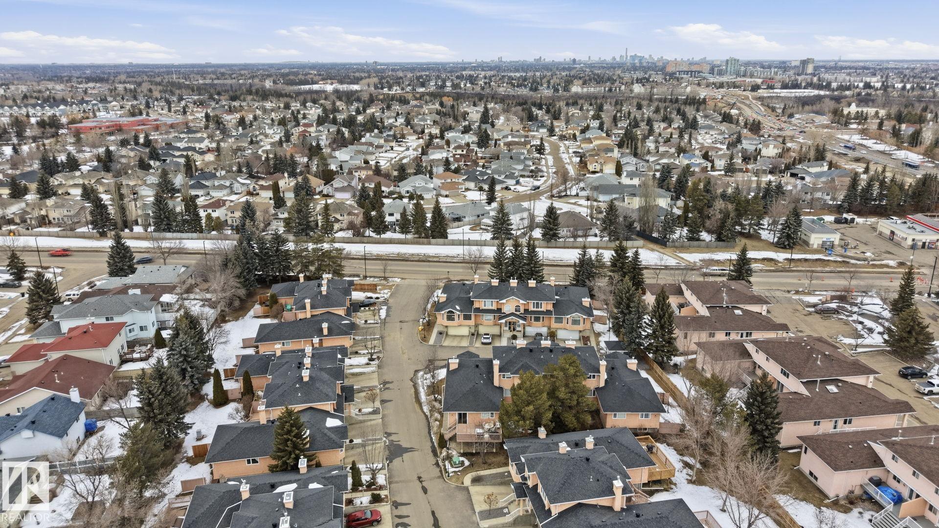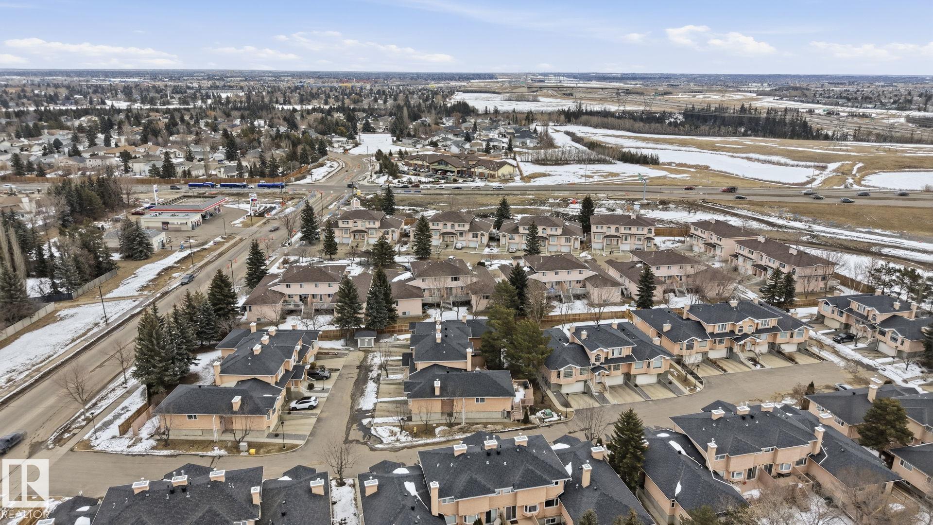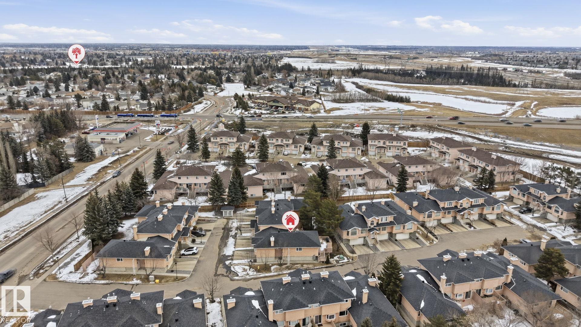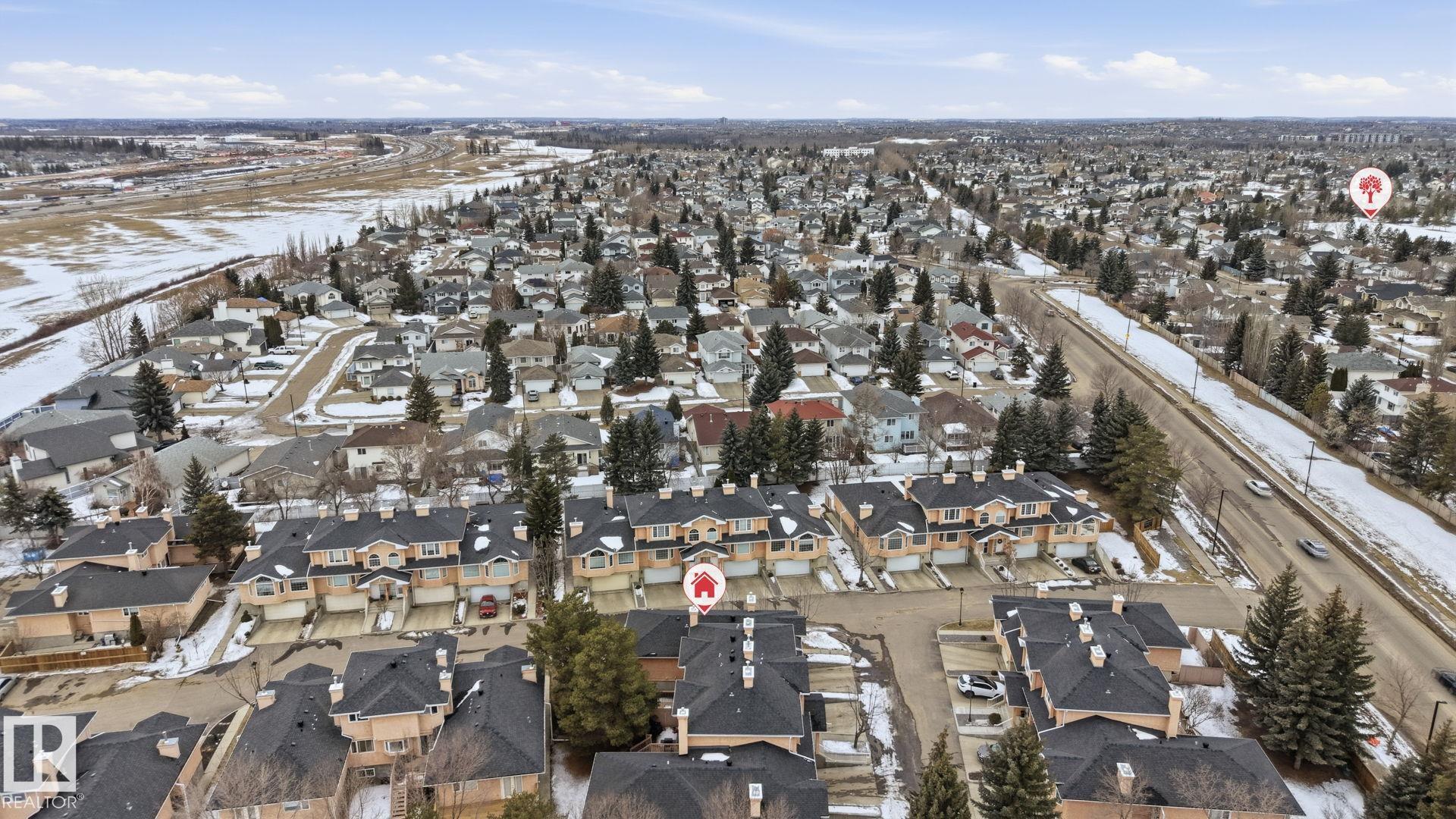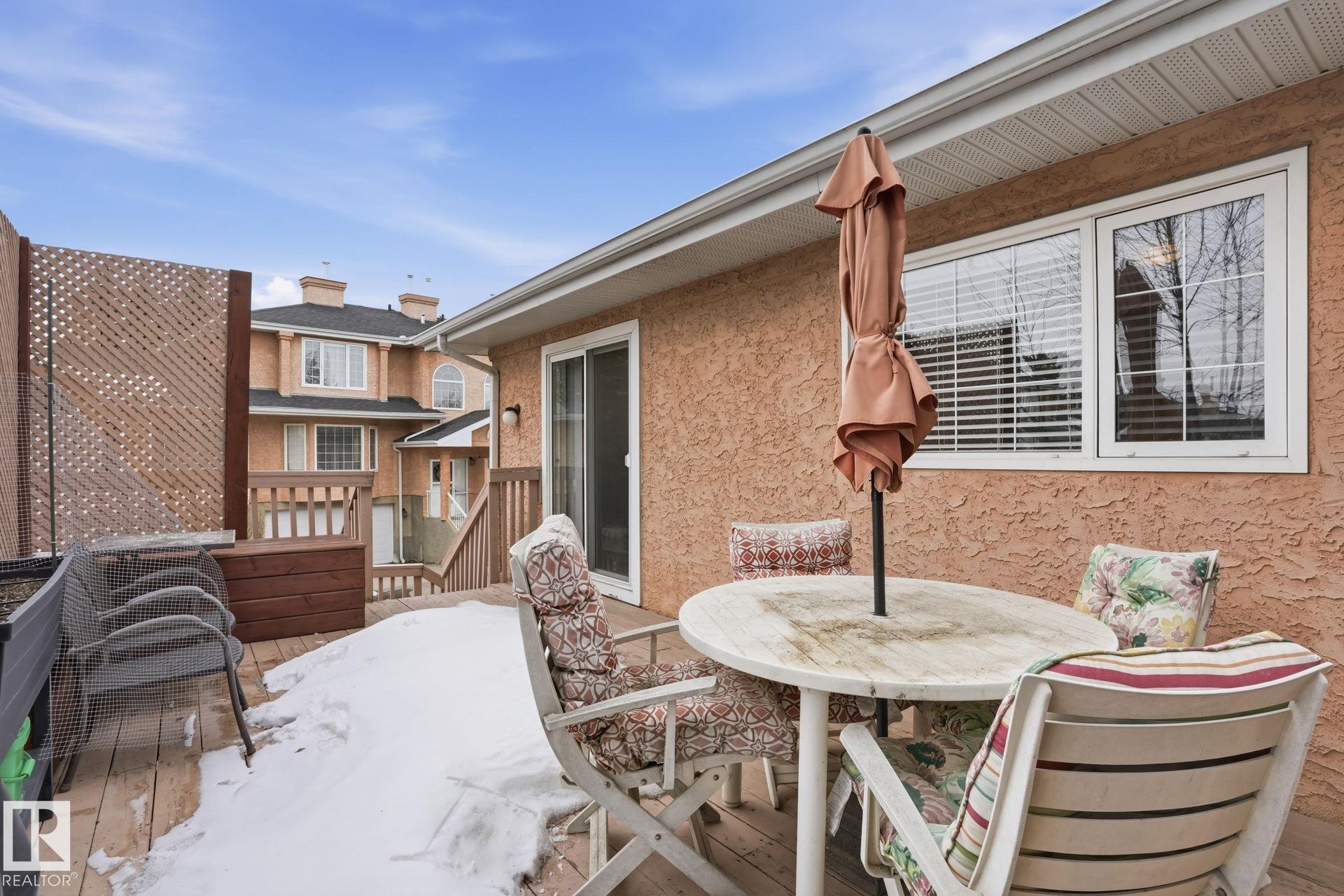 Welcome home to this bright and inviting corner bi-level townhouse in Ravenwood Court, offering over 1,800 SqFt of finished living space. Large windows and a vaulted ceiling in the living room create an airy, open feel while the gas fireplace adds the perfect touch of warmth. With 4 bedrooms and 3 full bathrooms, this home provides plenty of room for families, guests, or a home office. The spacious primary bedroom features a walk-in closet and private 4-piece ensuite, while the second bedroom offers sliding doors leading to a private patio complete with built-in benches and privacy screens--a great space to relax outdoors. The fully finished basement adds even more flexibility with two additional bedrooms, a full bathroom, and laundry area. Recent updates include a new furnace (2021) and microwave hood fan (2023). Located close to schools, transit, major roadways, easy access to the Anthony Henday and a quick ride to the airport, this home offers the perfect balance of space, comfort, and convenience!