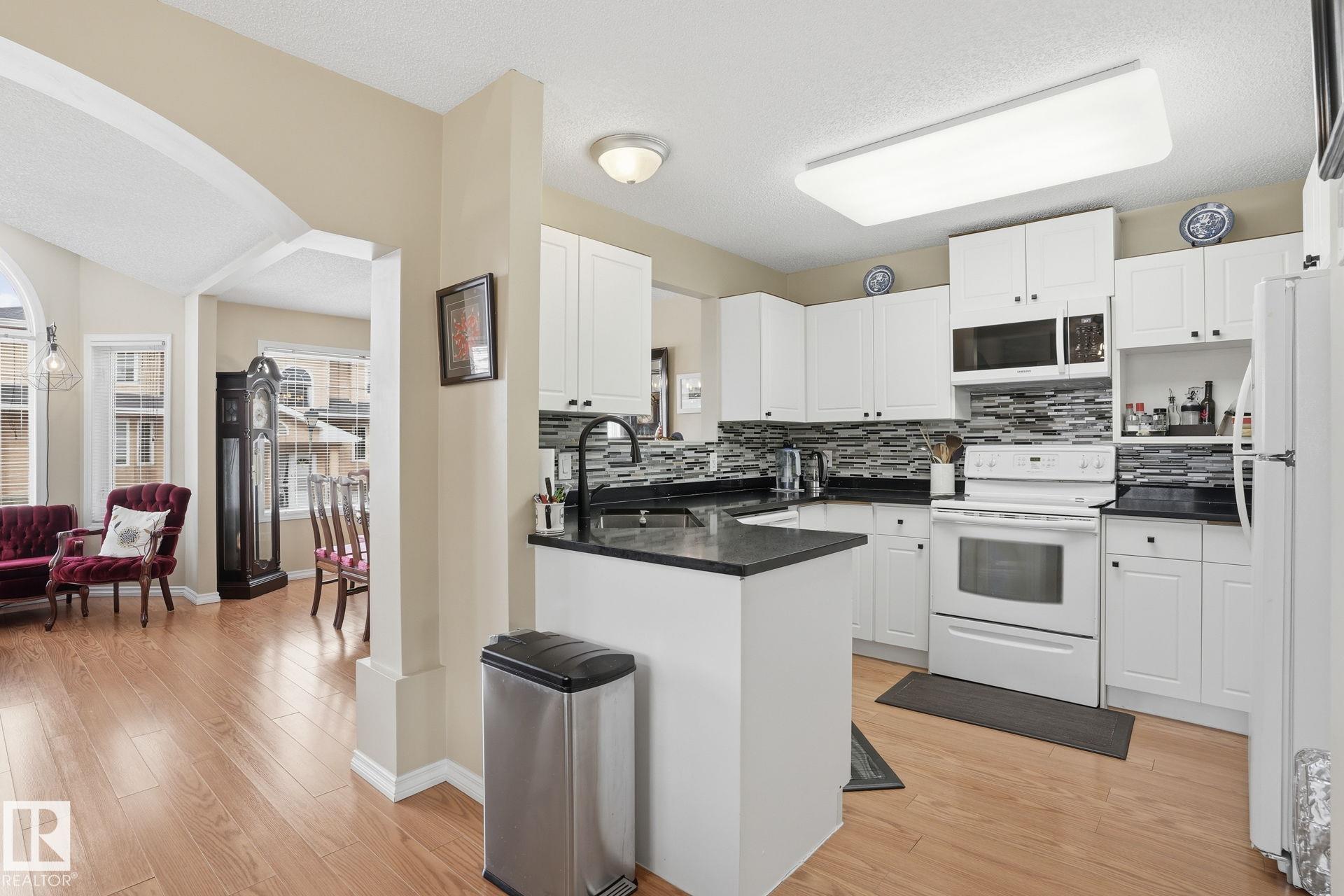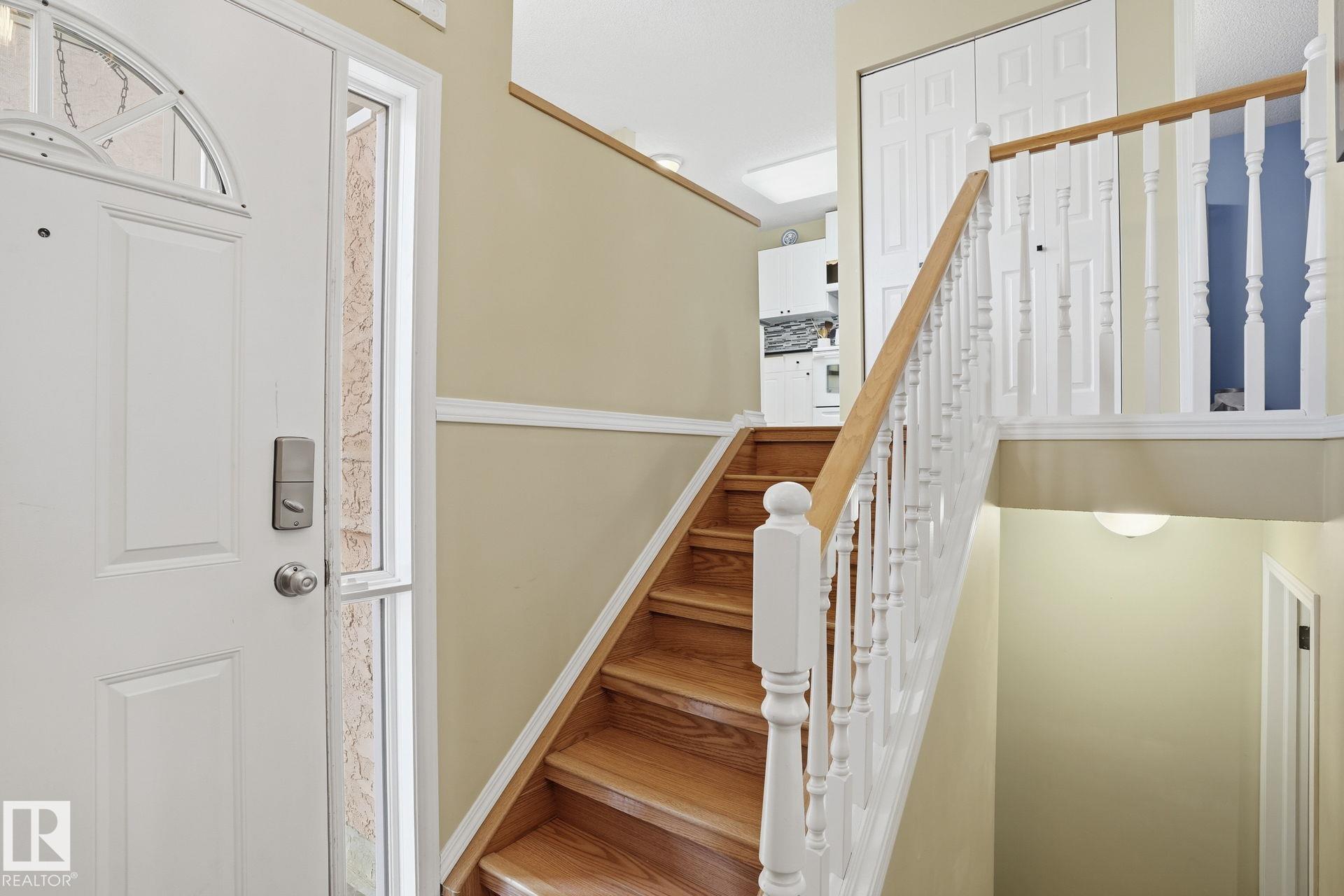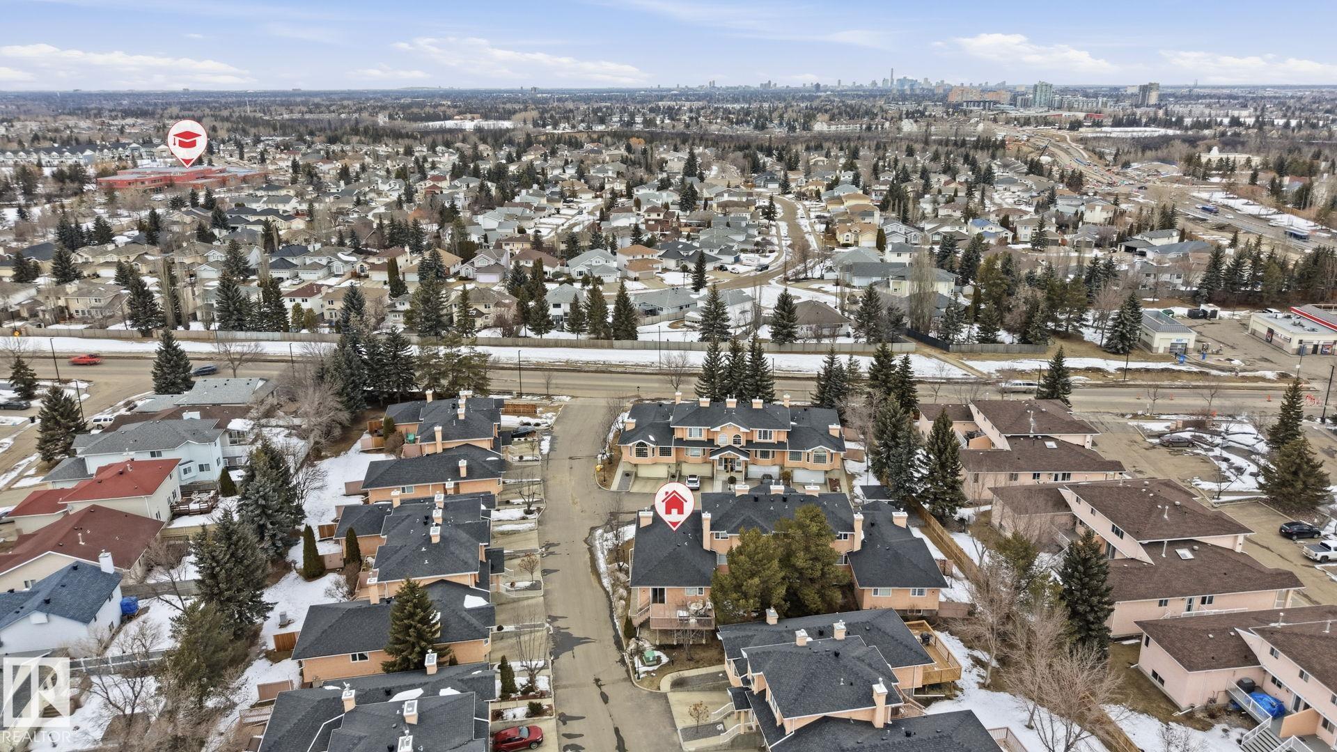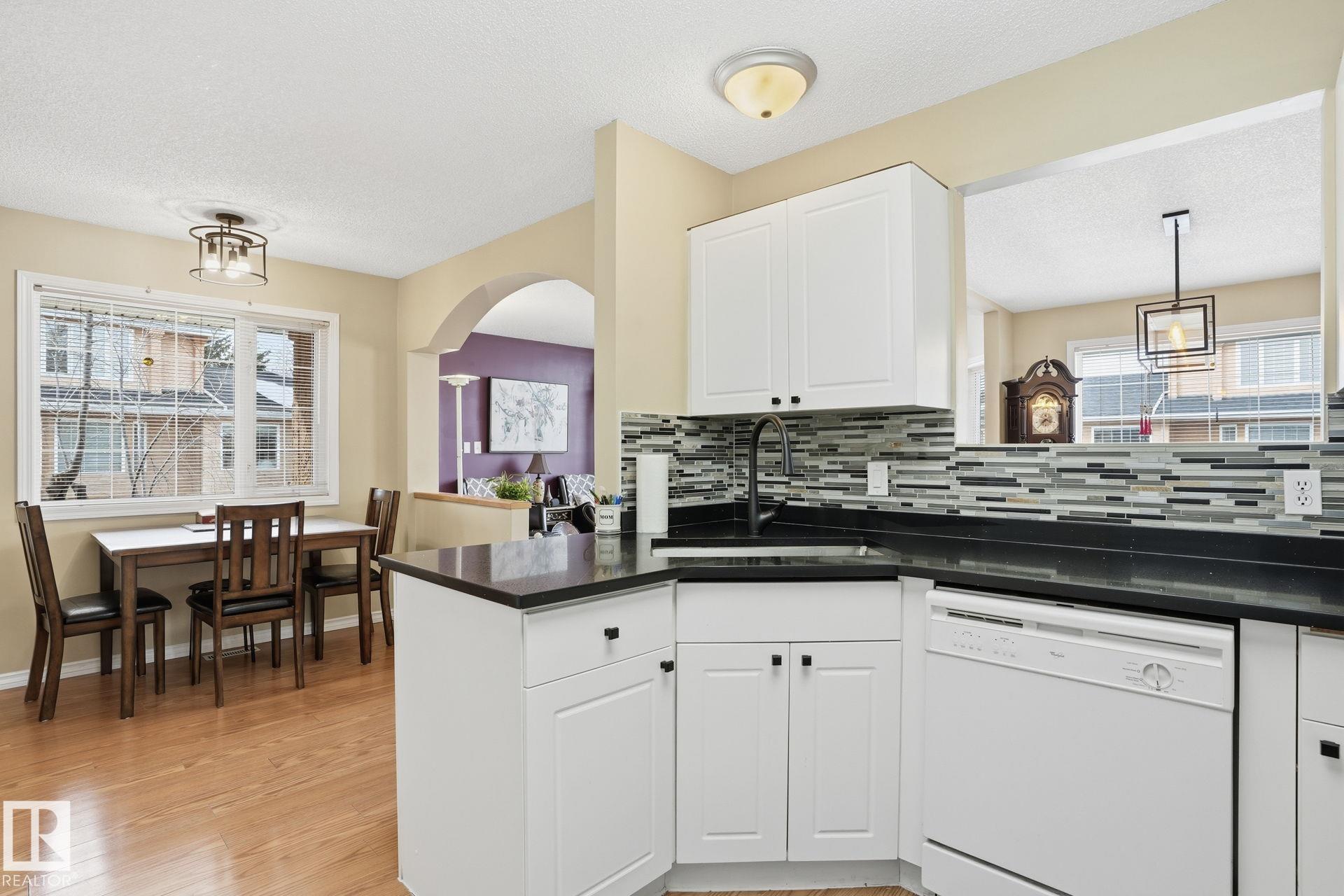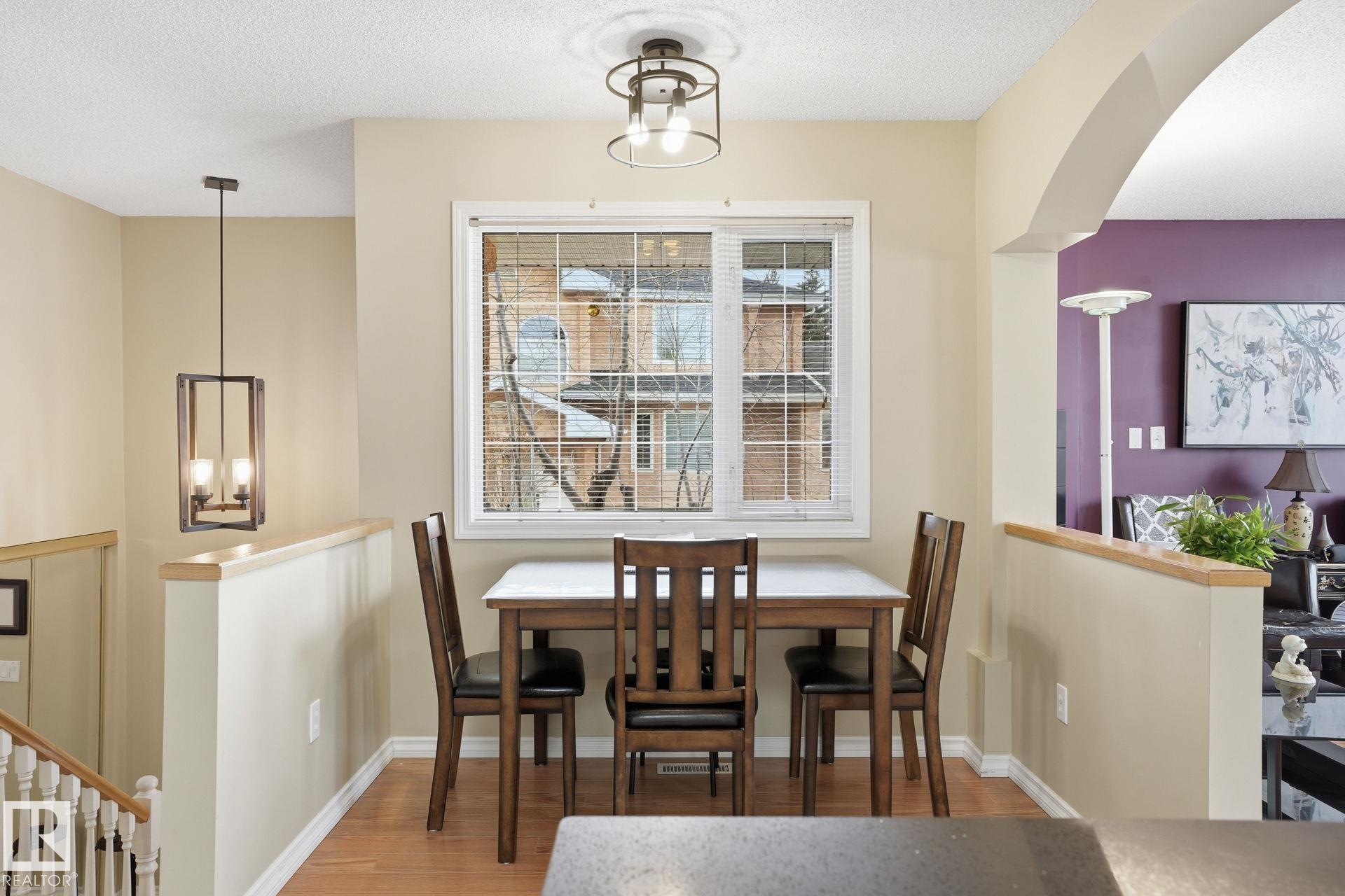 Welcome home to this bright and inviting corner bi-level townhouse in Ravenwood Court, offering over 1,800 SqFt of finished living space. Large windows and a vaulted ceiling in the living room create an airy, open feel while the gas fireplace adds the perfect touch of warmth. With 4 bedrooms and 3 full bathrooms, this home provides plenty of room for families, guests, or a home office. The spacious primary bedroom features a walk-in closet and private 4-piece ensuite, while the second bedroom offers sliding doors leading to a private patio complete with built-in benches and privacy screens--a great space to relax outdoors. The fully finished basement adds even more flexibility with two additional bedrooms, a full bathroom, and laundry area. Recent updates include a new furnace (2021) and microwave hood fan (2023). Located close to schools, transit, major roadways, easy access to the Anthony Henday and a quick ride to the airport, this home offers the perfect balance of space, comfort, and convenience!