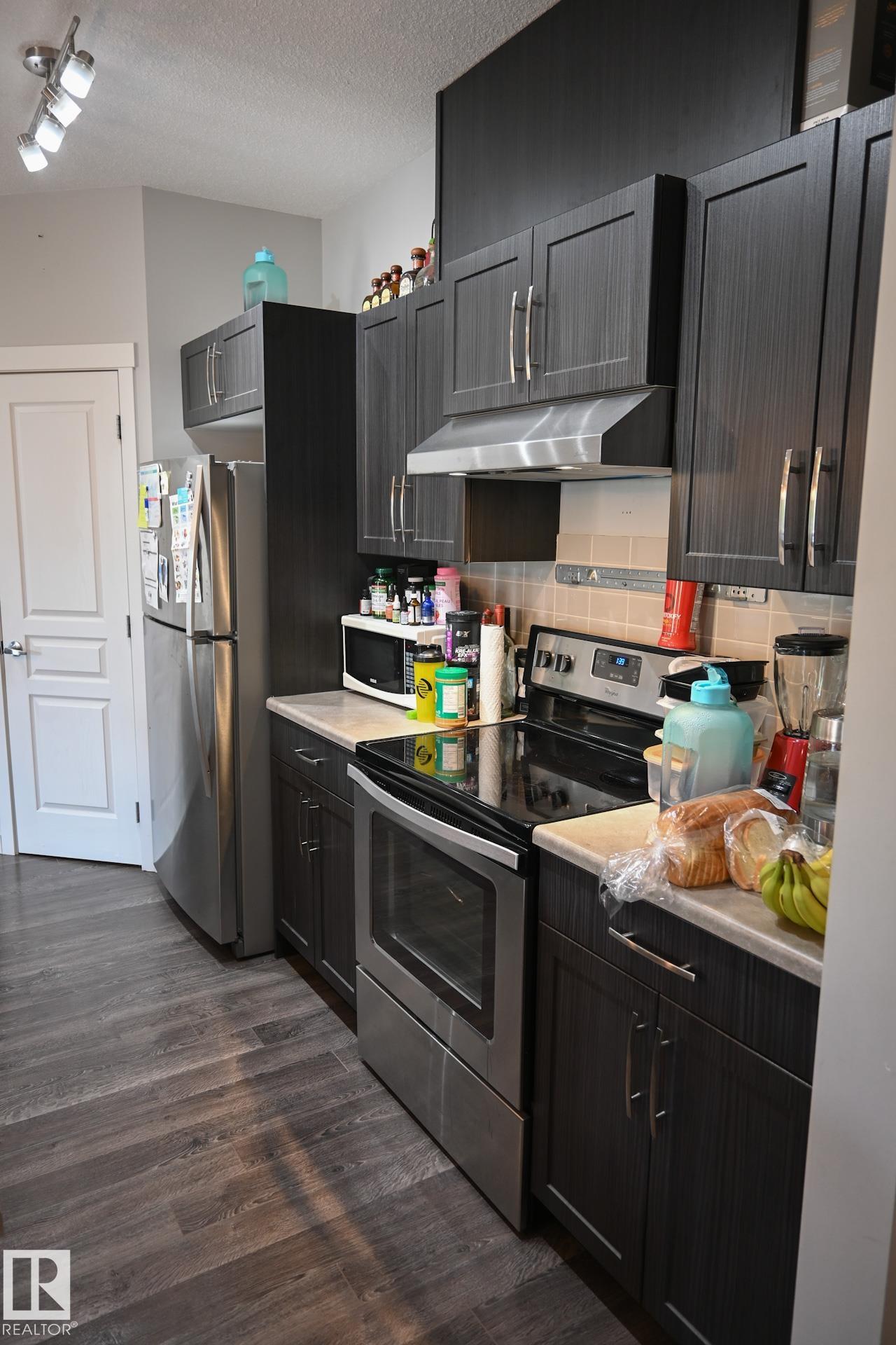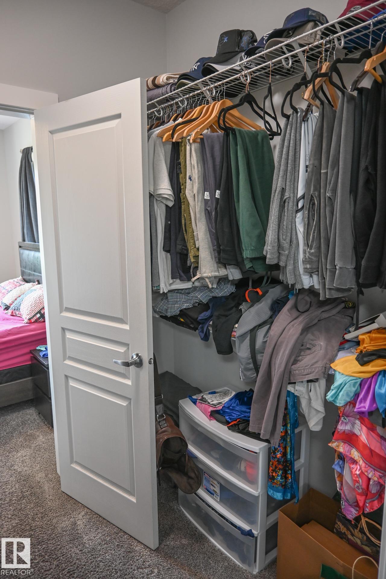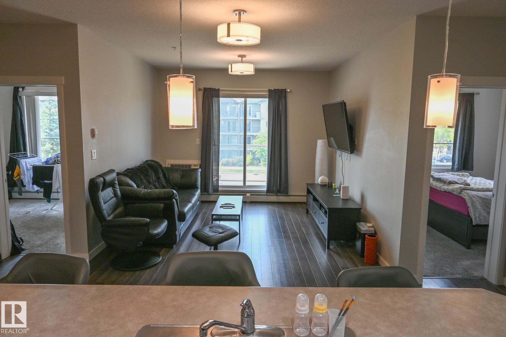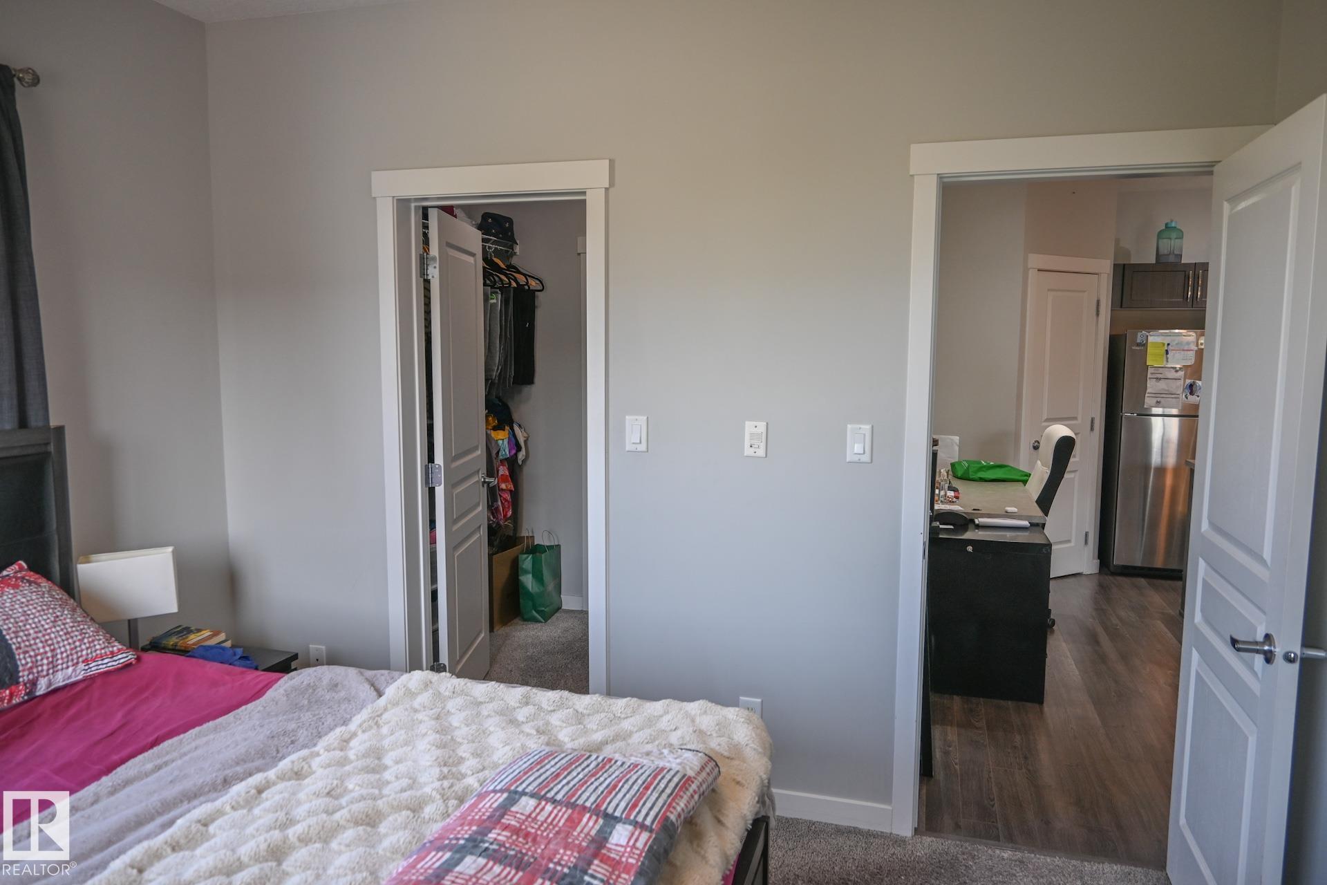 Welcome to this air conditioned bright corner unit in a prime Southeast Edmonton location! Boasting extra windows that flood the home with natural light. Enjoy your own private balcony, perfect for morning coffee or evening sunsets. Step inside to a fantastic open-concept layout featuring a spacious kitchen with an oversized walk-in pantry, plenty of cabinet space, and a handy desk area for work or study. The large living and dining areas are framed by 9' ceilings, giving the space an expansive, airy feel. There are two generous-sized bedrooms, including a master suite with a walk-through closet and a luxurious en-suite bathroom with dual counters and plenty of storage. Comes with a 2nd full bathroom, in-suite laundry, and additional storage, underground parking (#54) for year-round convenience, and a prime location with easy access to public transit, schools, shopping, and grocery stores. With a huge floorplan of 959 square feet! Don't miss the chance to make this beautiful condo your new home!