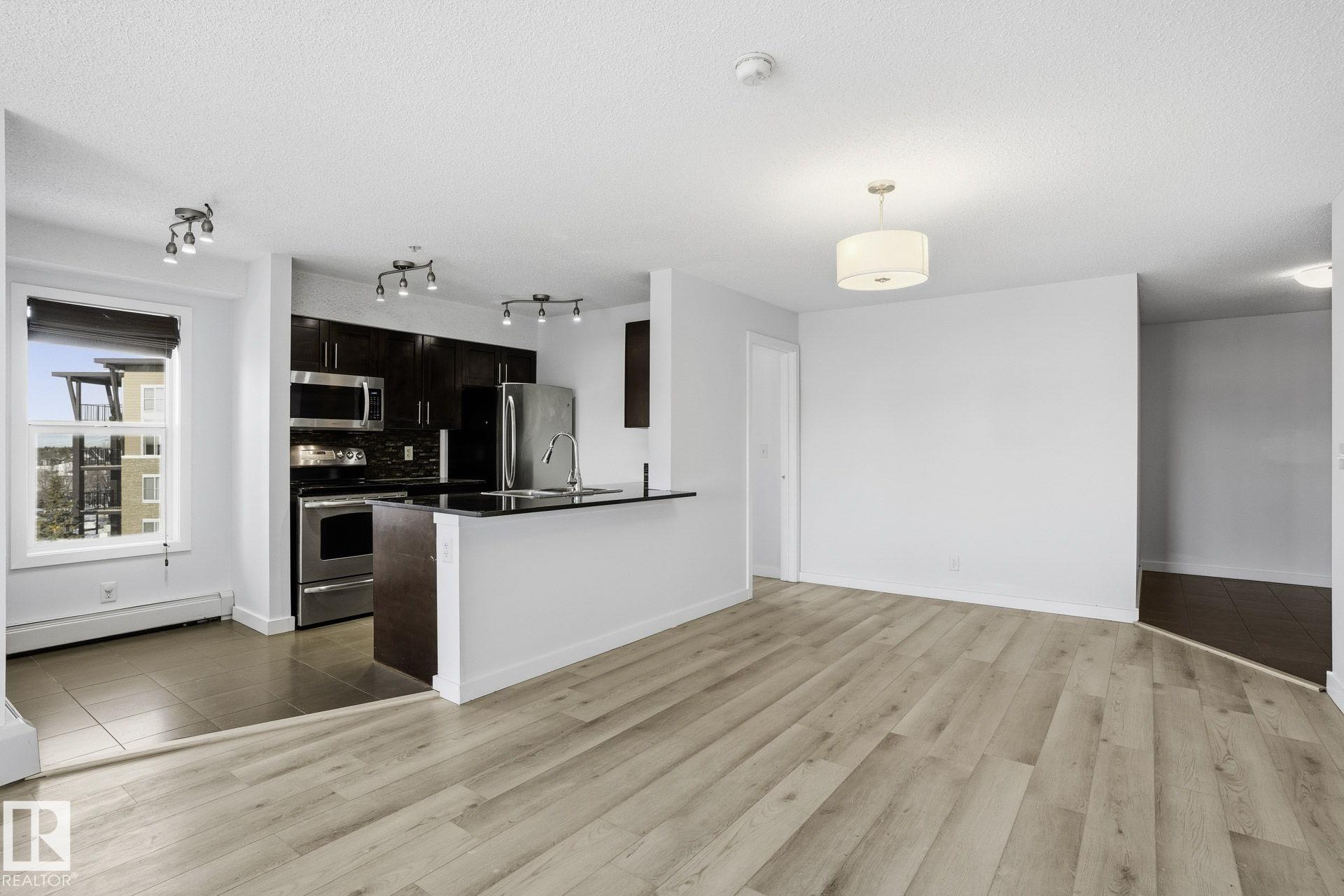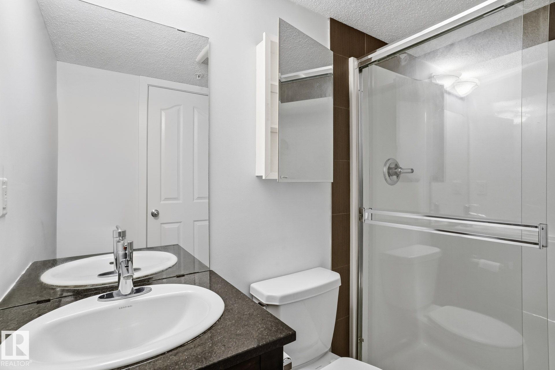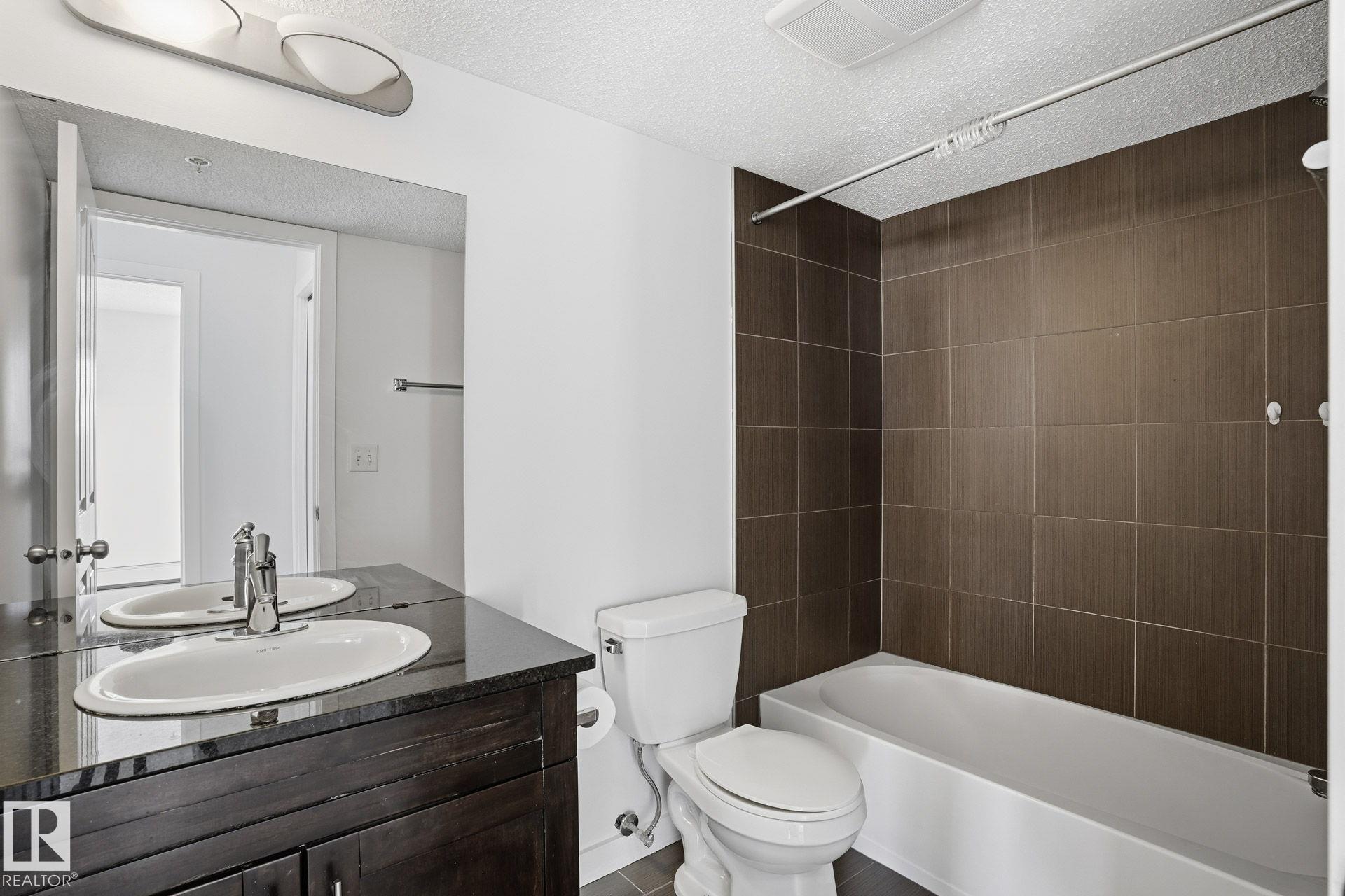 Bright, beautifully RENOVATED 2-bedroom, 2-bath condo in the desirable community of Walker Lake, where comfort meets convenience. Brand new luxury vinyl plank flooring throughout (no carpet) and an inviting open-concept design create a modern, welcoming feel from the moment you enter. Granite countertops and large windows add both style and abundant natural light. The spacious primary bedroom is a private retreat featuring a walk-in closet and a 4-piece ensuite. A generously sized second bedroom, perfectly located next to a second 4-piece bathroom, is ideal for guests, children, or roommates. A flexible den space makes working from home easy and efficient. Enjoy your own private patio, perfect for casual entertaining & continues with a titled, heated underground parking stall. Located in southwest Edmonton neighborhood, you're just steps from schools, parks, shopping. Professionally cleaned and truly move-in ready, this home this home offers the lifestyle you've been waiting for--just unpack and enjoy.
