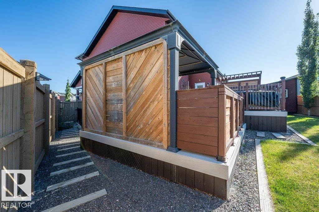 Welcome to the Walker Community! This 2 storey home shines with pride of ownership. Offering luxury and comfort on 3 levels. Main floor welcomes you to a large foyer, extensive closet space, bathroom and den/office room. Access the garage from foyer for winter convenience. Open concept is fantastic for entertaining, gas F/P, numerous yard facing windows give natural light. Gourmet kitchen with walk-in pantry, 6 burner gas stove and large island, all opening up to beautiful landscaped yard with gazebo, tiered deck, numerous plants and trees. All fenced in to perfection. The upper level hosts laundry room, 2 spacious bedrooms and impressive primary suite with spa-like ensuite to enjoy and pamper yourself. Fully finished basement is set up with Edmonton Oilers themed theatre room and bar. Large full basement bathroom with floor to ceiling tiles is shower are complimented with LED lighting! All this just steps away from walking paths, schools and parks. Move right in!