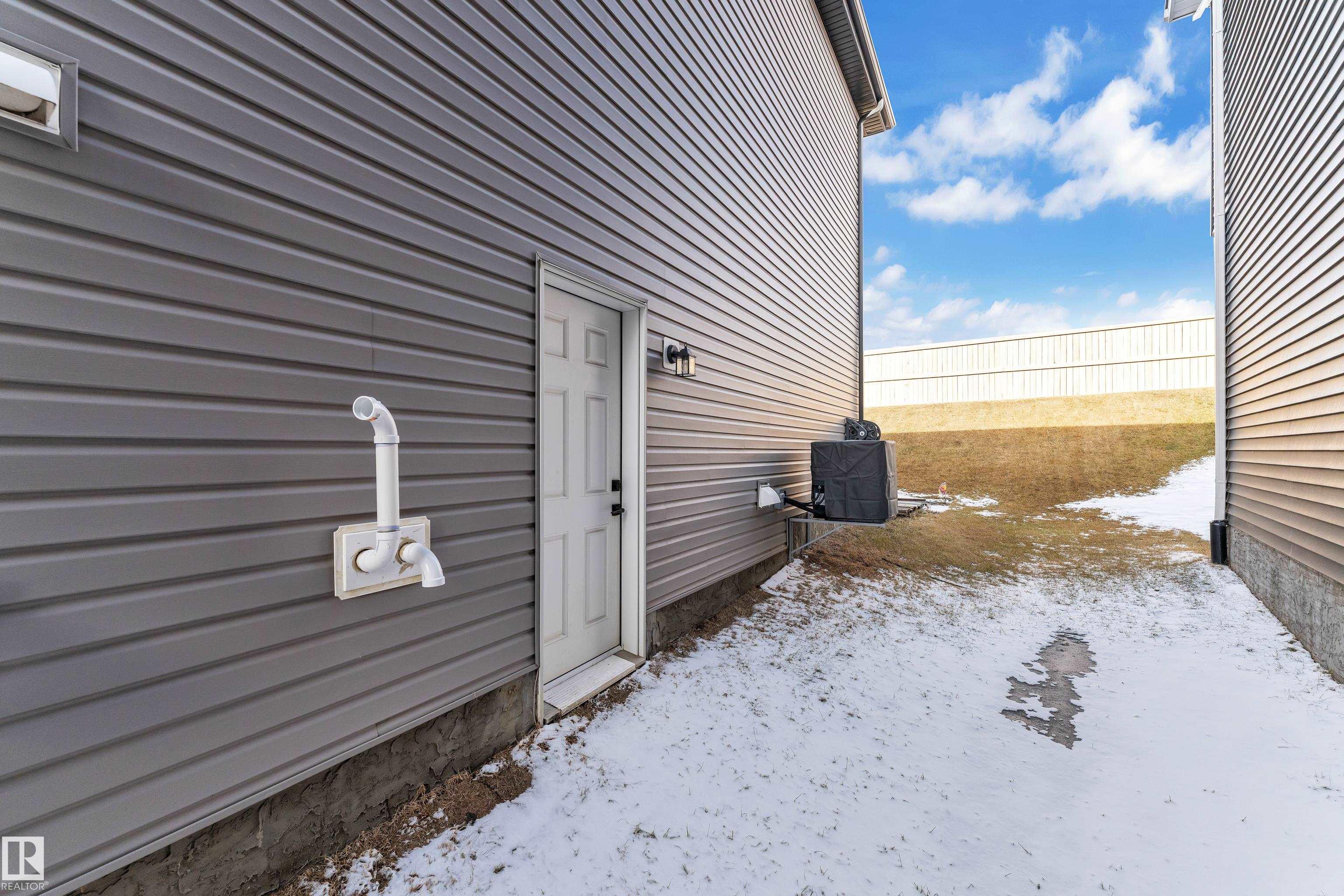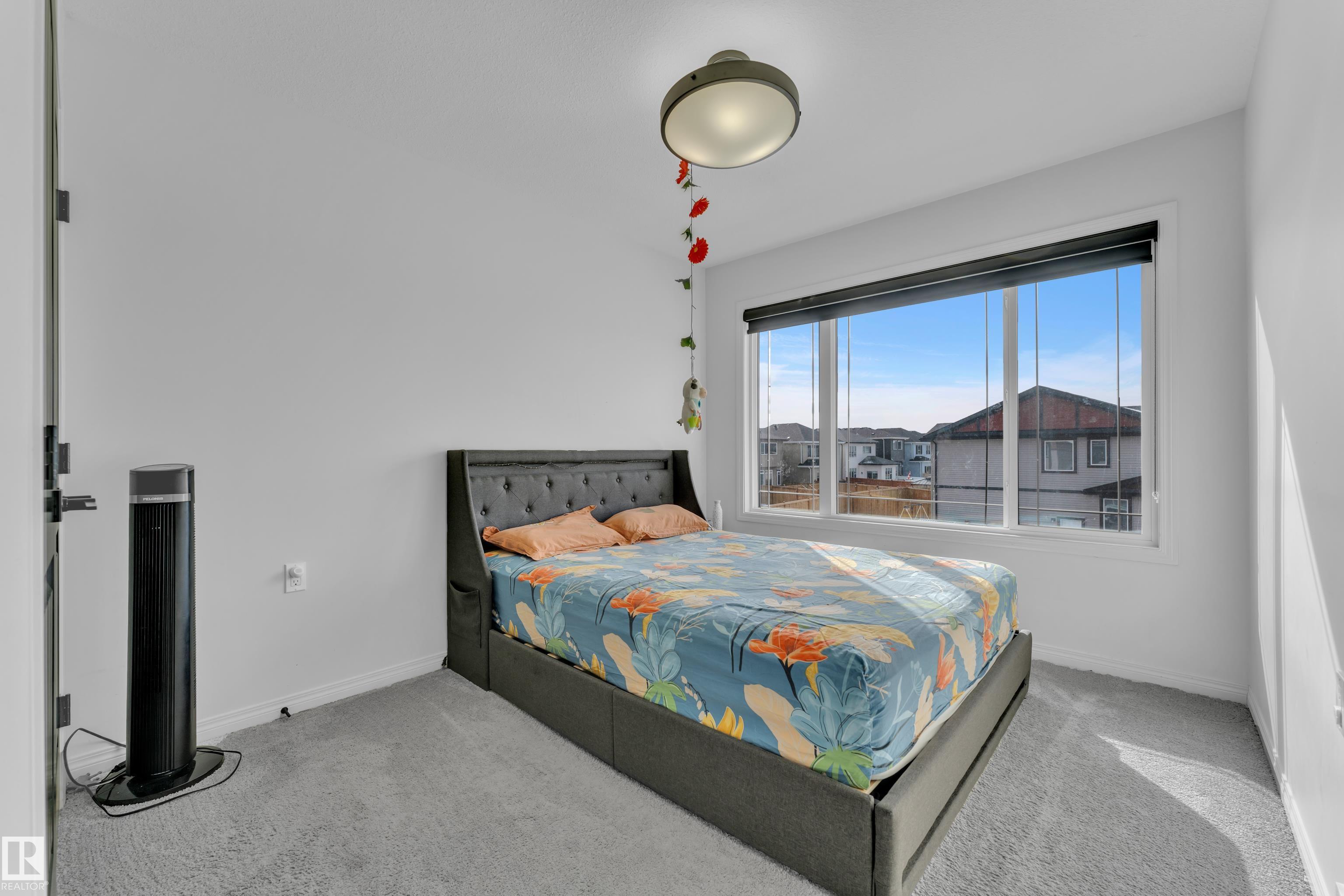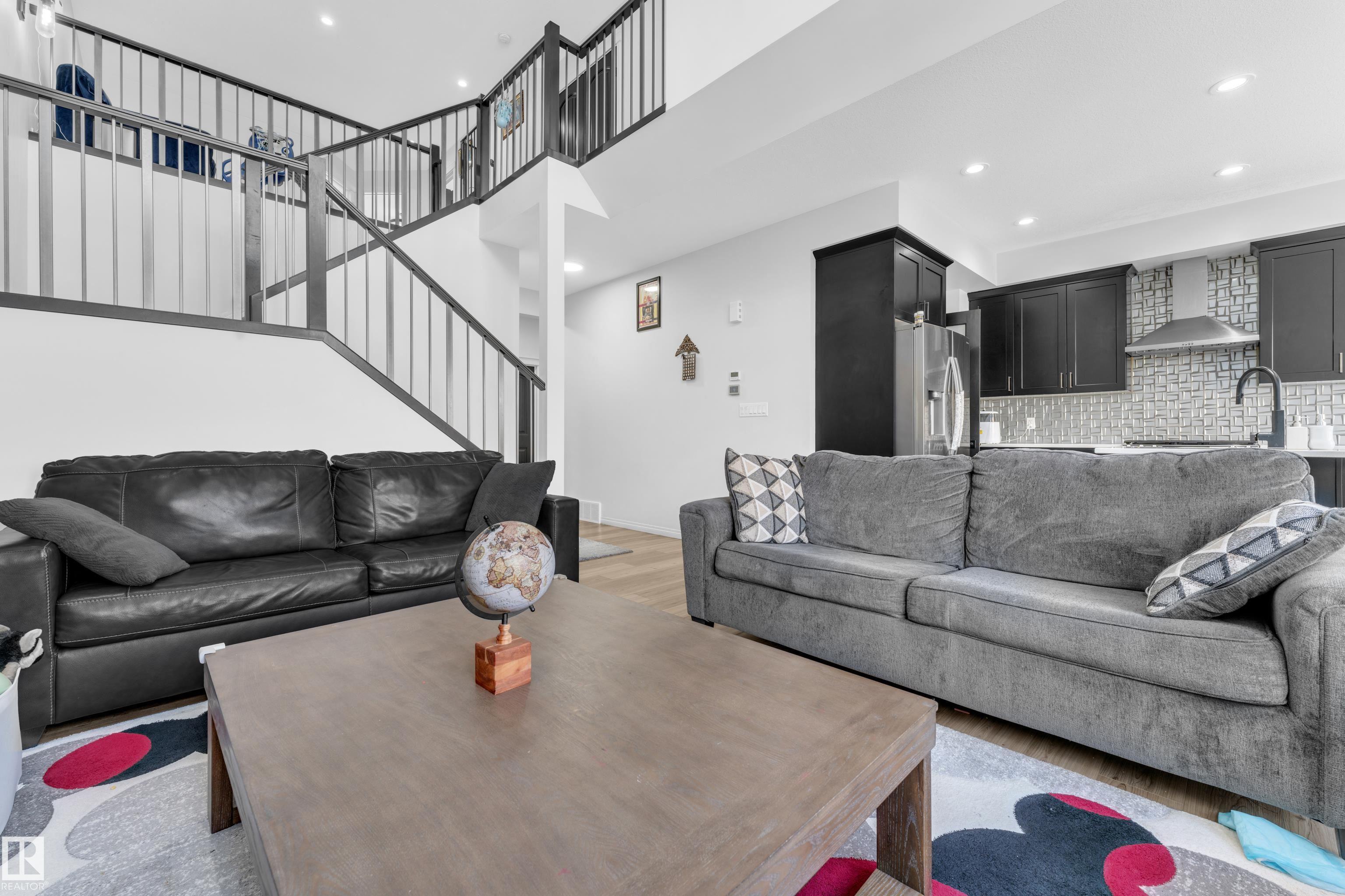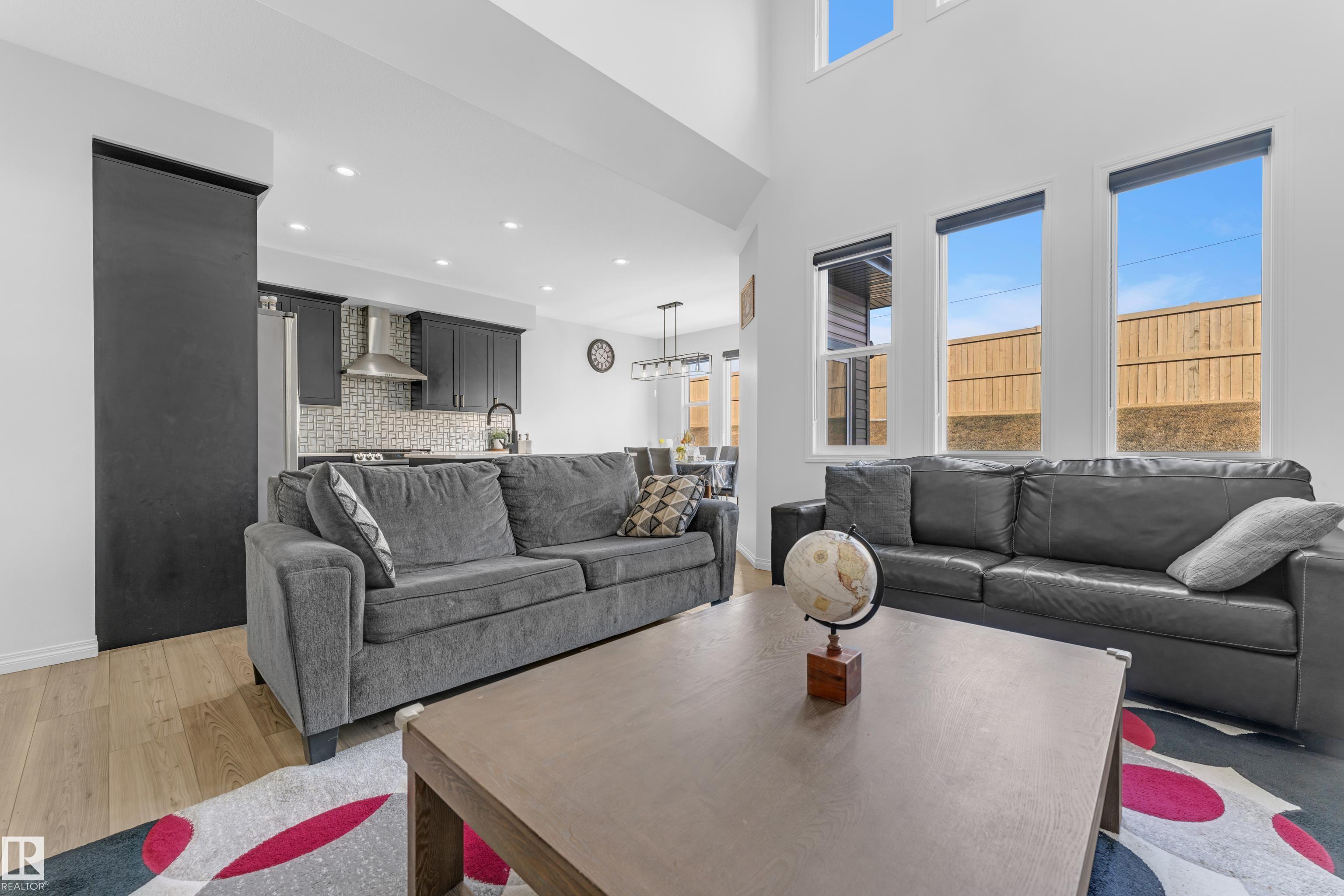 Beautifully maintained 2022-built home in the desirable Walker community of SE Edmonton! Offering close to 2,000 sq ft of bright, open-concept living, this home features a stunning open-to-above living area, vinyl flooring, and a main floor bedroom with a full bath--perfect for guests or extended family. The kitchen is thoughtfully designed with a pantry that includes rough-ins for a future spice kitchen, giving you added flexibility and value. The separate side entrance adds future potential. Upstairs offers a spacious bonus room, 3 bedrooms, 2 full baths. Enjoy privacy with no rear neighbours, plus central A/C and a water purifier system already installed. Ideally located close to schools, shopping, and all amenities including Walker Lake Plaza!