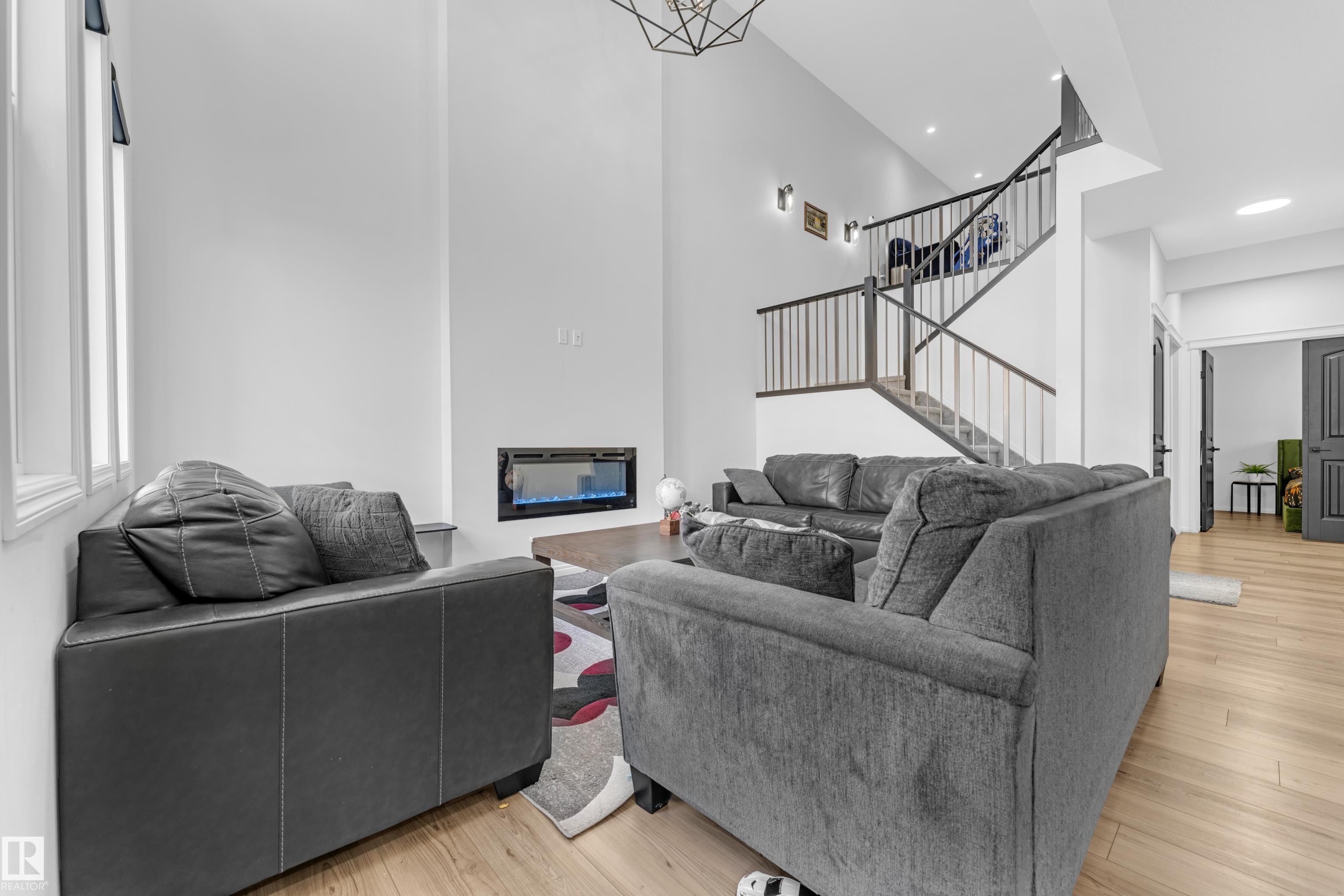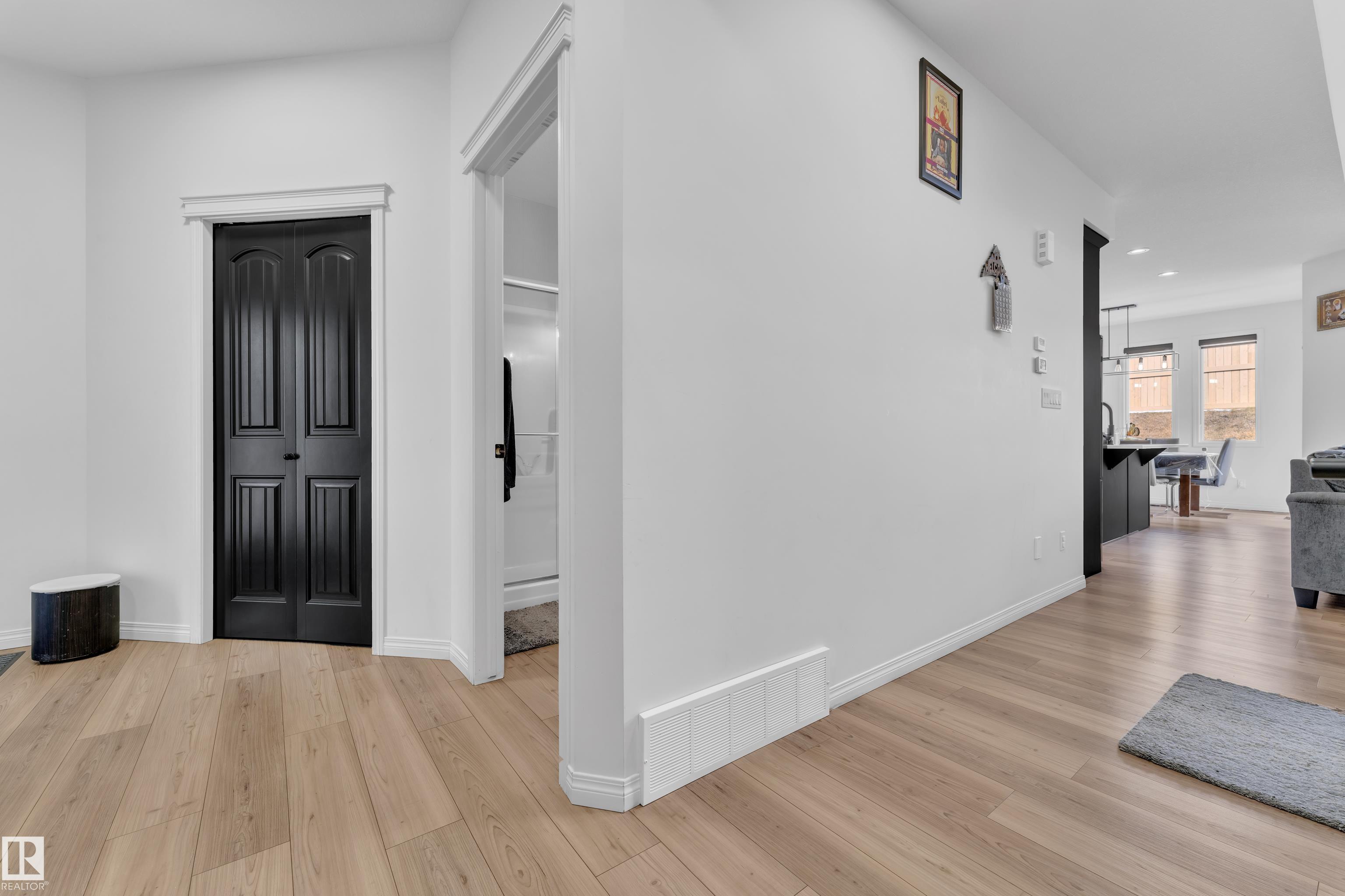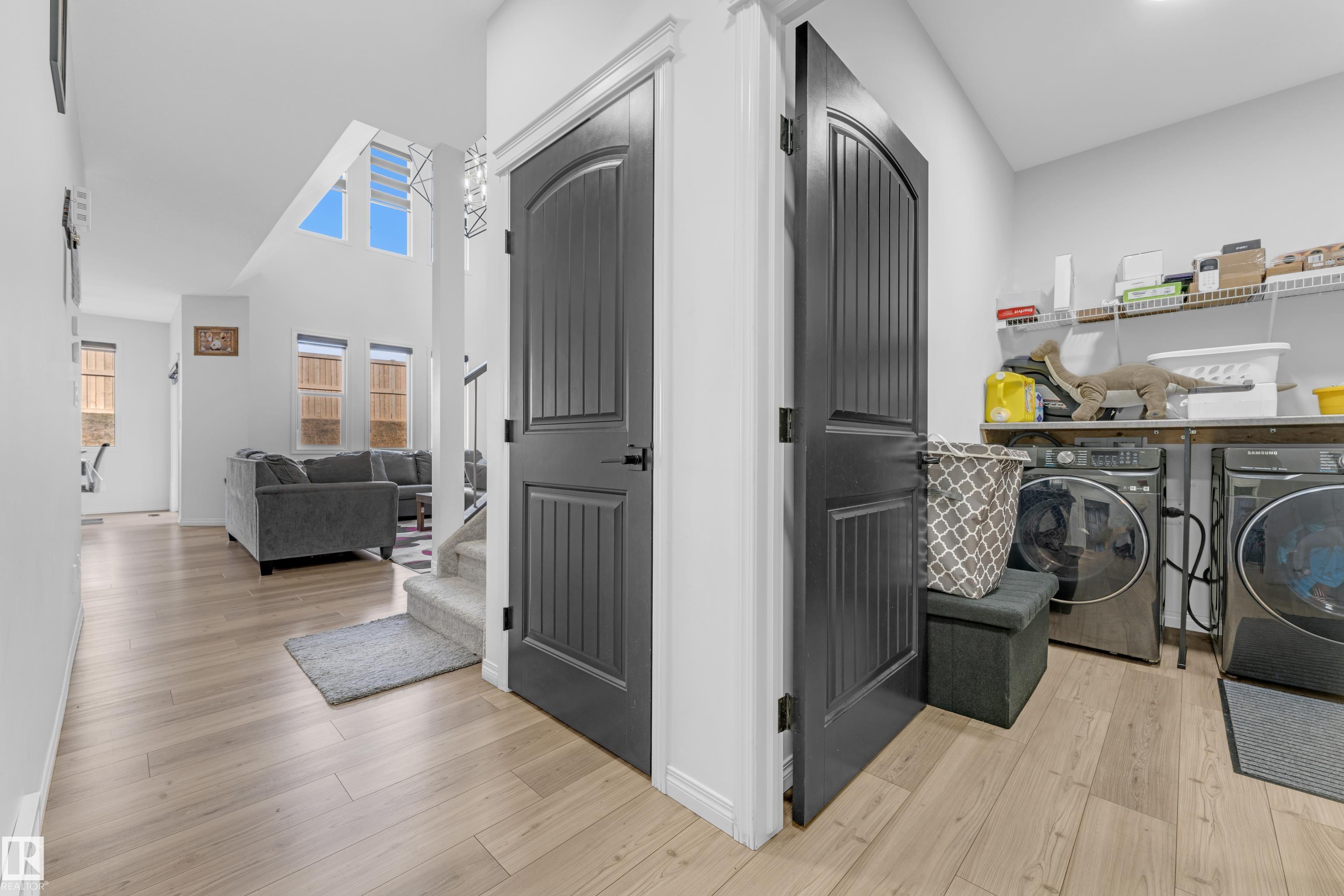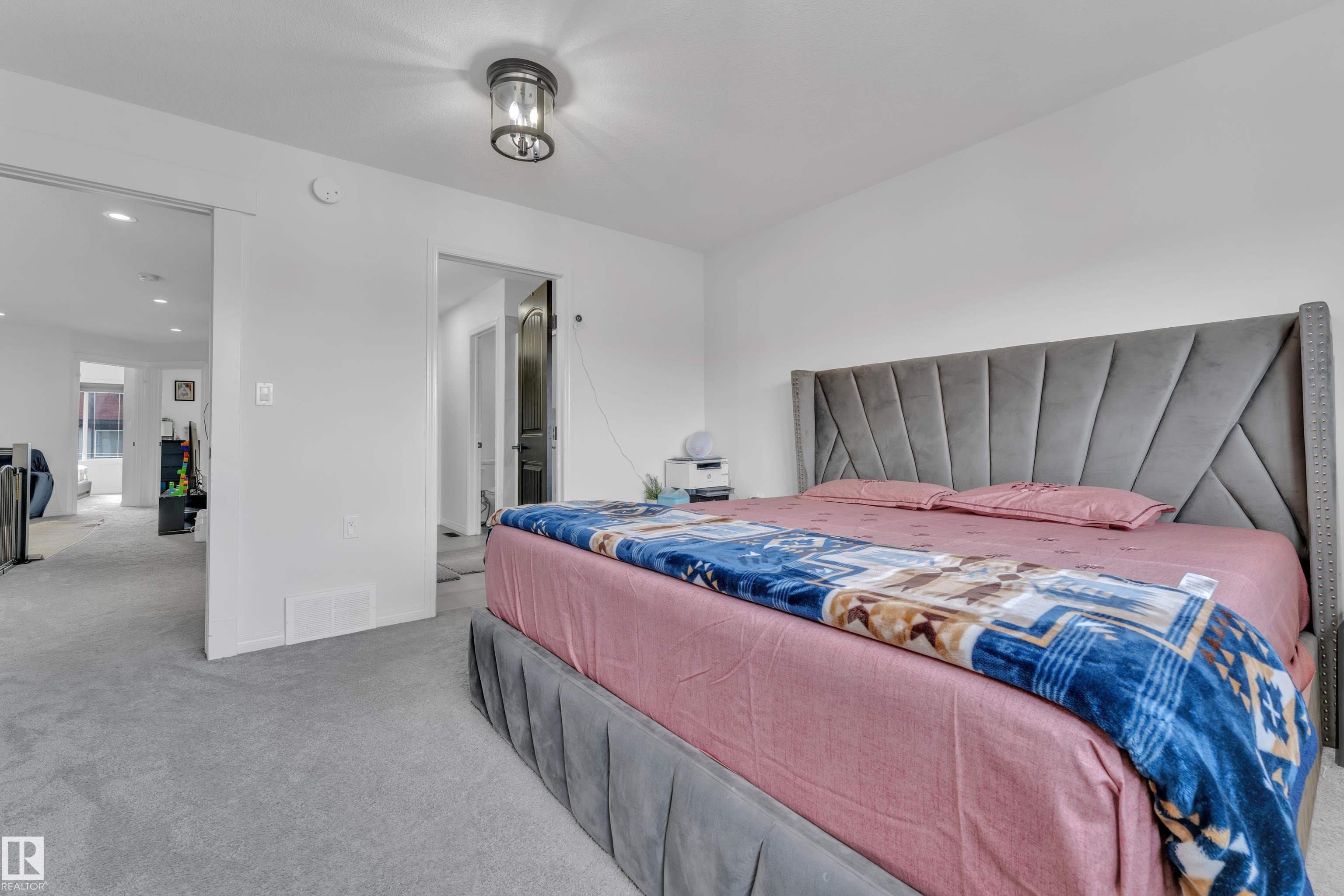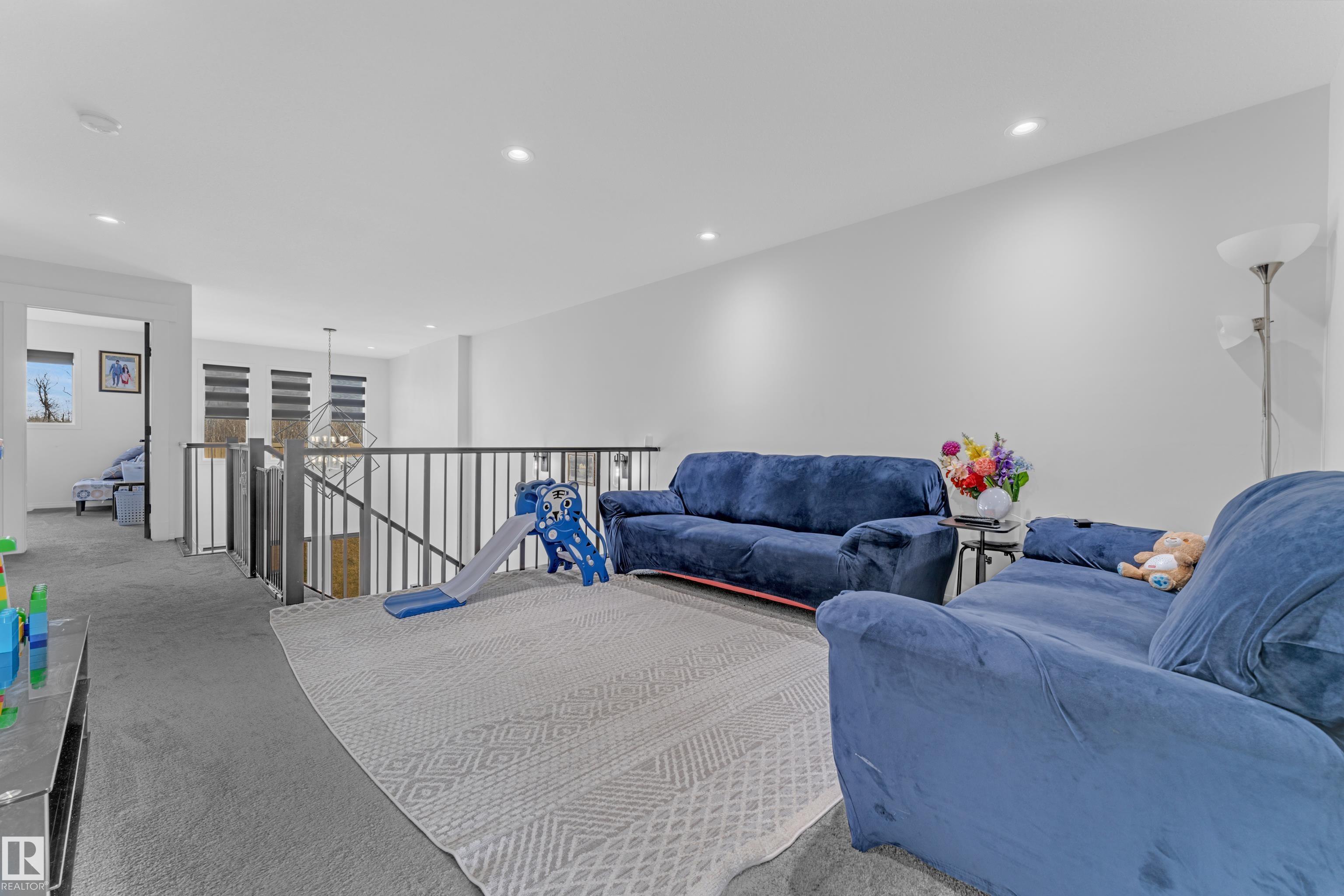 Beautifully maintained 2022-built home in the desirable Walker community of SE Edmonton! Offering close to 2,000 sq ft of bright, open-concept living, this home features a stunning open-to-above living area, vinyl flooring, and a main floor bedroom with a full bath--perfect for guests or extended family. The kitchen is thoughtfully designed with a pantry that includes rough-ins for a future spice kitchen, giving you added flexibility and value. The separate side entrance adds future potential. Upstairs offers a spacious bonus room, 3 bedrooms, 2 full baths. Enjoy privacy with no rear neighbours, plus central A/C and a water purifier system already installed. Ideally located close to schools, shopping, and all amenities including Walker Lake Plaza!