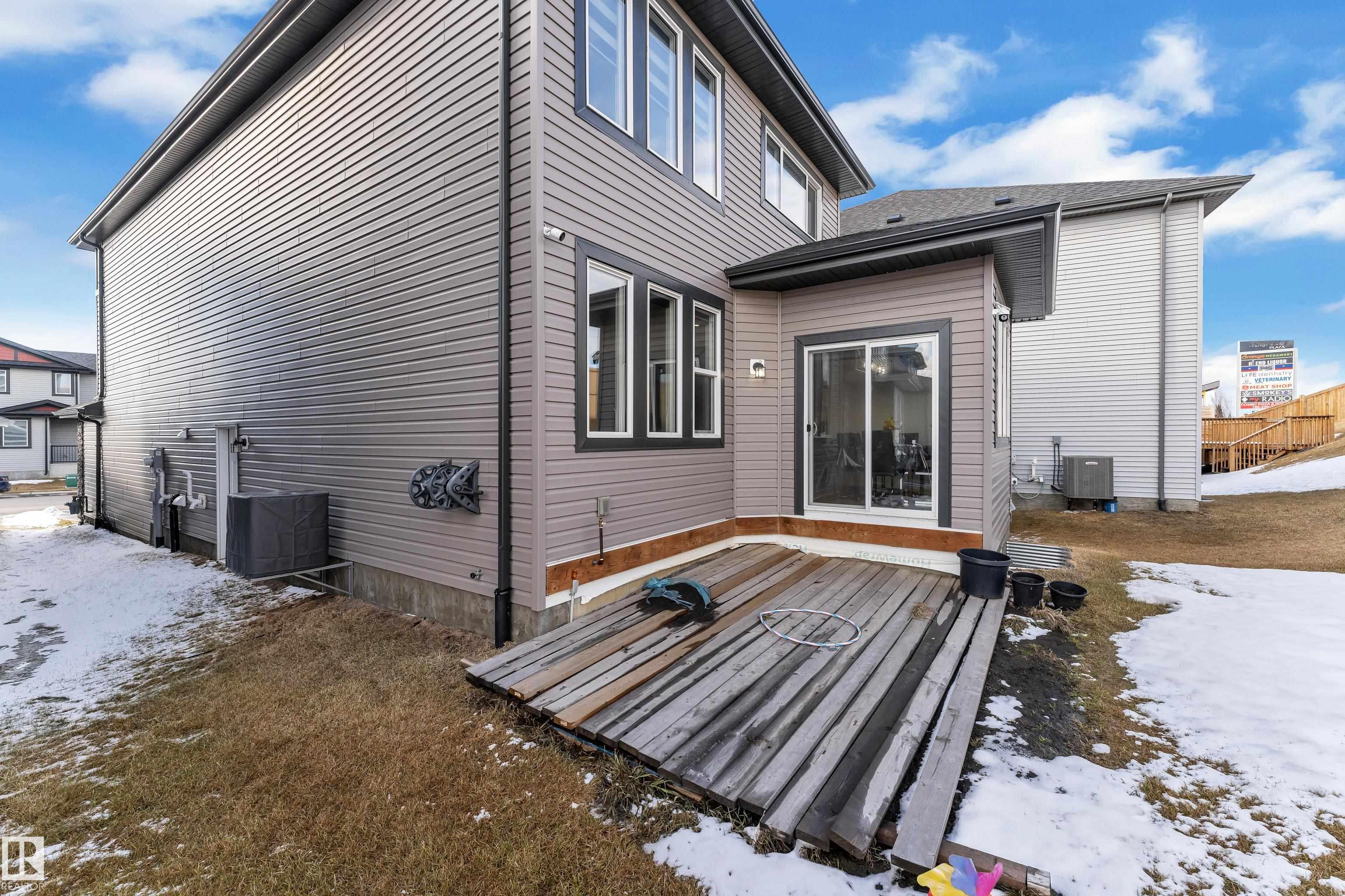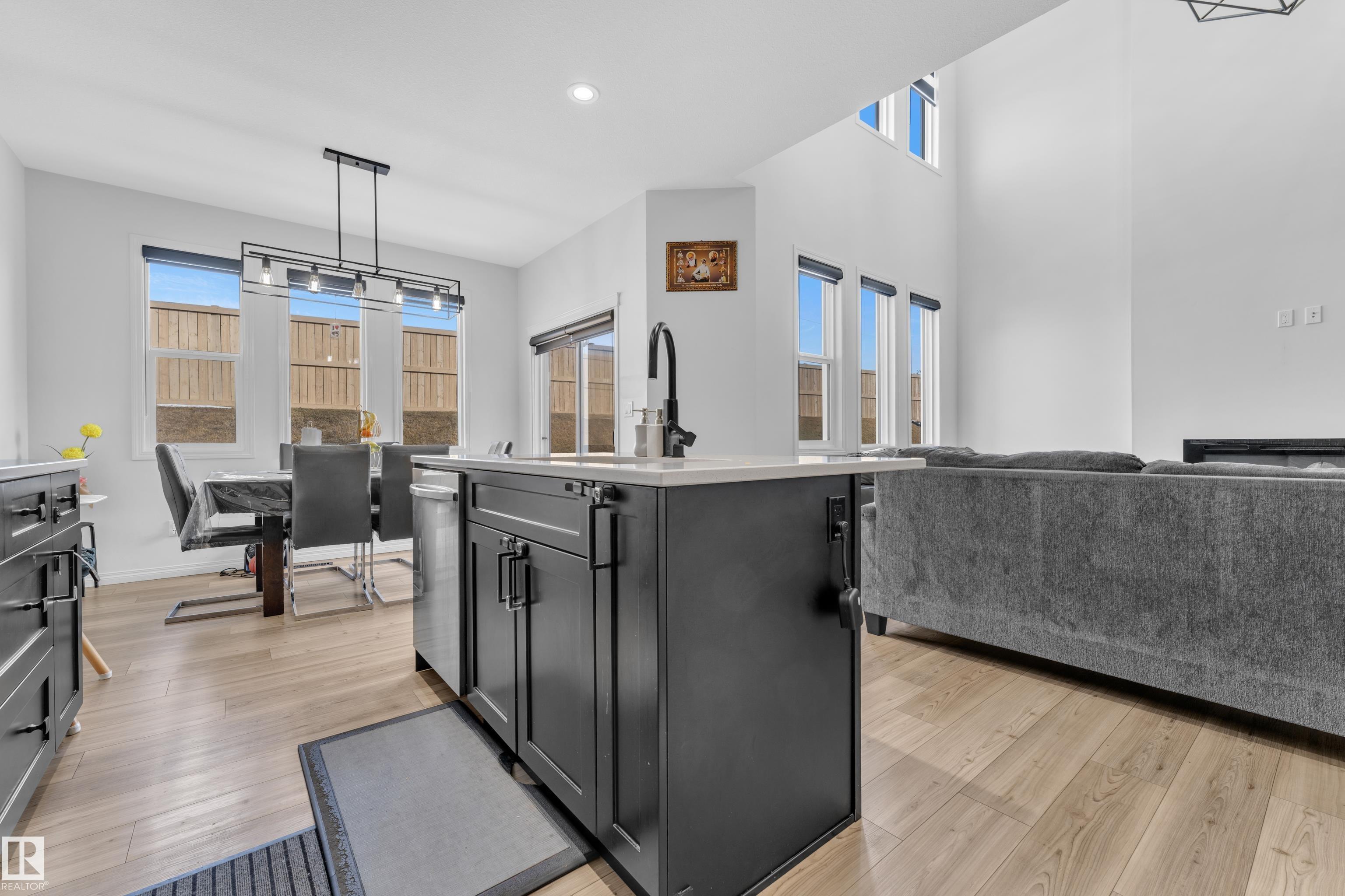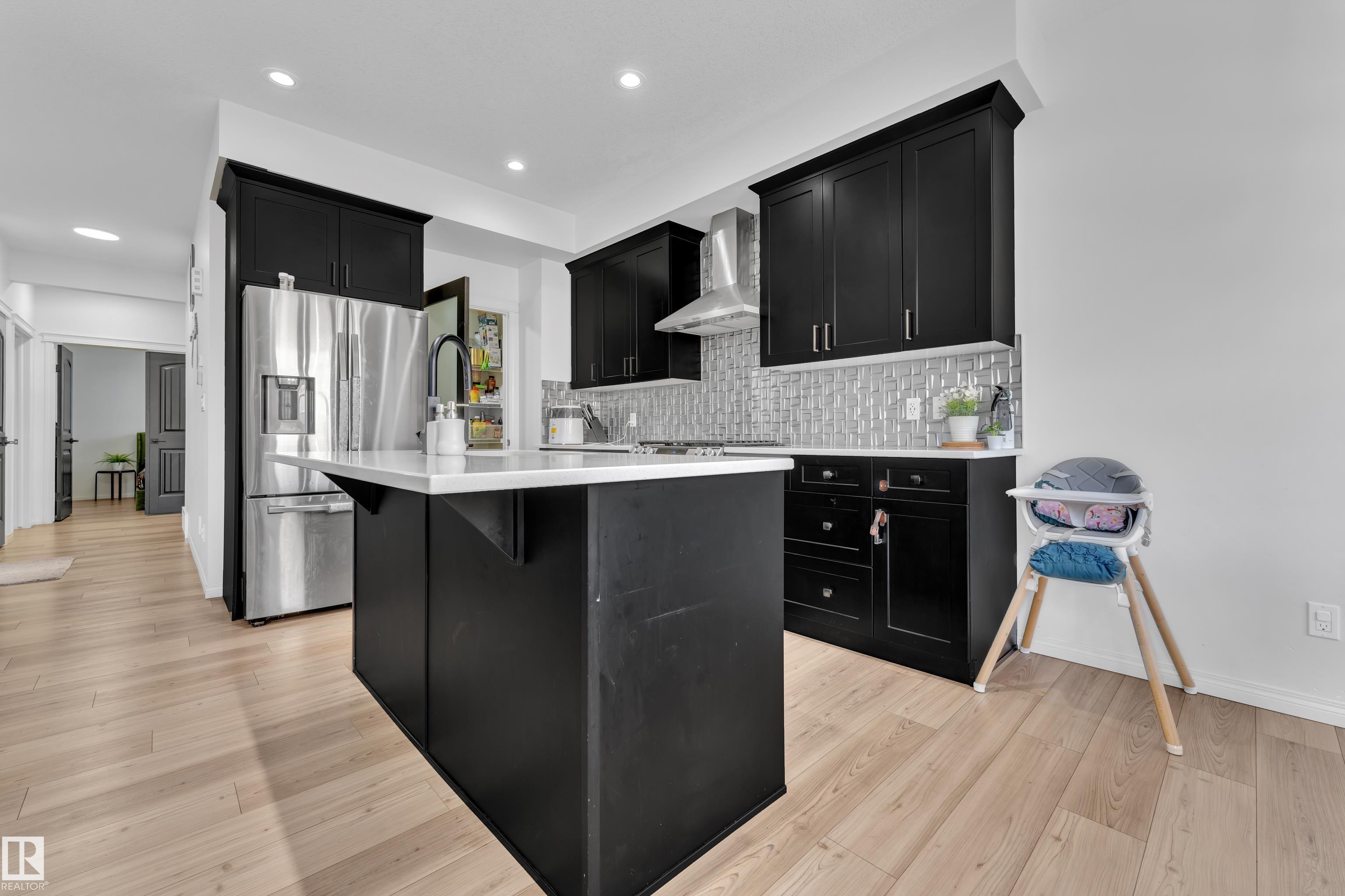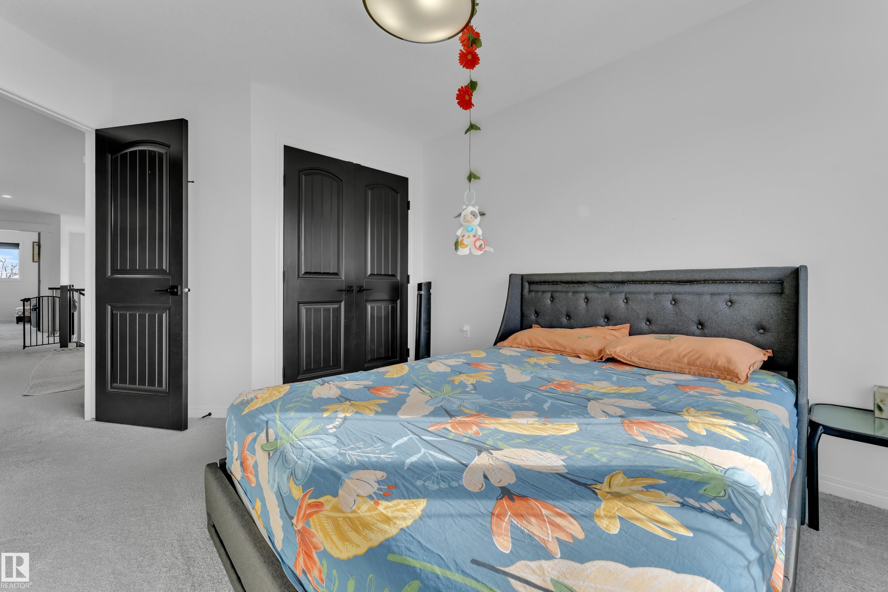 Beautifully maintained 2022-built home in the desirable Walker community of SE Edmonton! Offering close to 2,000 sq ft of bright, open-concept living, this home features a stunning open-to-above living area, vinyl flooring, and a main floor bedroom with a full bath--perfect for guests or extended family. The kitchen is thoughtfully designed with a pantry that includes rough-ins for a future spice kitchen, giving you added flexibility and value. The separate side entrance adds future potential. Upstairs offers a spacious bonus room, 3 bedrooms, 2 full baths. Enjoy privacy with no rear neighbours, plus central A/C and a water purifier system already installed. Ideally located close to schools, shopping, and all amenities including Walker Lake Plaza!