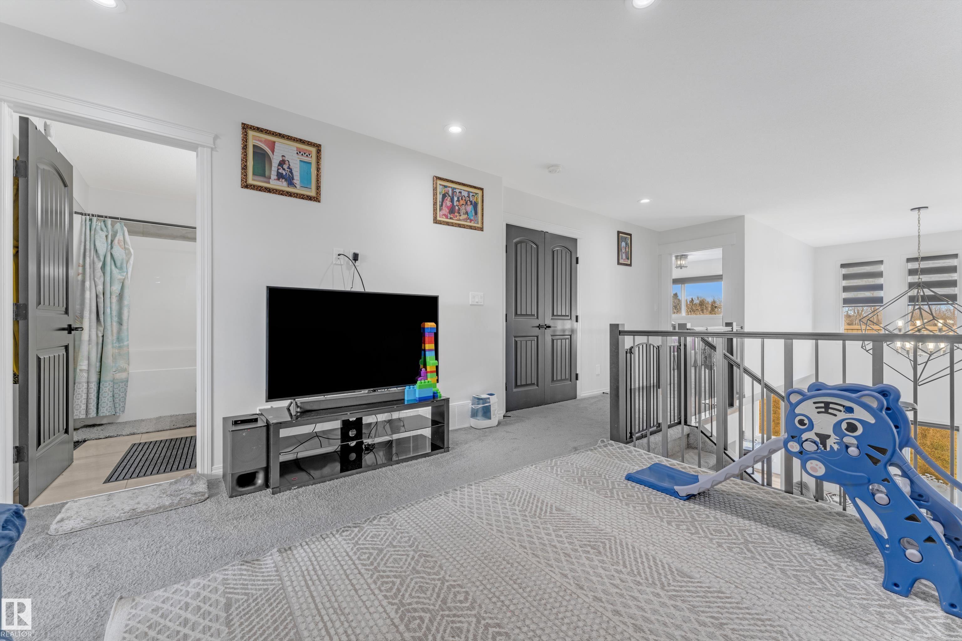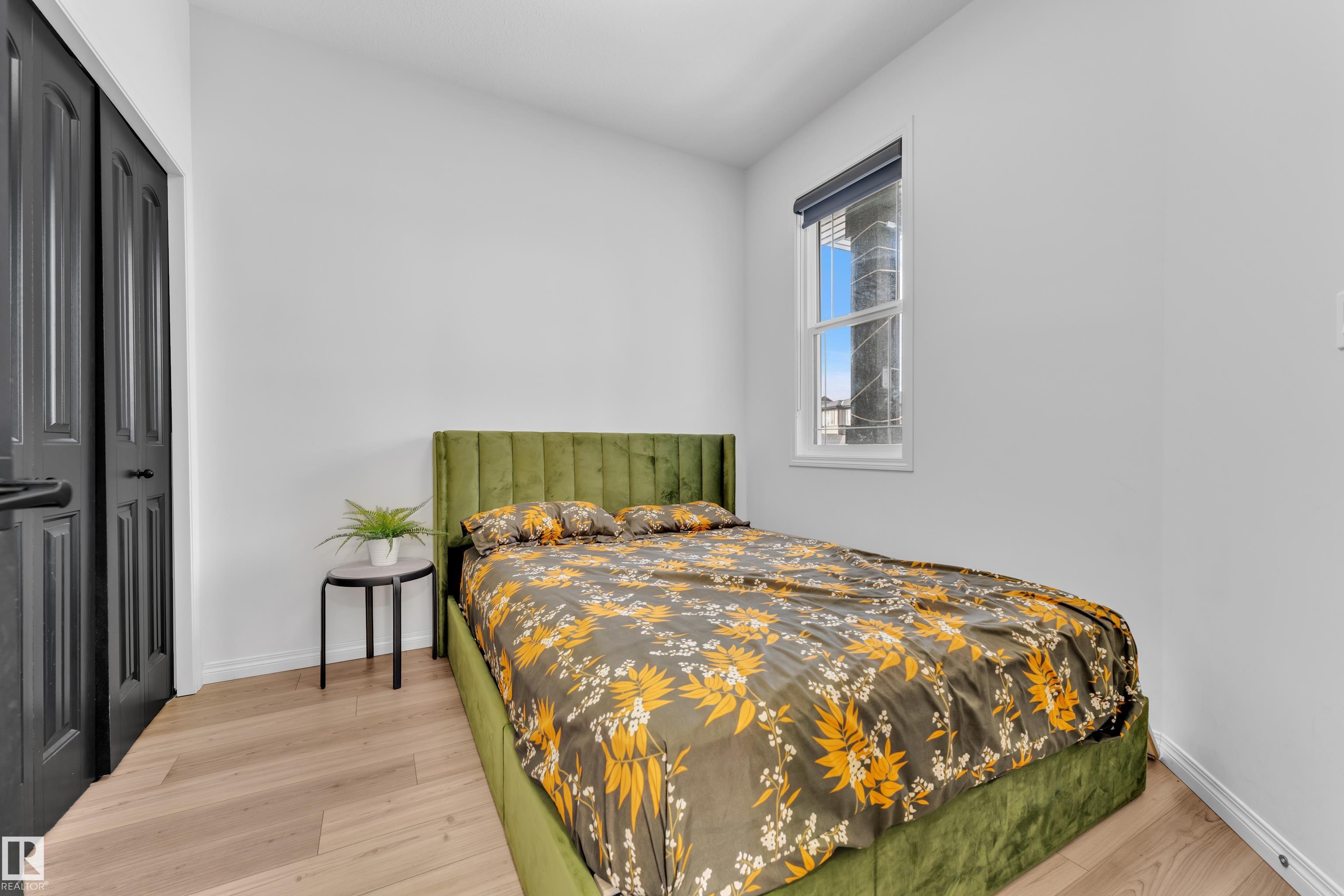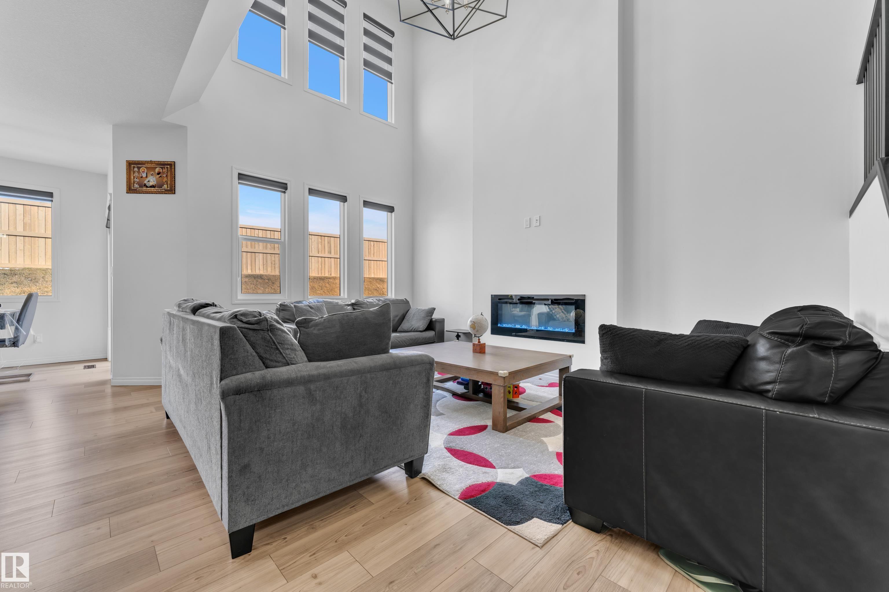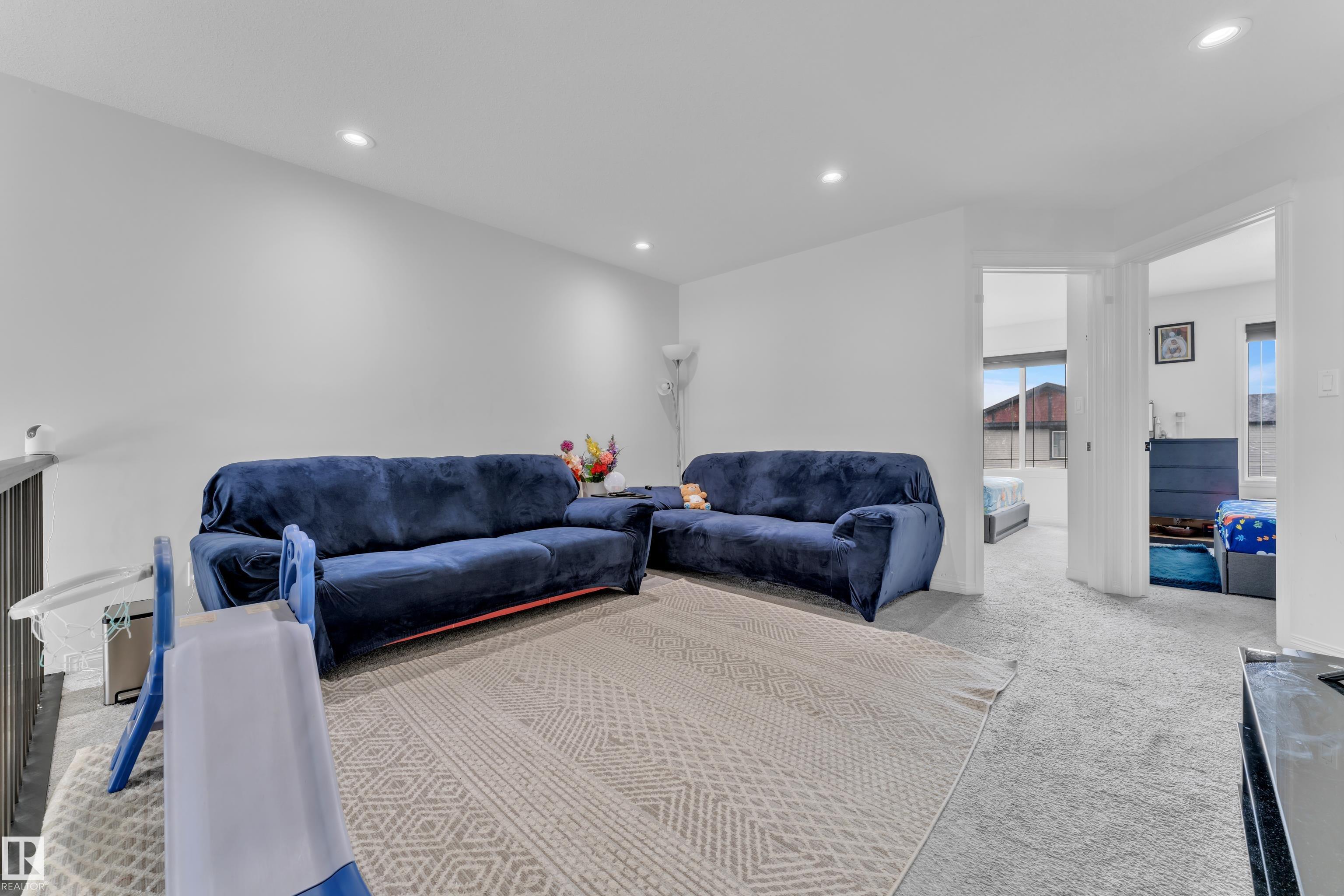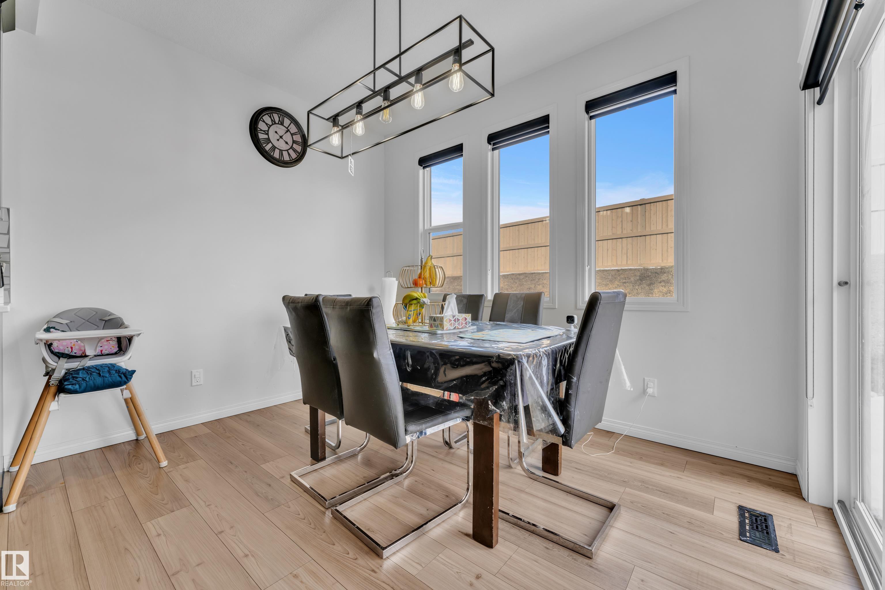 Beautifully maintained 2022-built home in the desirable Walker community of SE Edmonton! Offering close to 2,000 sq ft of bright, open-concept living, this home features a stunning open-to-above living area, vinyl flooring, and a main floor bedroom with a full bath--perfect for guests or extended family. The kitchen is thoughtfully designed with a pantry that includes rough-ins for a future spice kitchen, giving you added flexibility and value. The separate side entrance adds future potential. Upstairs offers a spacious bonus room, 3 bedrooms, 2 full baths. Enjoy privacy with no rear neighbours, plus central A/C and a water purifier system already installed. Ideally located close to schools, shopping, and all amenities including Walker Lake Plaza!