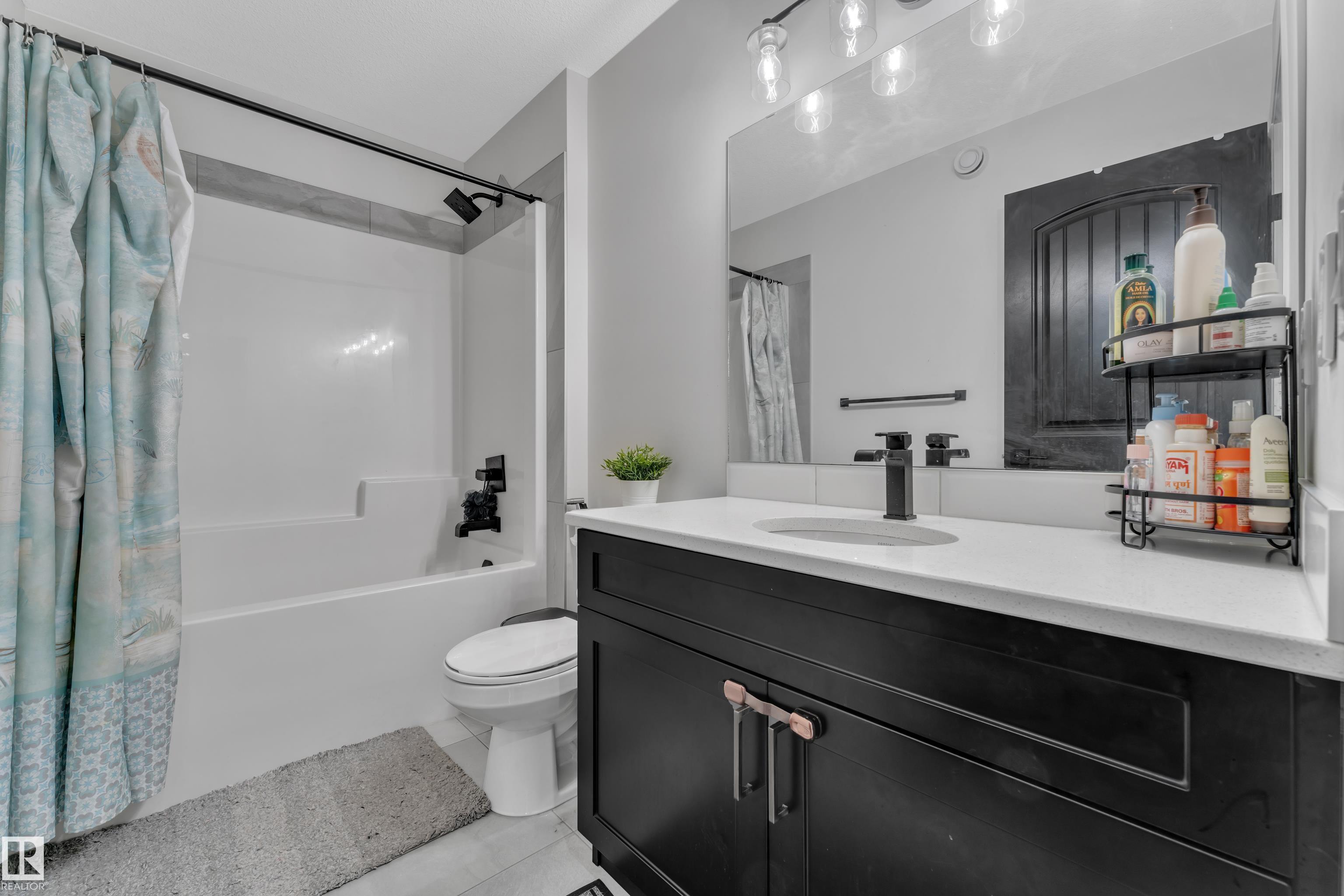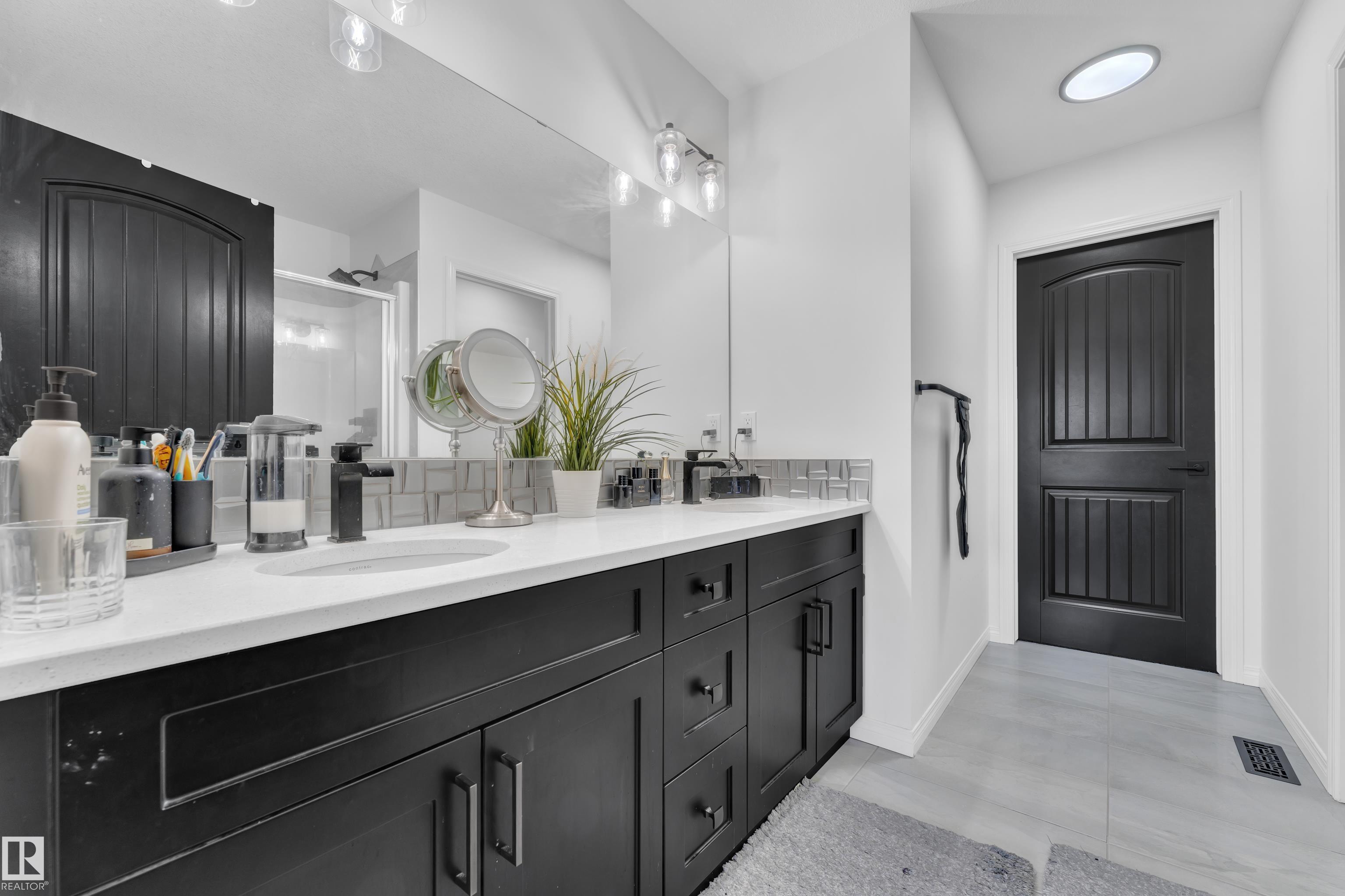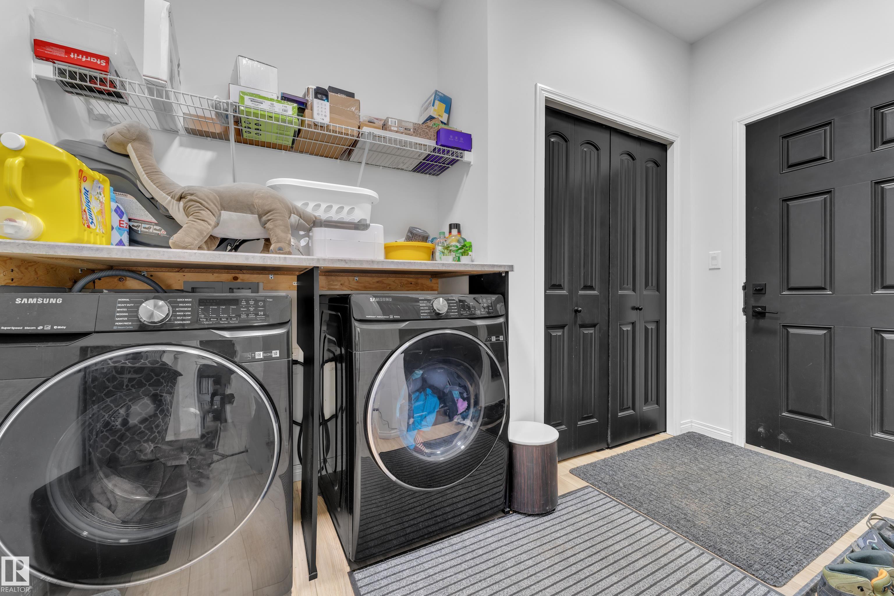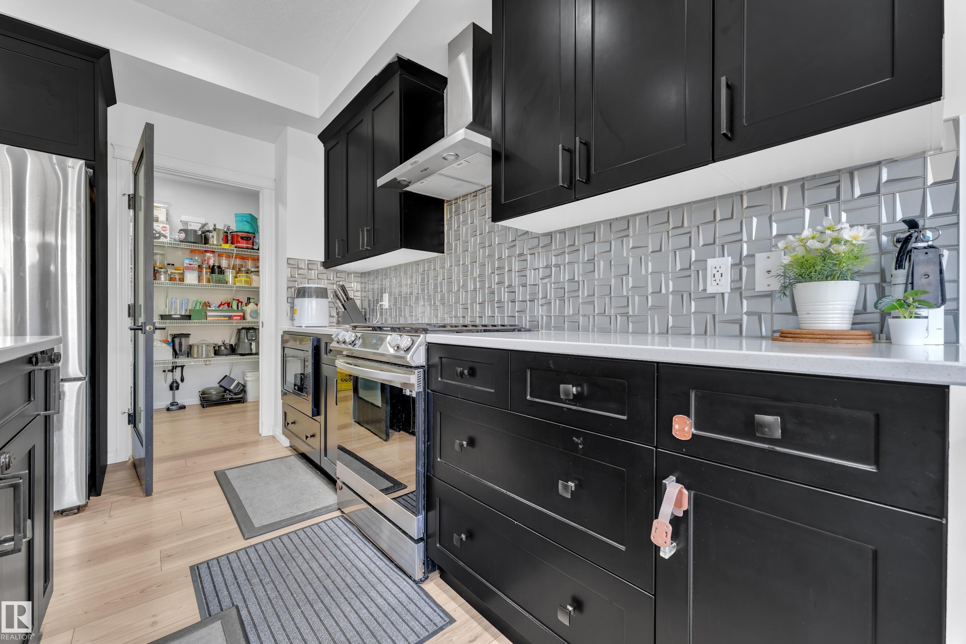 Beautifully maintained 2022-built home in the desirable Walker community of SE Edmonton! Offering close to 2,000 sq ft of bright, open-concept living, this home features a stunning open-to-above living area, vinyl flooring, and a main floor bedroom with a full bath--perfect for guests or extended family. The kitchen is thoughtfully designed with a pantry that includes rough-ins for a future spice kitchen, giving you added flexibility and value. The separate side entrance adds future potential. Upstairs offers a spacious bonus room, 3 bedrooms, 2 full baths. Enjoy privacy with no rear neighbours, plus central A/C and a water purifier system already installed. Ideally located close to schools, shopping, and all amenities including Walker Lake Plaza!