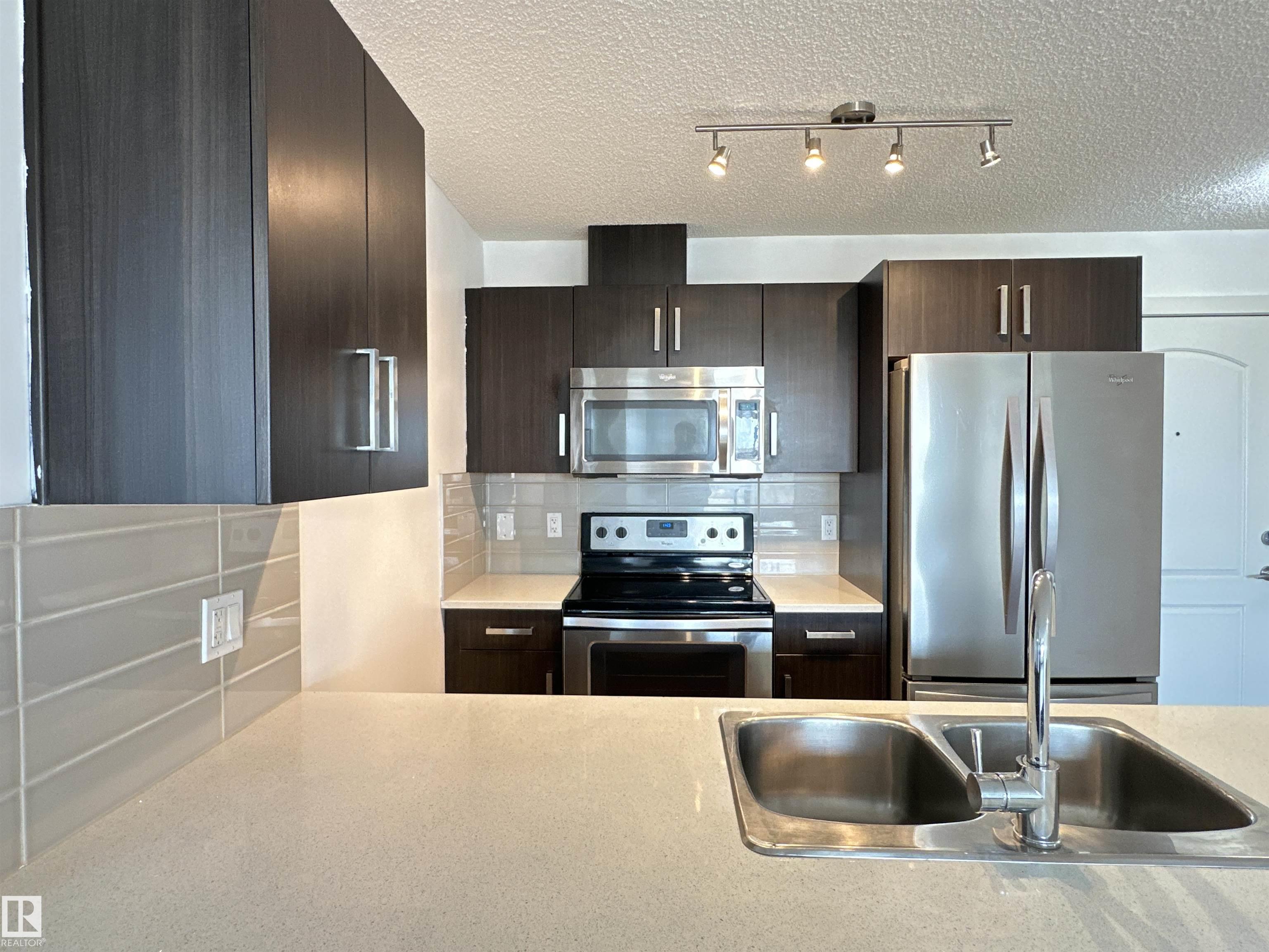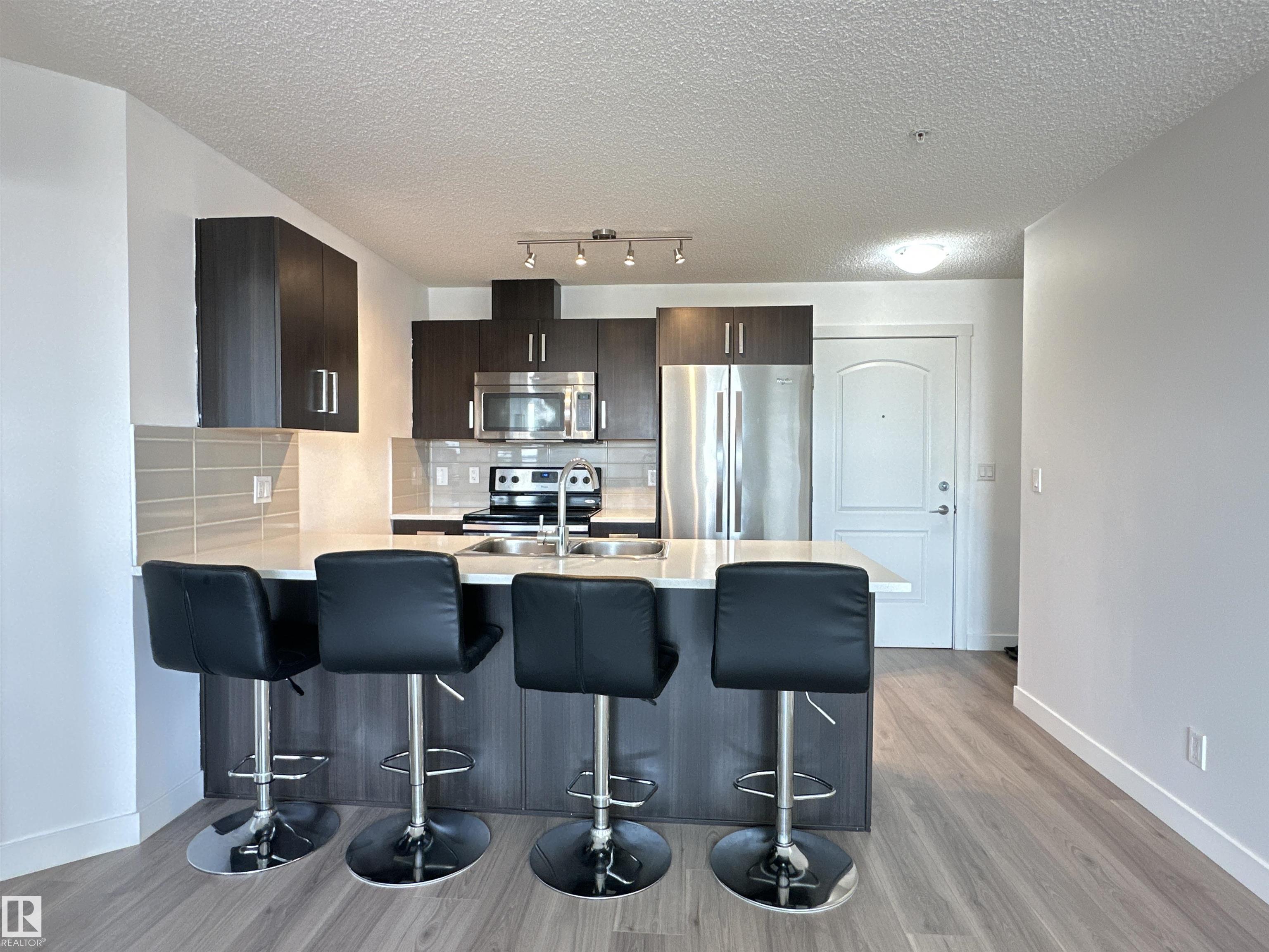 Welcome home to this bright & spacious 2 bed, 2 bath apartment in a highly coveted South Edmonton location. Well-designed unit, modern kitchen with stainless-steel appliances, quartz countertop & a generous bar seating. Open-concept living area is filled with natural light and offers direct access to your private covered balcony. The primary bedroom offers a peaceful retreat with a walk-through closet & a 4-pc ensuite. The second bedroom is positioned on the opposite side for maximum privacy, conveniently located next to 4-pc bath & in-suite laundry. A versatile den provides flexible space for a home office, guest room or additional living area. Enjoy the secured building access, elevator service, plus titled underground parking and a dedicated storage unit. Perfectly located with quick access to Highway 2, Anthony Henday Drive, 10 mins to South Common, 20 mins to YEG Airport & Premium Outlet. Just steps to bus stops, Walmart, Sobeys, Real Canadian, restaurants, shopping, and all major amenities.