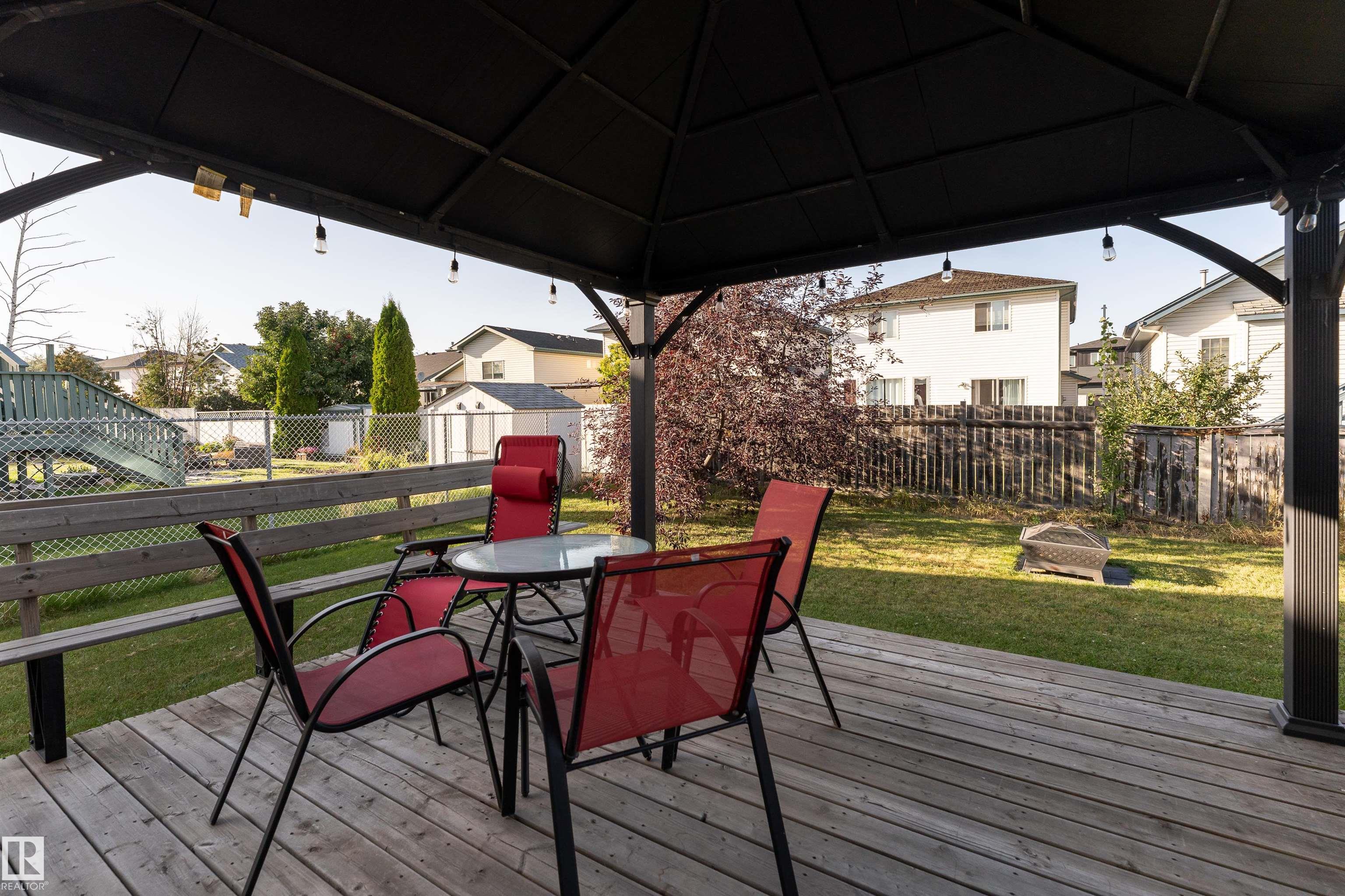 Welcome to this well-maintained home in the heart of Wild Rose, Millwoods! Offering over 2,300 sq. ft. of total living space, this property features 4 bedrooms--3 upstairs and 1 in the partially finished basement. The main floor boasts an open-concept layout with a bright living room, dining area, kitchen, and convenient main floor laundry. Upstairs includes 3 spacious bedrooms and 2 full baths, including a primary suite with walk-in closet and 4-piece ensuite. The basement offers a large rec room, bedroom, and a rough-in for a future bathroom--ready for your finishing touch. Situated on a large pie-shaped lot, the backyard includes a charming gazebo, perfect for relaxing or entertaining. Recent upgrades include a new roof, furnace, and central A/C (2022), offering peace of mind for years to come. Located close to schools, parks, shopping, and transit. This is a fantastic opportunity to own in a family-friendly community!