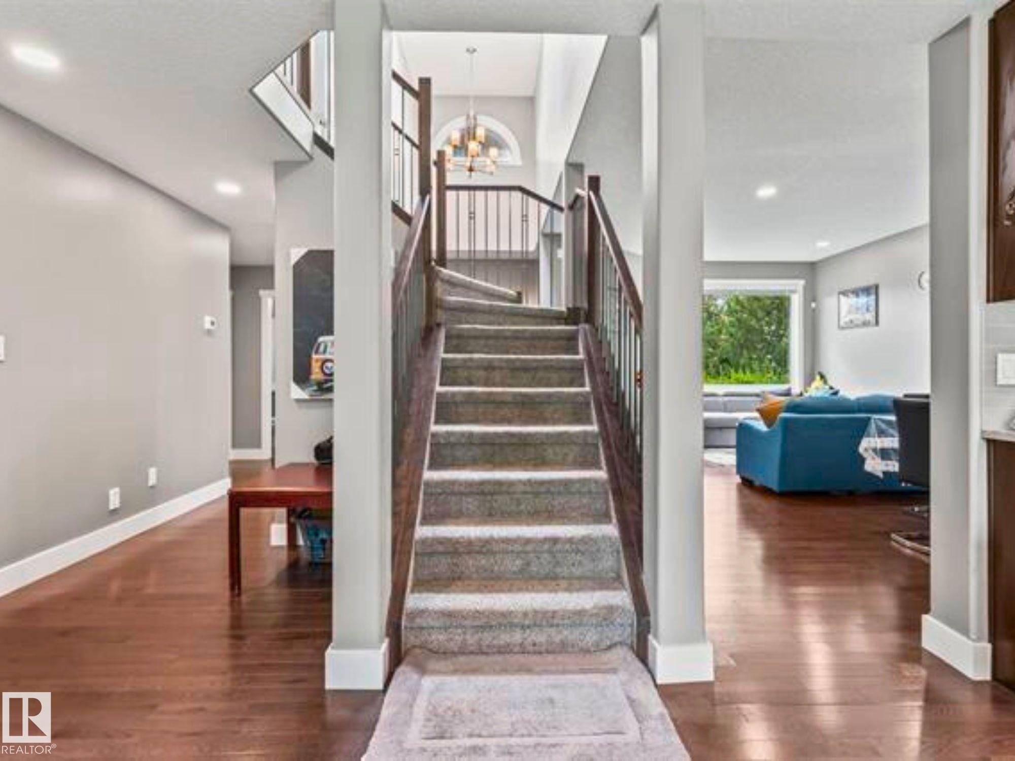 Elegance meets comfort in this prime location home, featuring a sophisticated closed-in front entry that keeps boots and jackets organized and sets the tone for a warm welcome. The grand foyer, illuminated by a skylight, showcases a stunning staircase with maple railing, grey powder-coated spindles, and solid maple hardwood floors. Formal living and dining areas exude quiet luxury, while the spacious kitchen with a walk-in pantry flows seamlessly into the family room, perfect for gatherings. A versatile main-floor den offers space for an office or entertainment room. Upstairs, three large bedrooms include a luxurious master retreat with an airy ambiance, a grand en suite, and a walk-in closet. Fully renovated down to the studs in 2019 with new exterior siding, this home combines timeless elegance with modern updates plus it comes with a fully finished basement .