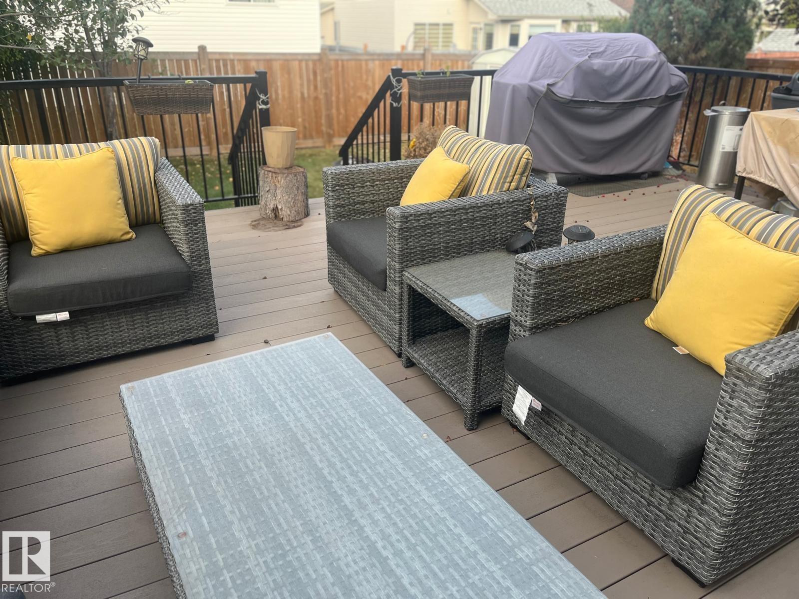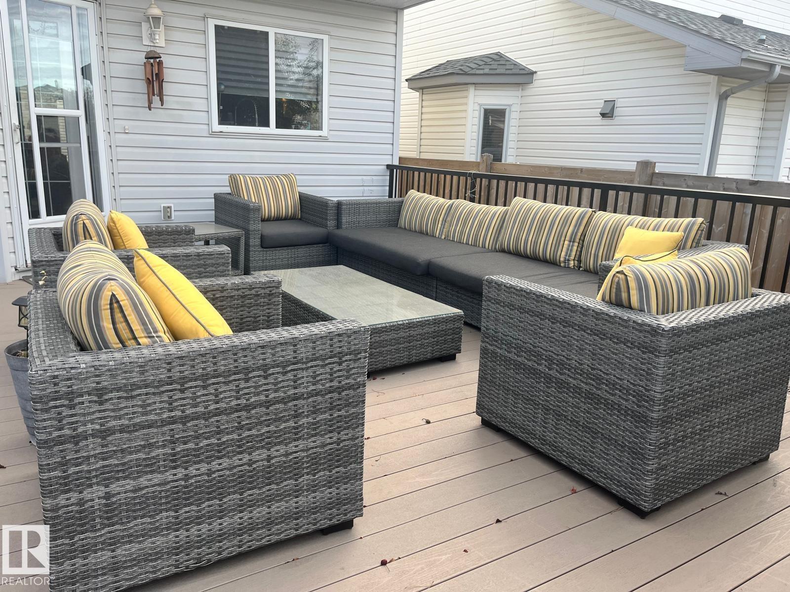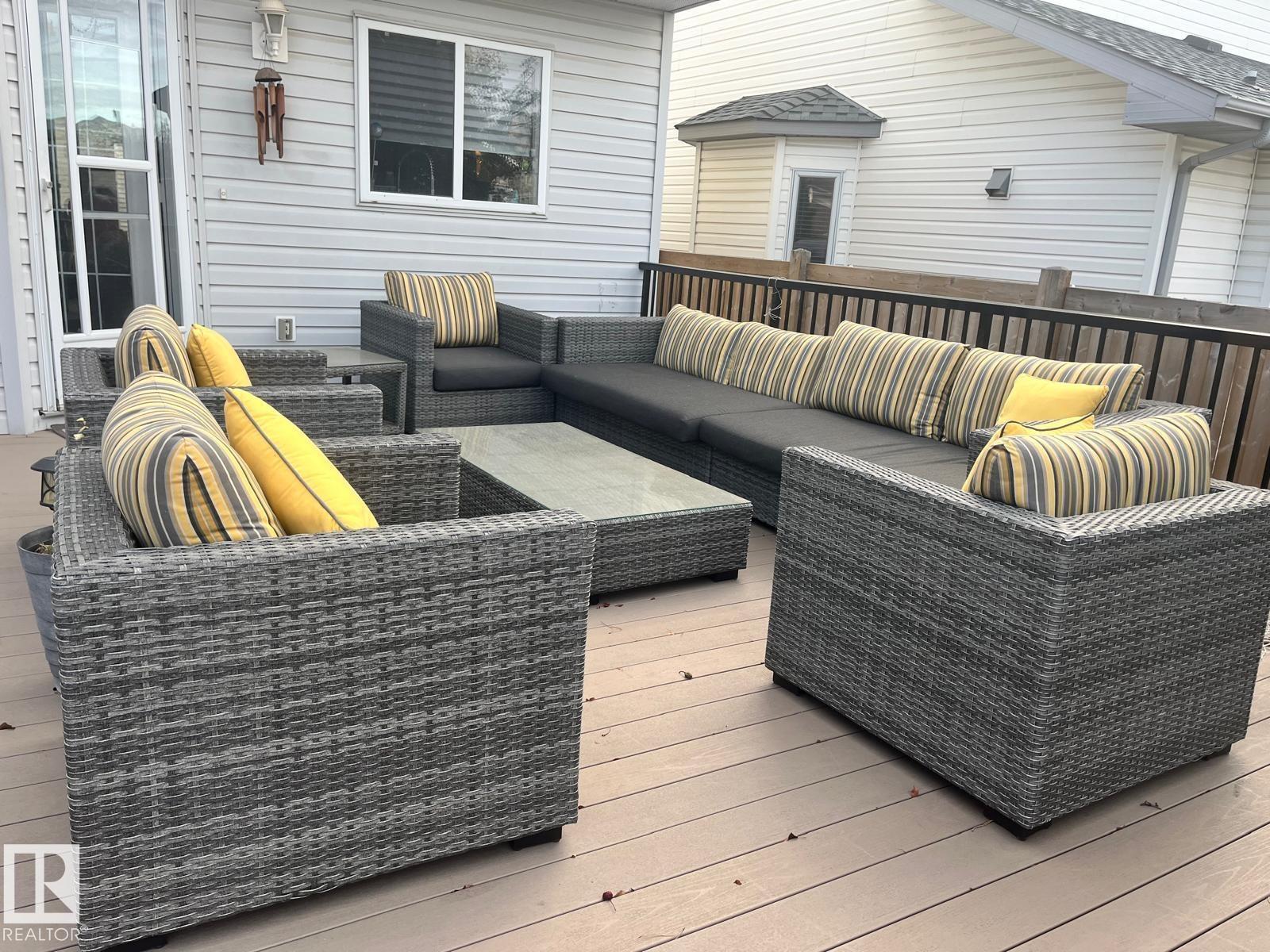 Welcome to this beautifully maintained two-storey home with 3,112 sq. ft. of total living space, nestled in the heart of Wild Rose. This home offers the ideal mix of comfort and potential. The modern kitchen features granite countertops and upgraded drawer organizers. Main floor updates include hardwood flooring, chandeliers, custom blinds, pot lights, a spacious living room, cozy family room with gas fireplace, and a den or office. Step outside to the 22' x 22' composite deck--perfect for summer gatherings. A chair lift provides easy access to the second floor, where you'll find a generous primary suite with ensuite and walk-in closet, three additional bedrooms, a full bath, and a bright foyer. The finished basement includes a multipurpose room, two bedrooms, and a full bath. Extras: double attached garage and a landscaped yard with apple and pear trees. Close to all amenities!