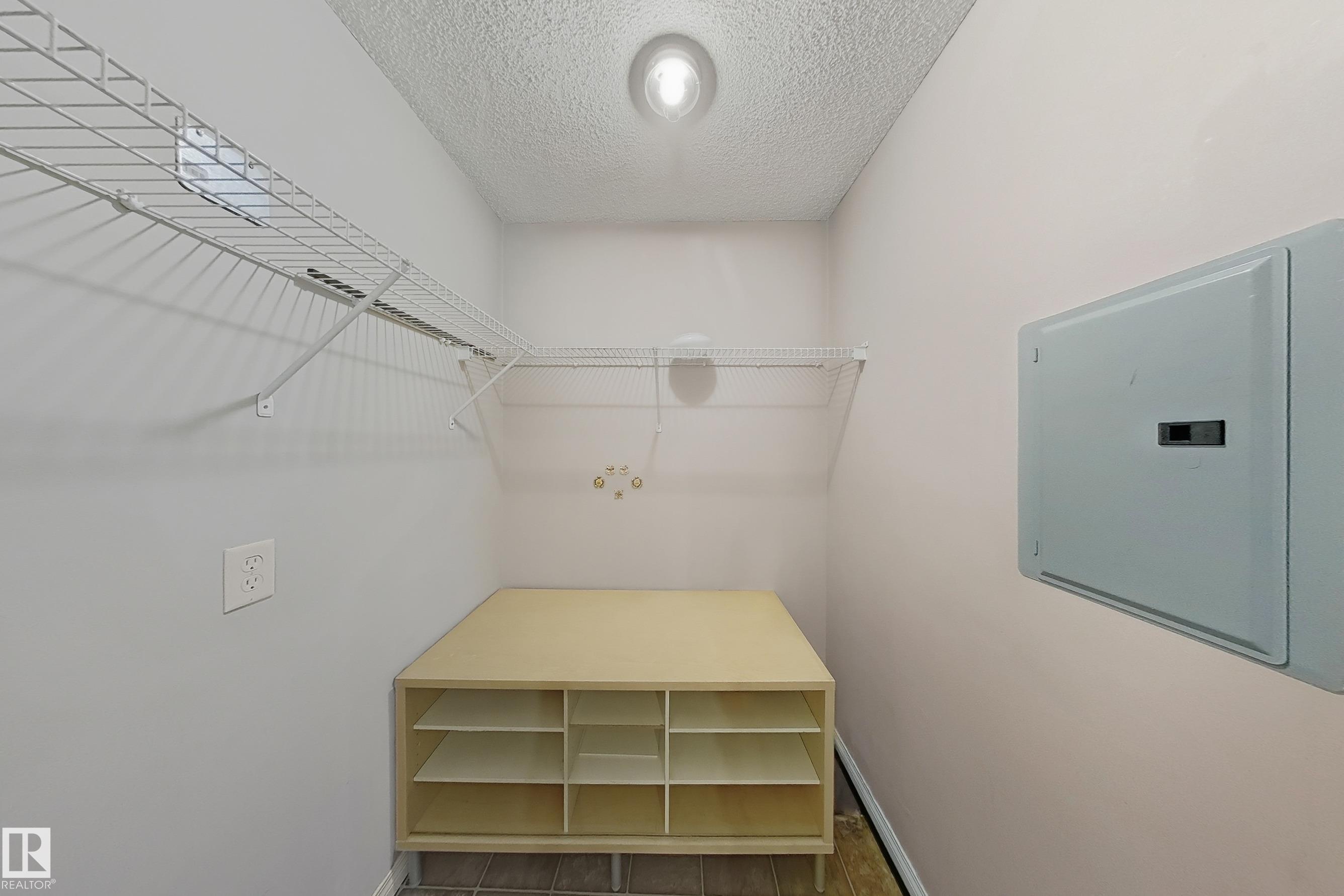 This stunning top-floor unit offers breathtaking panoramic views from its private balcony. Featuring 2 bedrooms and 2 full baths, it boasts an open-concept layout with vaulted ceilings that create a bright, airy atmosphere. The modern kitchen includes a center island, perfect for extra prep space and casual dining. The inviting living room features laminate flooring and large patio doors leading to the balcony -- ideal for relaxing or entertaining. The primary suite includes a walk-through closet and private ensuite, while the second bedroom is spacious and versatile. Enjoy the convenience of a titled parking stall. Perfectly located near all amenities, Sector 17 Plaza, the new high school, Meadows Rec Centre, and with easy access to Whitemud Drive and Anthony Henday, this home blends comfort, modern style, and an unbeatable location!