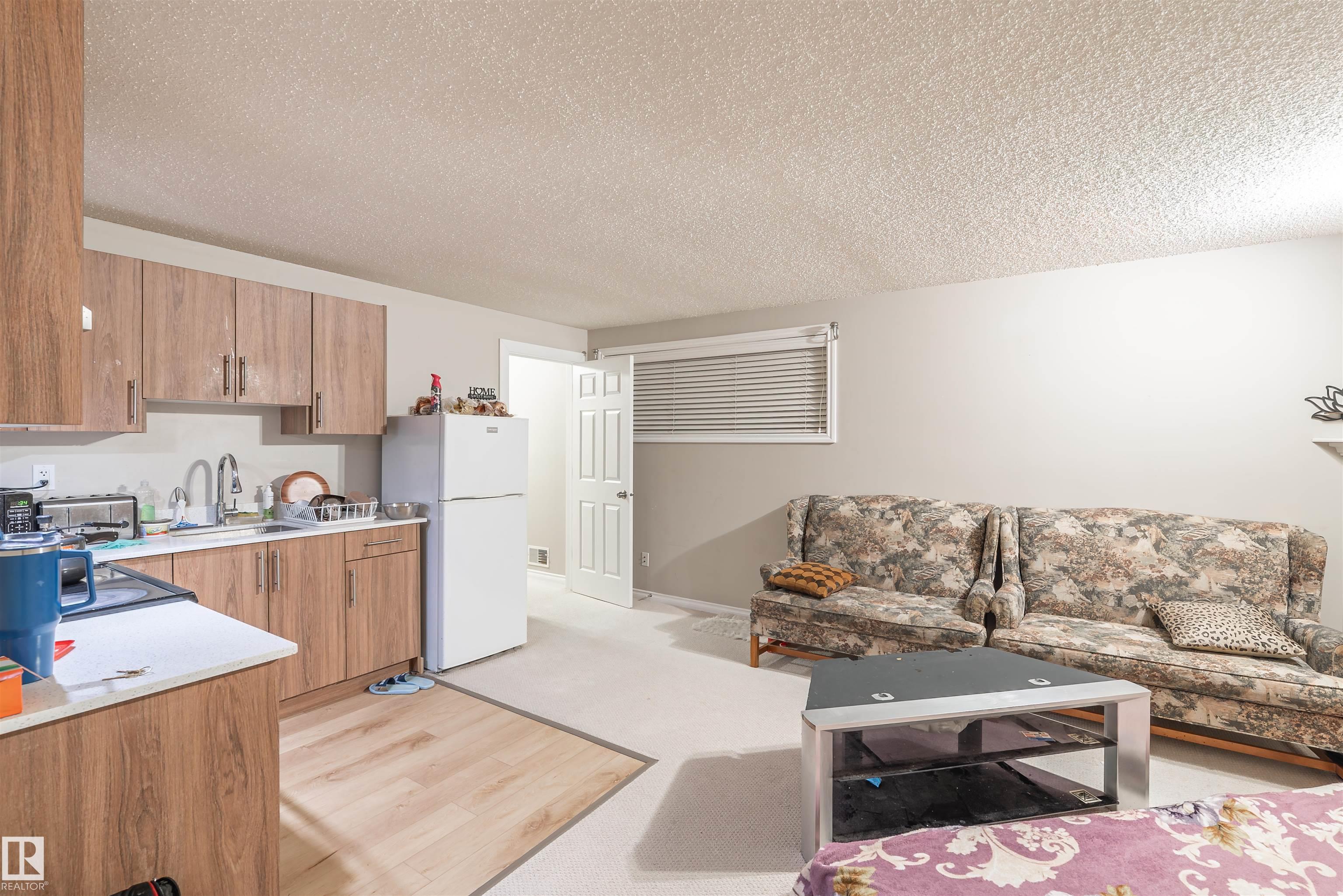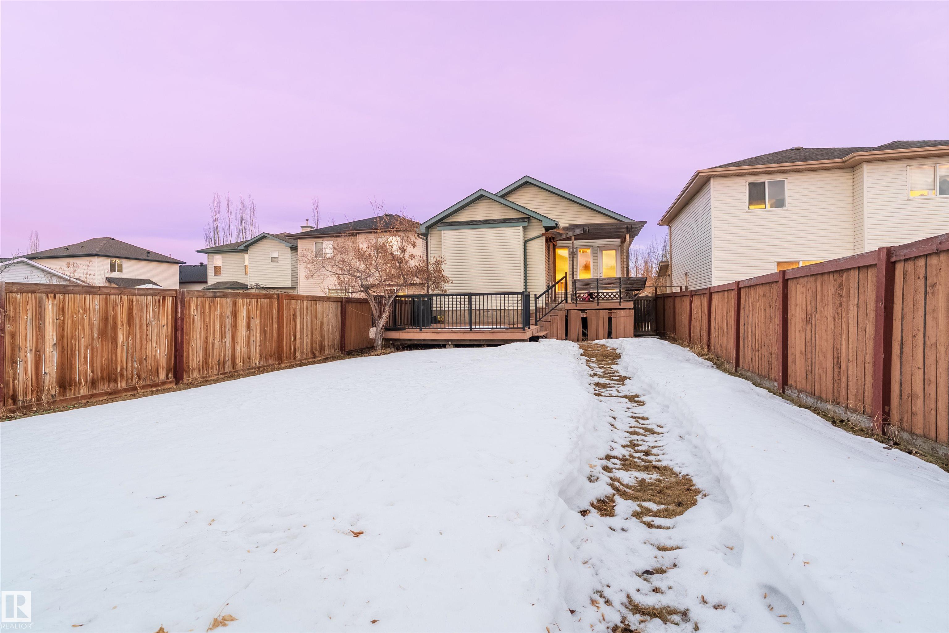 Welcome to this well-maintained bi-level home in Wild Rose, perfect for large or extended families. An inviting entrance leads to a bright, spacious living room with a built-in entertainment unit and a beautiful, functional kitchen. This level also features a generous bedroom and full bath. The upper level offers a private primary suite with walk-in closet and ensuite. The fully finished basement includes a second kitchen, a large living room with gas fireplace, two good-sized bedrooms, and a full bath--ideal for extended family living. Enjoy the huge, beautifully landscaped backyard with a 2-tier composite deck with metal railing, storage shed, and greenhouse--perfect for summer activities. Ideally located close to major amenities, just minutes from highways and the Meadows Rec Centre, and within walking distance to shopping plazas and public transit. A must-see property!