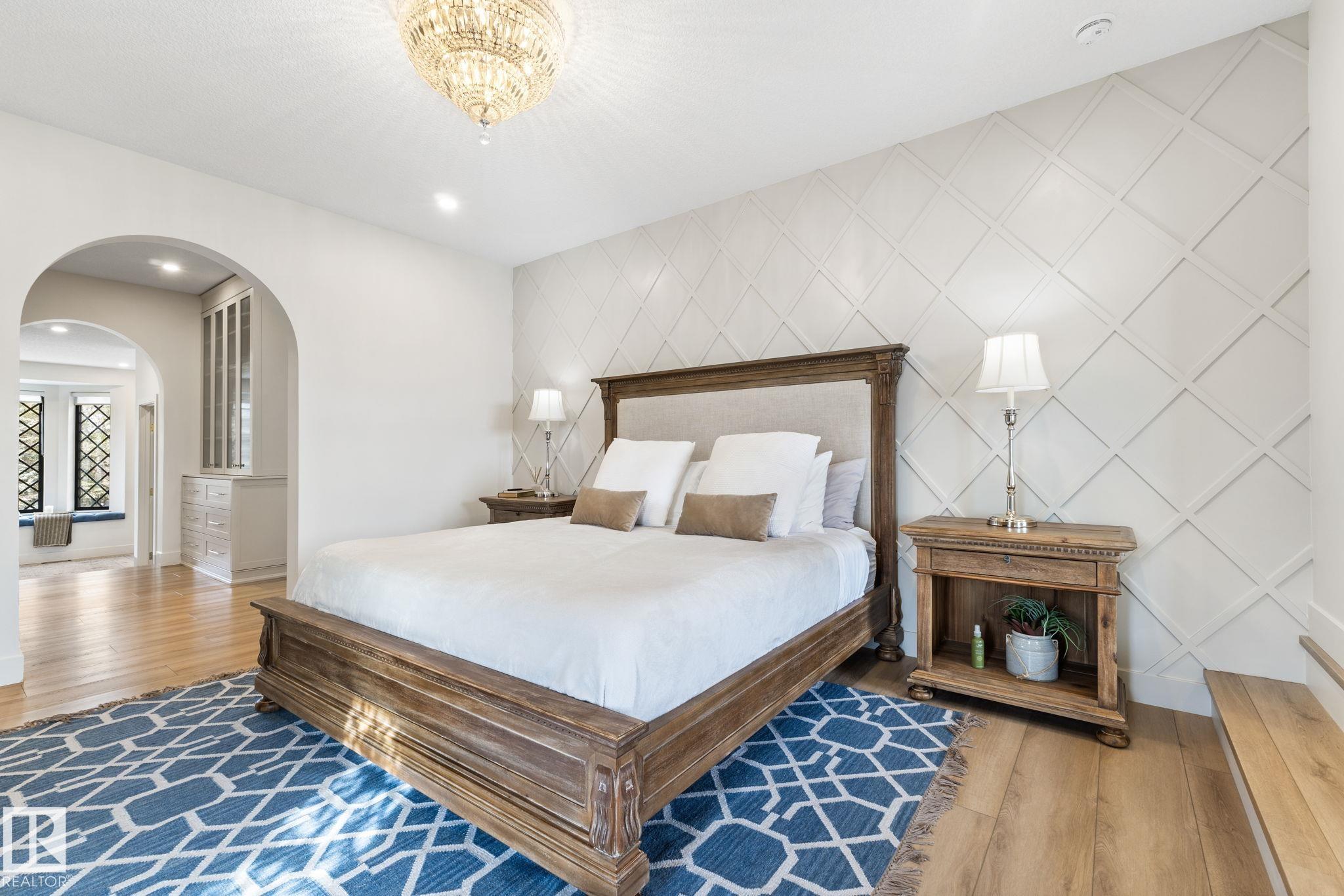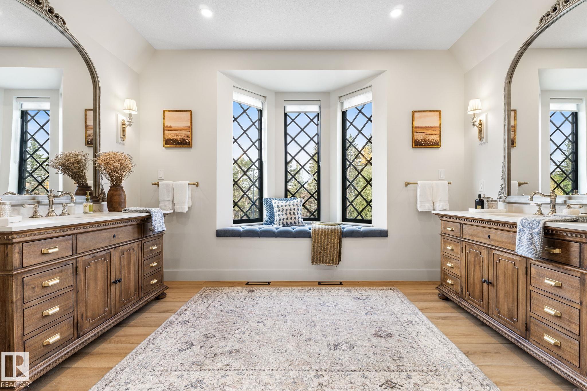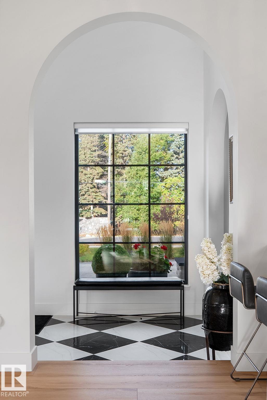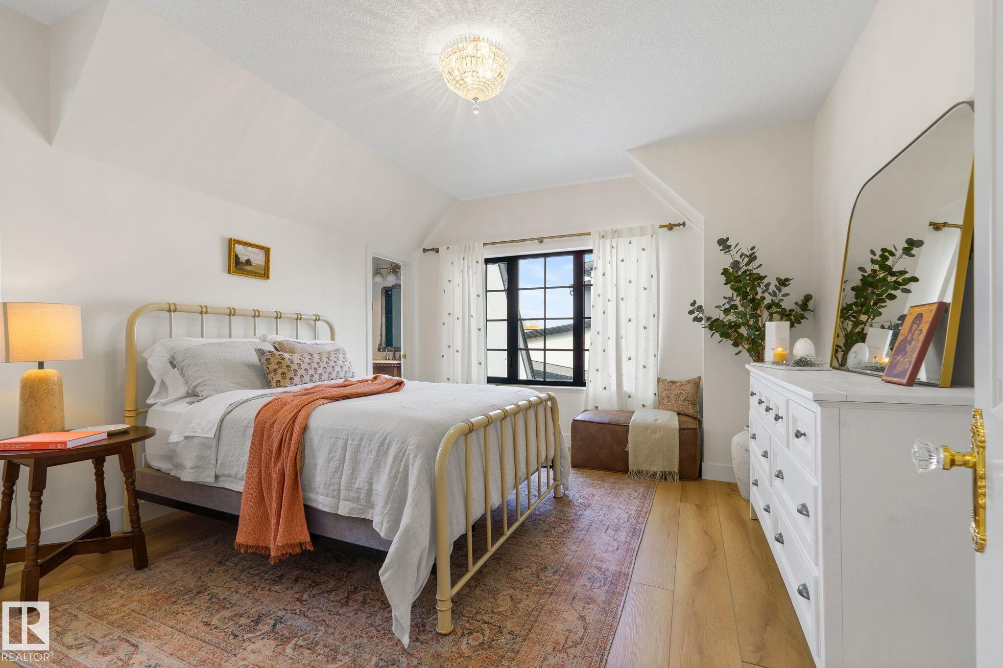 Visit the Listing Brokerage (and/or listing REALTOR©) website to obtain additional information. Located on prestigious Windermere Drive, this former Chizen & Co. showhome blends French and German architectural influences with curved metal roofs, copper accents, and a stone fa‡ade. Set on a massive 20,000+ sq ft lot, over 5,500 sq ft of refined living features 10-ft ceilings, a cast-carved stone fireplace, designer lighting, and a chef's kitchen with La Cornue range, paneled appliances, and prep kitchen. The library with custom millwork offers a quiet retreat. The three-tiered primary bedroom includes dual baths, walk-in closet, and fireplace. Highlights include four bedrooms, 3.5 baths, den, hidden wine room, third-story loft with river views, and basement with golf simulator rough-in and arched bar. Outdoors, enjoy a covered entertaining area with grill, pizza oven, and landscaped grounds. A heated five-car garage completes one of Edmonton's most architecturally coveted residences.