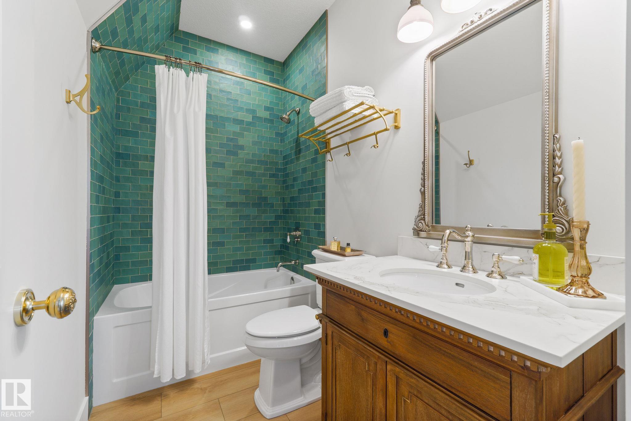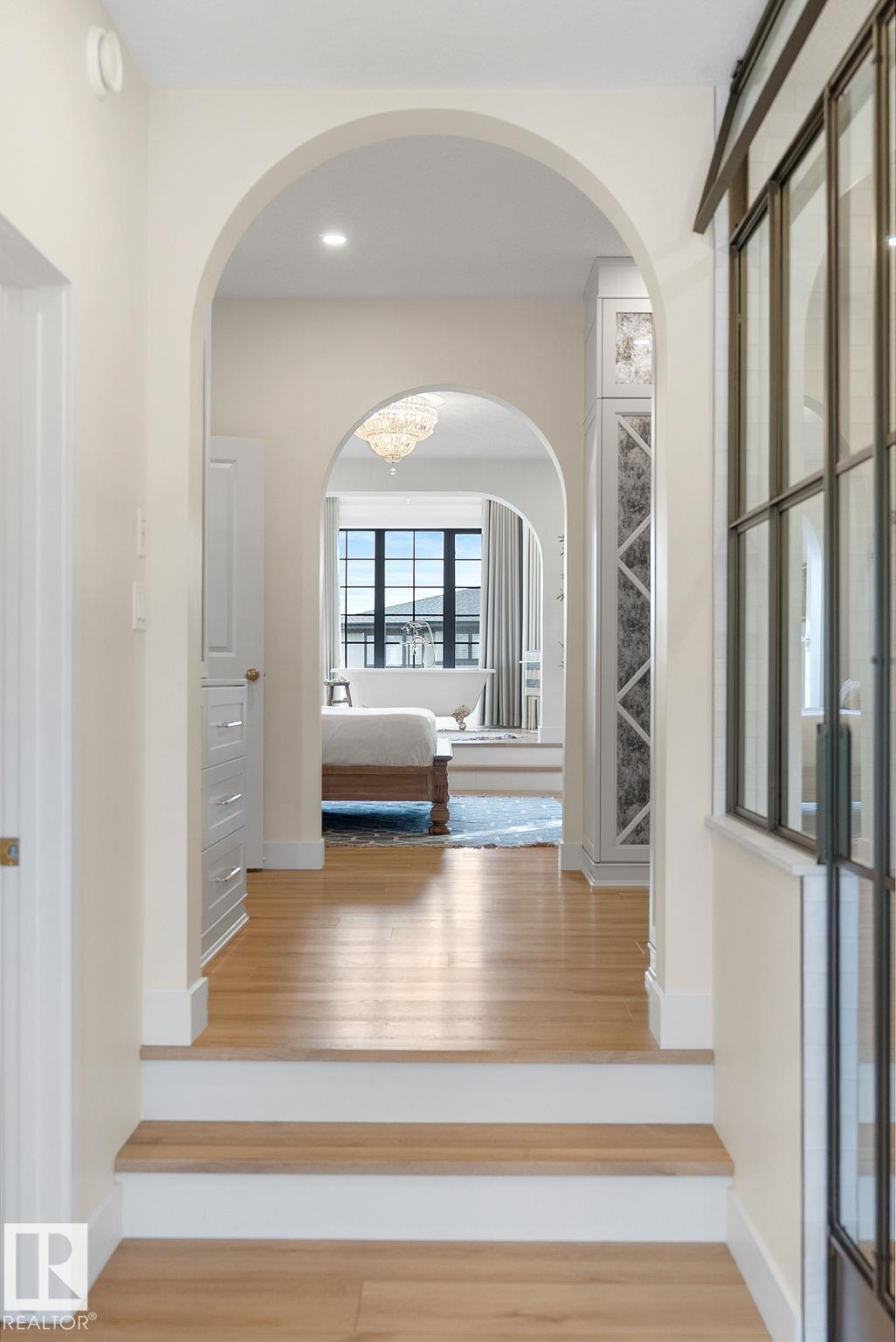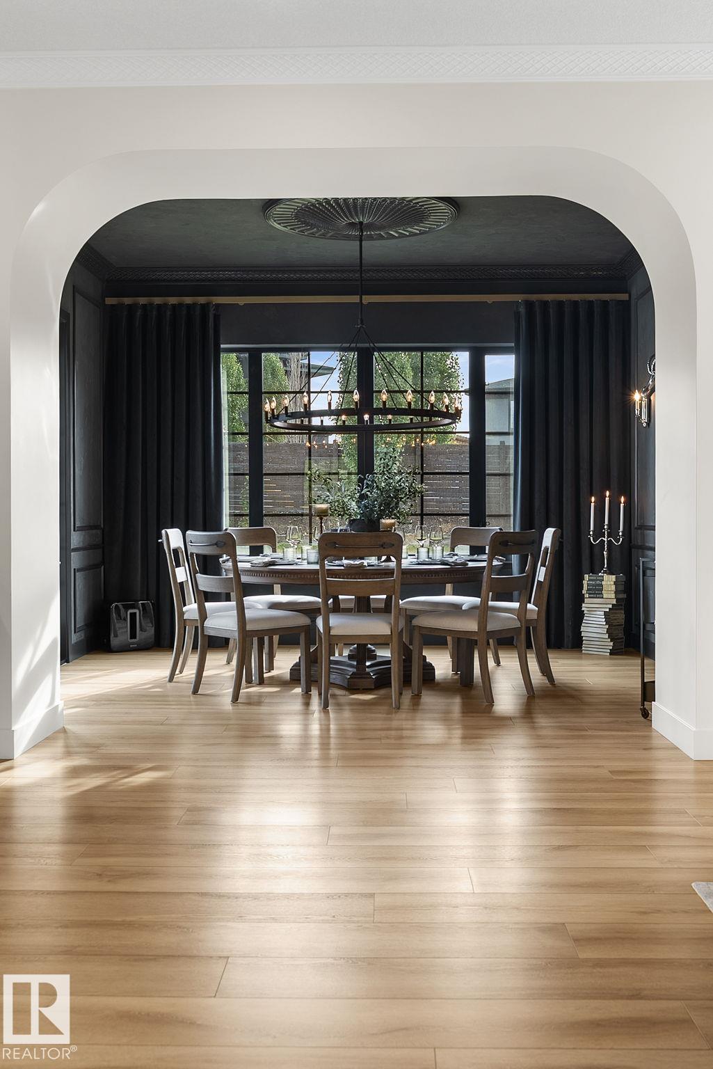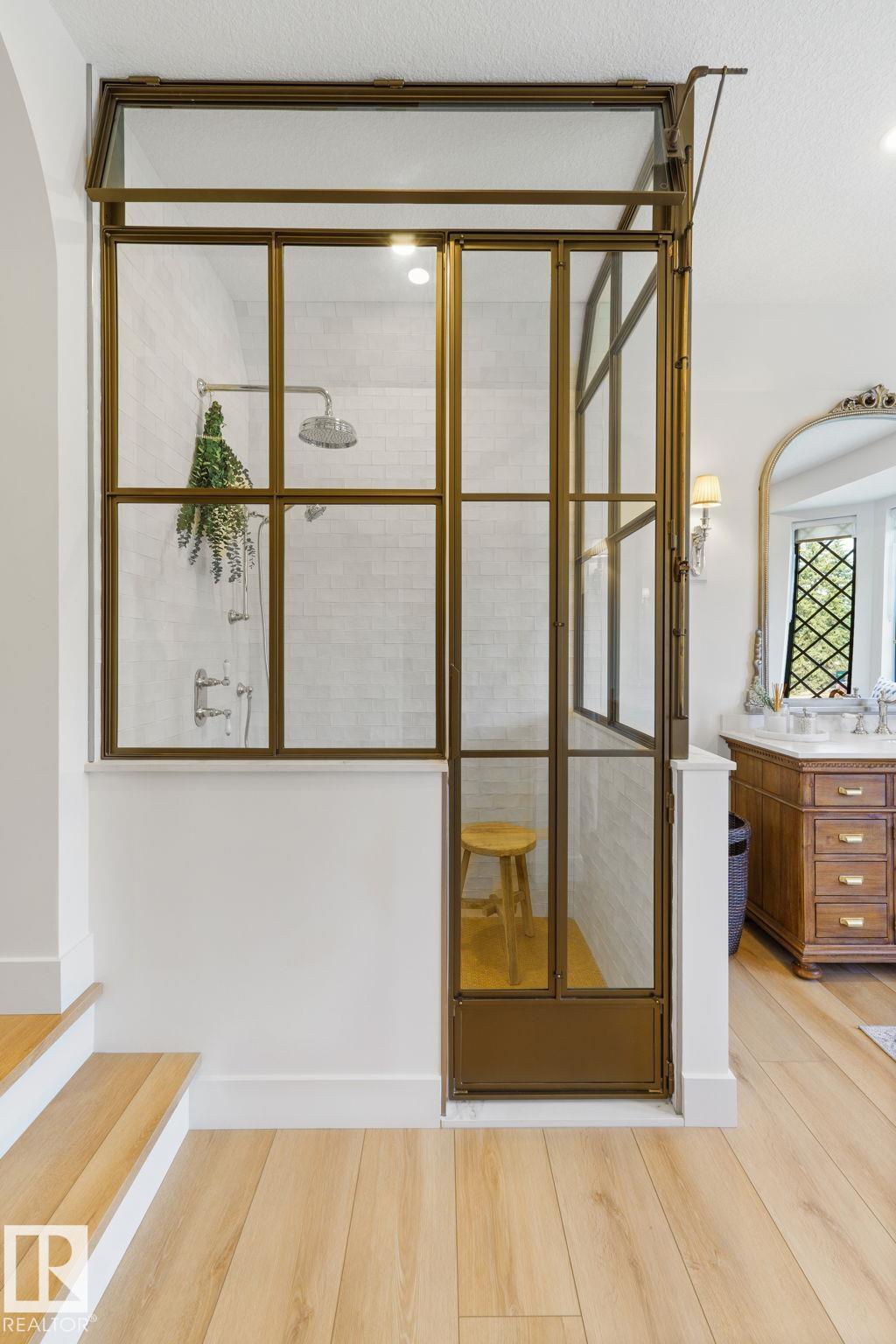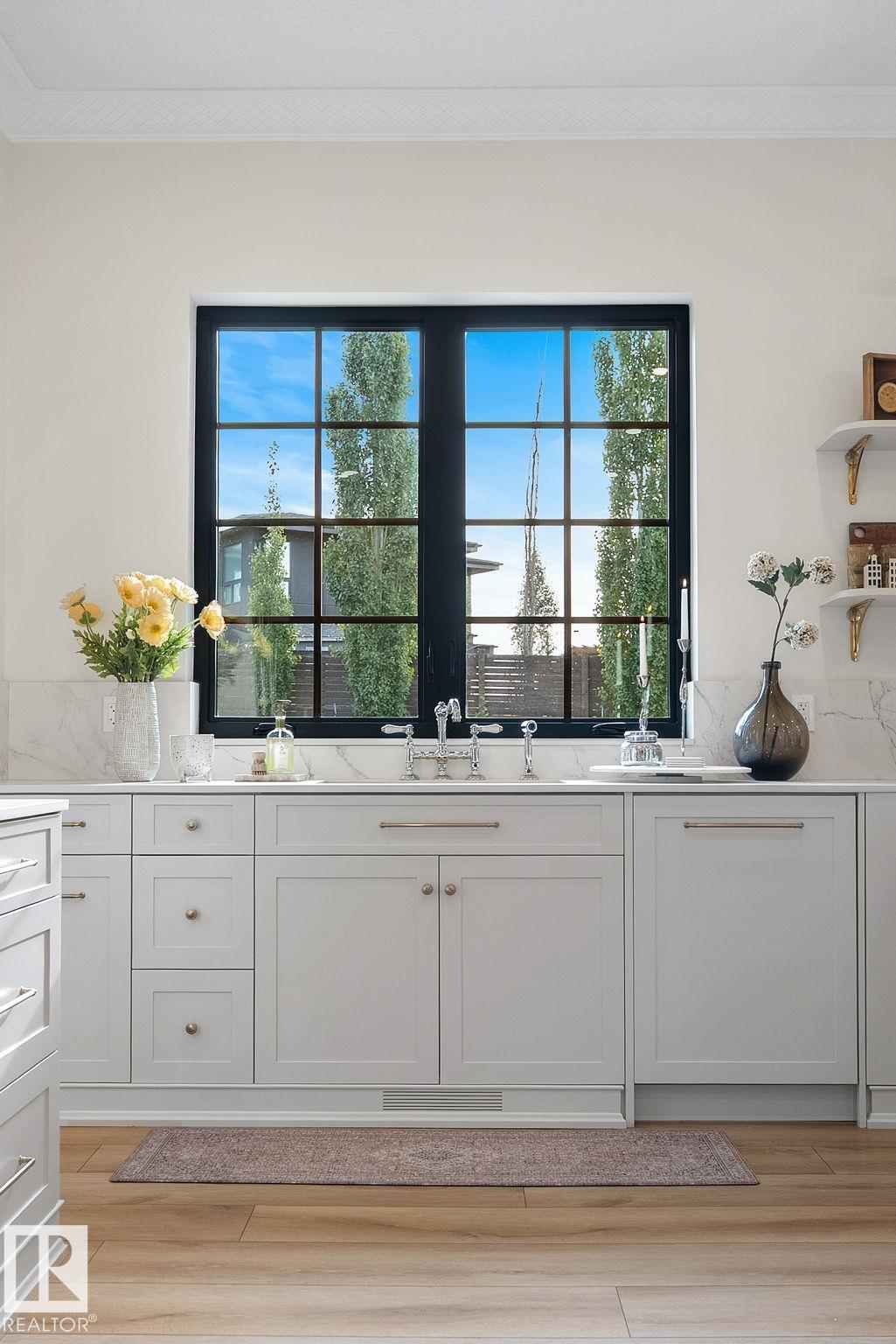 Visit the Listing Brokerage (and/or listing REALTOR©) website to obtain additional information. Located on prestigious Windermere Drive, this former Chizen & Co. showhome blends French and German architectural influences with curved metal roofs, copper accents, and a stone fa‡ade. Set on a massive 20,000+ sq ft lot, over 5,500 sq ft of refined living features 10-ft ceilings, a cast-carved stone fireplace, designer lighting, and a chef's kitchen with La Cornue range, paneled appliances, and prep kitchen. The library with custom millwork offers a quiet retreat. The three-tiered primary bedroom includes dual baths, walk-in closet, and fireplace. Highlights include four bedrooms, 3.5 baths, den, hidden wine room, third-story loft with river views, and basement with golf simulator rough-in and arched bar. Outdoors, enjoy a covered entertaining area with grill, pizza oven, and landscaped grounds. A heated five-car garage completes one of Edmonton's most architecturally coveted residences.