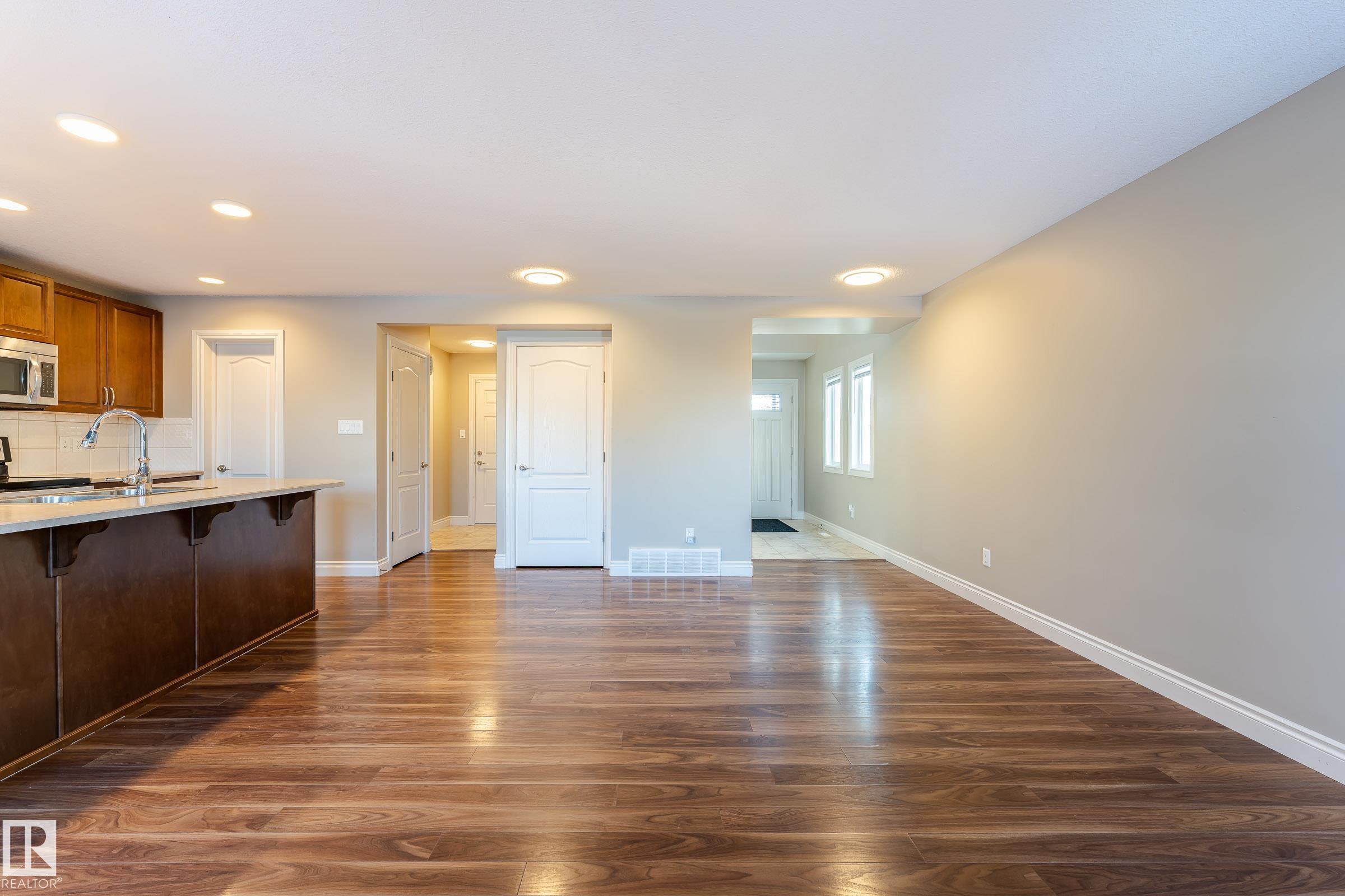 This beautiful TRAIL-BACKING DOUBLE CAR GARAGE half-duplex is located in Langdale. The OPEN CONCEPT kitchen/family/dining room features large windows allowing for plenty of natural light. Kitchen has plenty of cabinetry and walk-in pantry, loads of counter space, bar top seating & UPGRADED SS appliances! Upstairs you'll find 3 bedrooms and 2-bathrooms. The master bedroom featuring its en-suite and large WALK-IN-CLOSET. Upstairs wood railing and laundry is another bonus feature. Basement is awaiting your finishing touch. Excellent access to Henday, Windermere Shopping Center, parks and more!