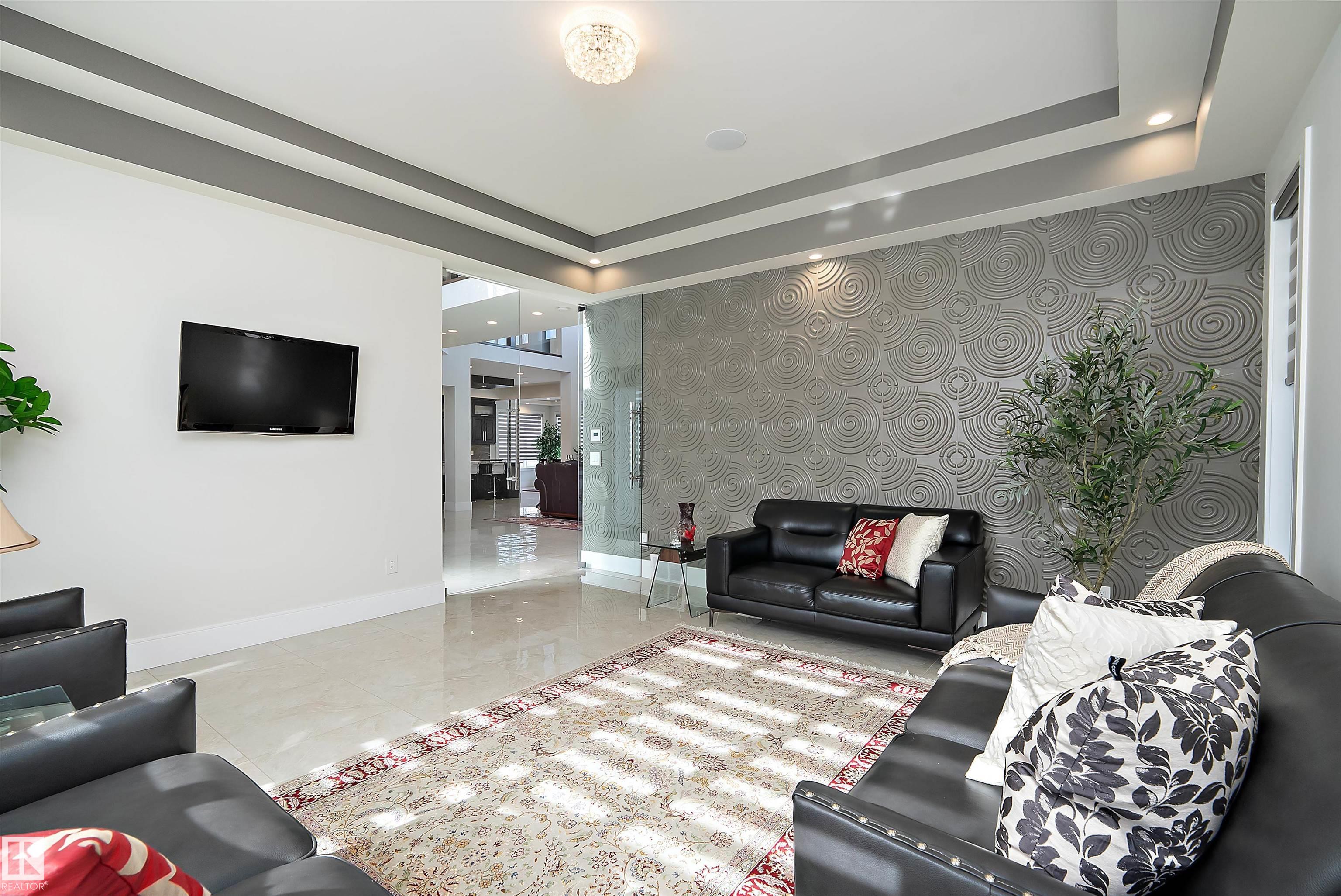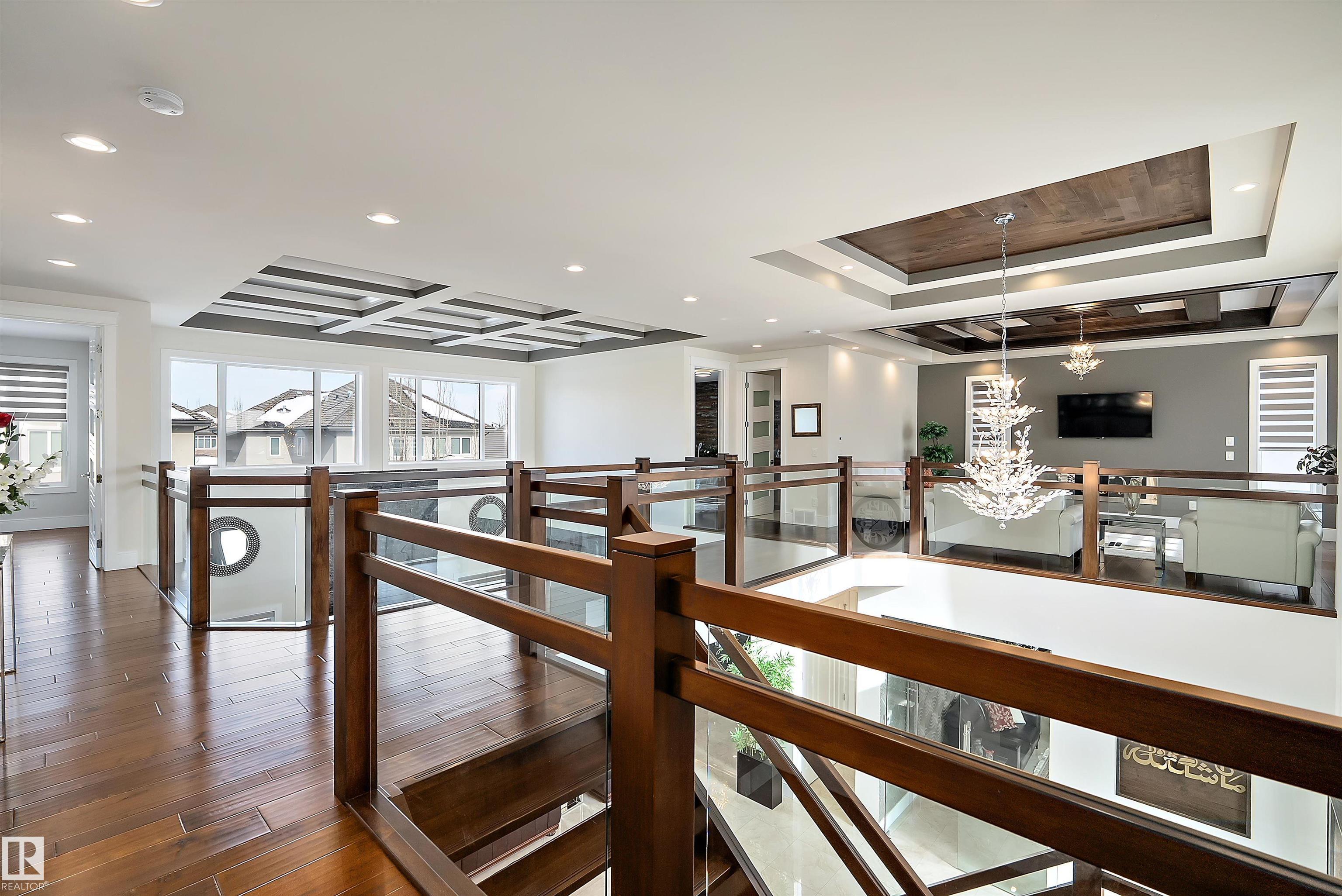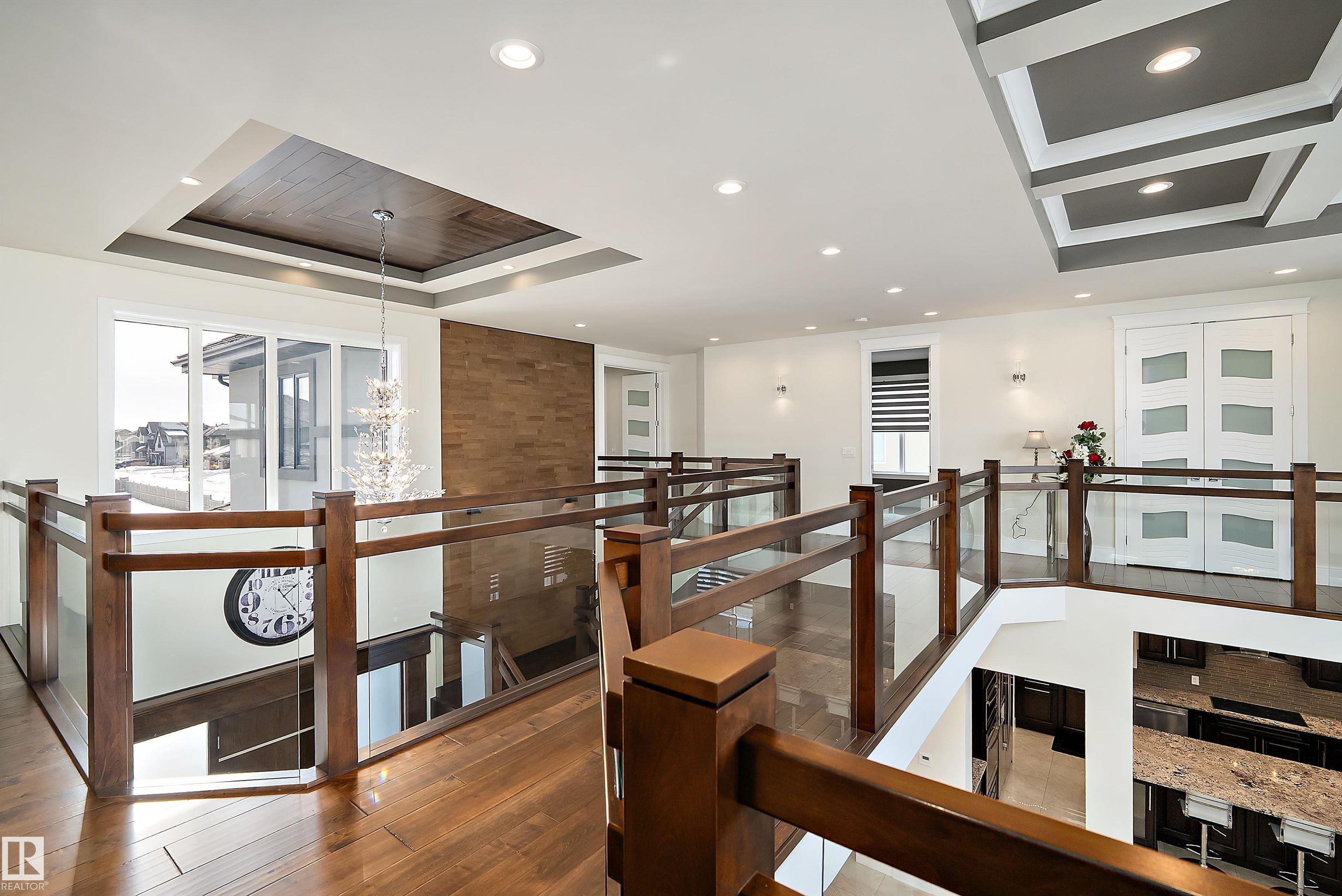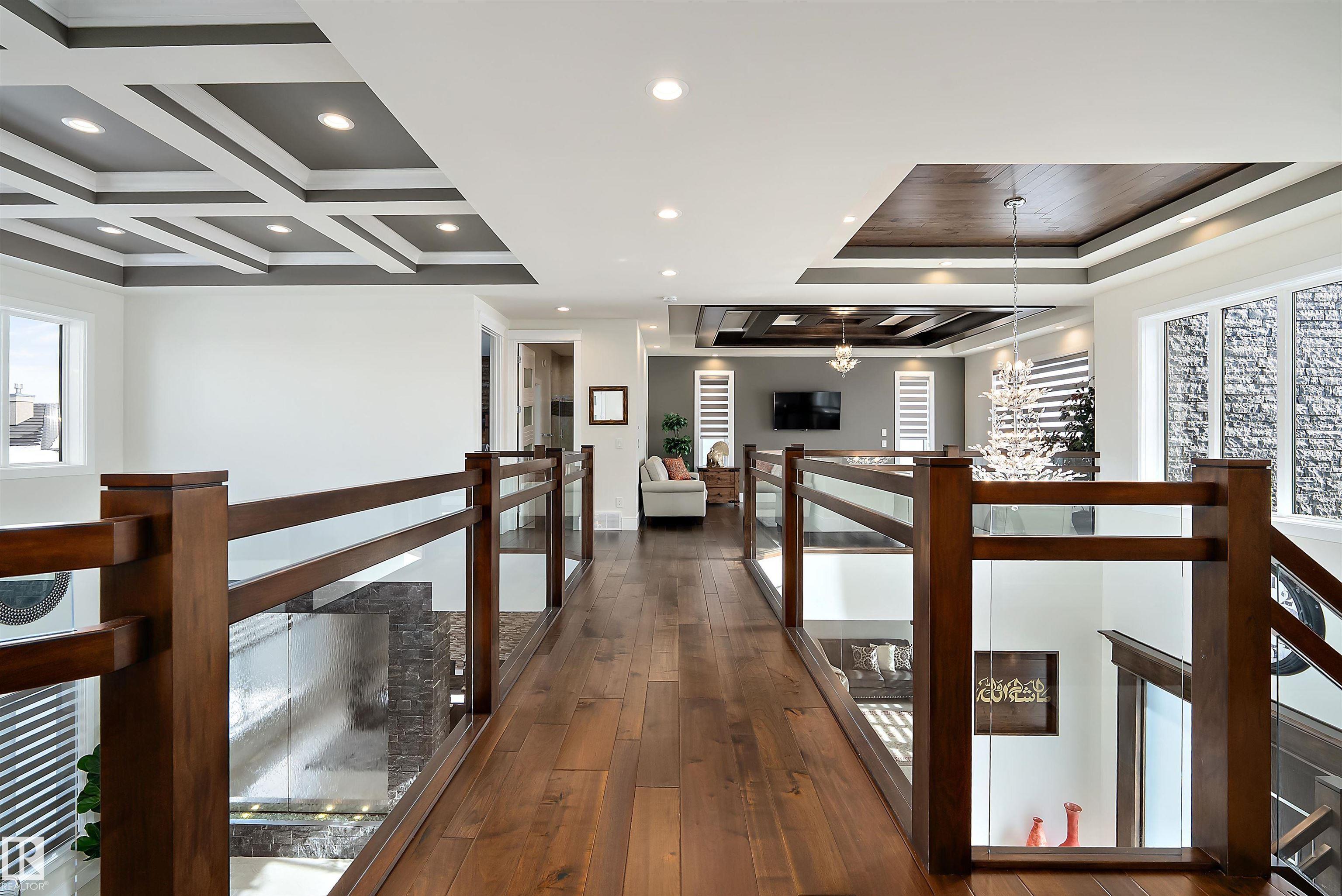 This truly amazing custom-built home offers an exceptional blend of elegance, comfort,and high-end craftsmanship throughout. This stunning property features 5 spacious bedrooms and 5 full bathrooms, thoughtfully designed to accommodate both family living and upscale entertaining. The heart of the home showcases a chef-inspired kitchen equipped with premium JennAir appliances, complemented by a fully equipped spice kitchen for added convenience. Rich walnut hardwood floors flow throughout the main living areas and a waterfall separating the living room and the formal dining room. Three beautifully appointed fireplaces create warmth and ambiance across multiple floors. Enjoy ultimate comfort year-round with two furnaces and two air conditioning units. The fully developed lower level is an entertainer's dream, complete with a private movie theatre, gym, stylish bar, and in-floor heating.This remarkable home offers luxury living at its finest, with every detail carefully curated.