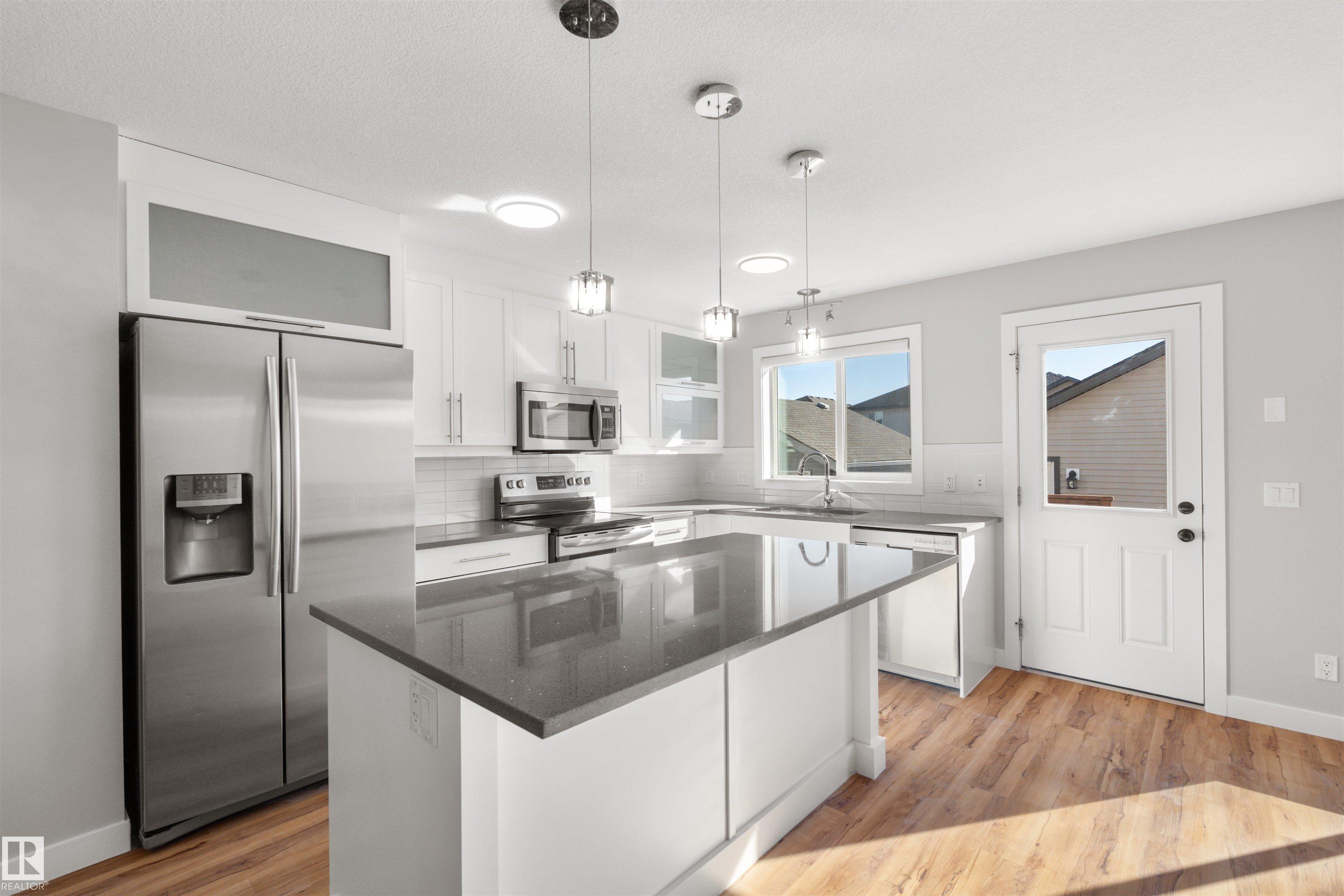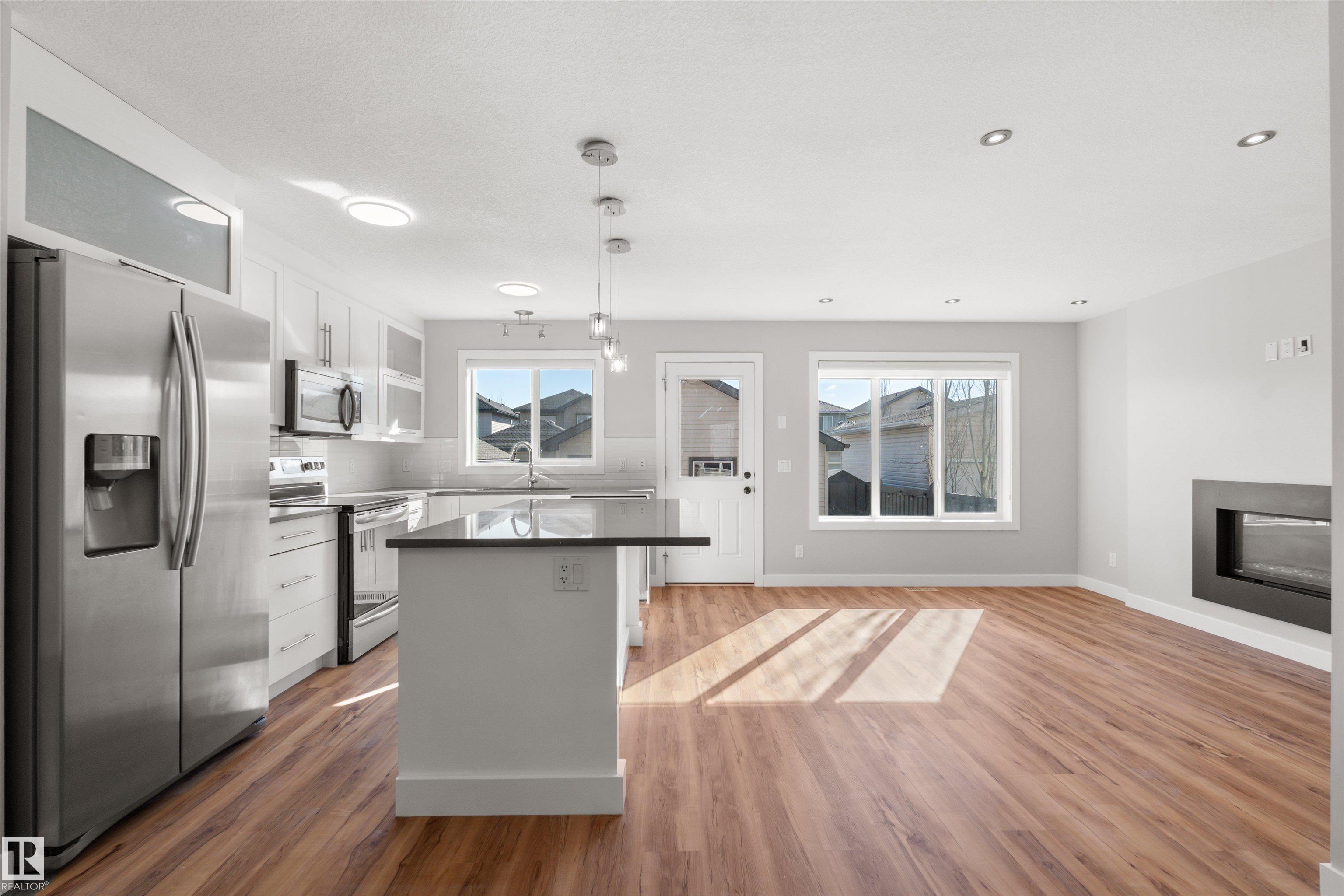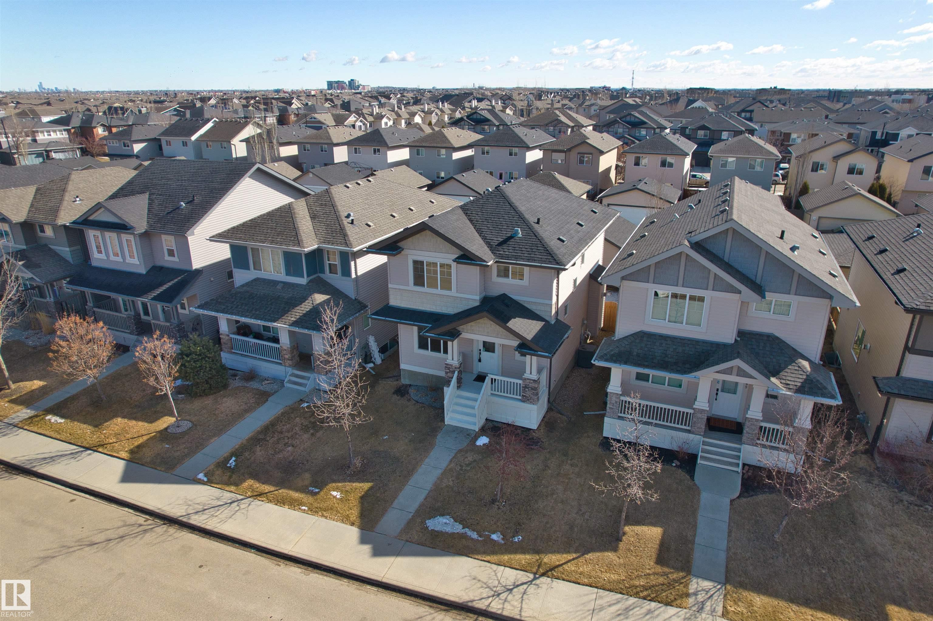Welcome to prestigious and sought-after Windermere! This beautifully maintained, ultra-rare 1,431 sqft home offers charming curb appeal with a welcoming front veranda and shows true pride of ownership. The bright main floor is the standout, featuring a front office/den right off the entrance--perfect for working from home--paired with an incredibly functional, open-concept layout that flows effortlessly and is filled with natural light throughout. The inviting living room is anchored by a cozy fireplace, while the kitchen impresses with a large island, crisp white cabinetry, quartz countertops, and a beautifully integrated dining space--ideal for everyday living and entertaining. Upstairs offers 3 well-proportioned bedrooms, 2 full baths, and convenient upstairs laundry. The primary retreat features a walk-in closet and private 4-pc ensuite. Enjoy A/C for year-round comfort. Prime southwest location near Currents of Windermere, top-rated schools, and all amenities. Don't miss out!