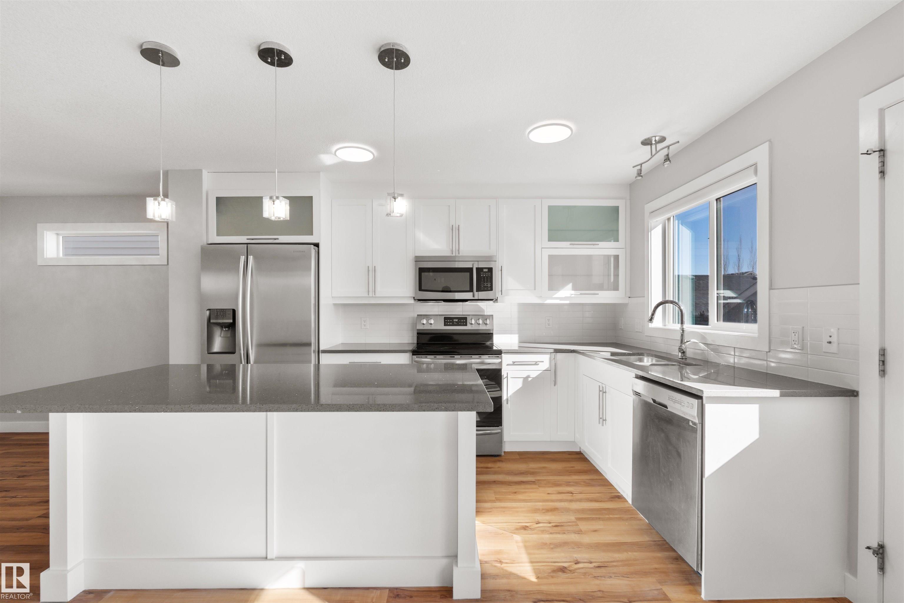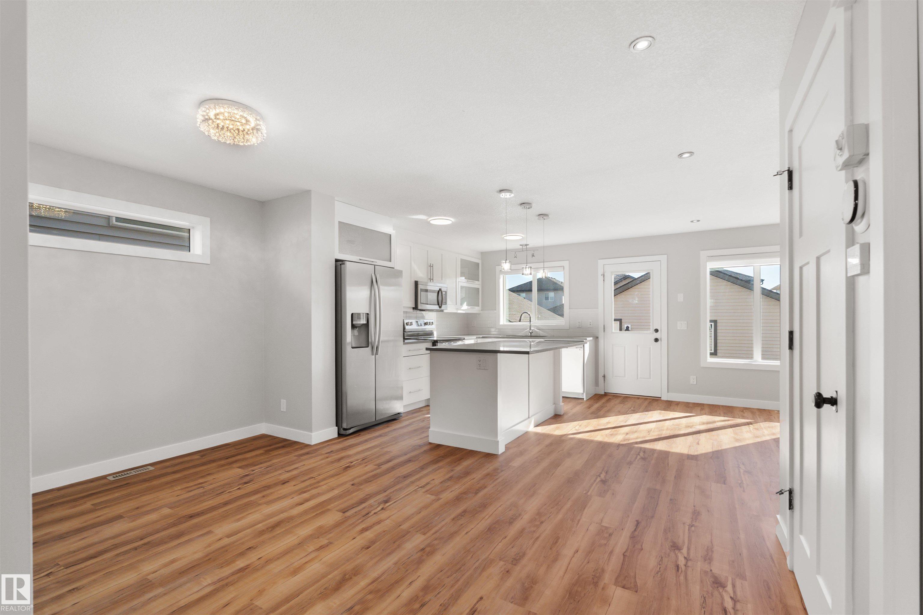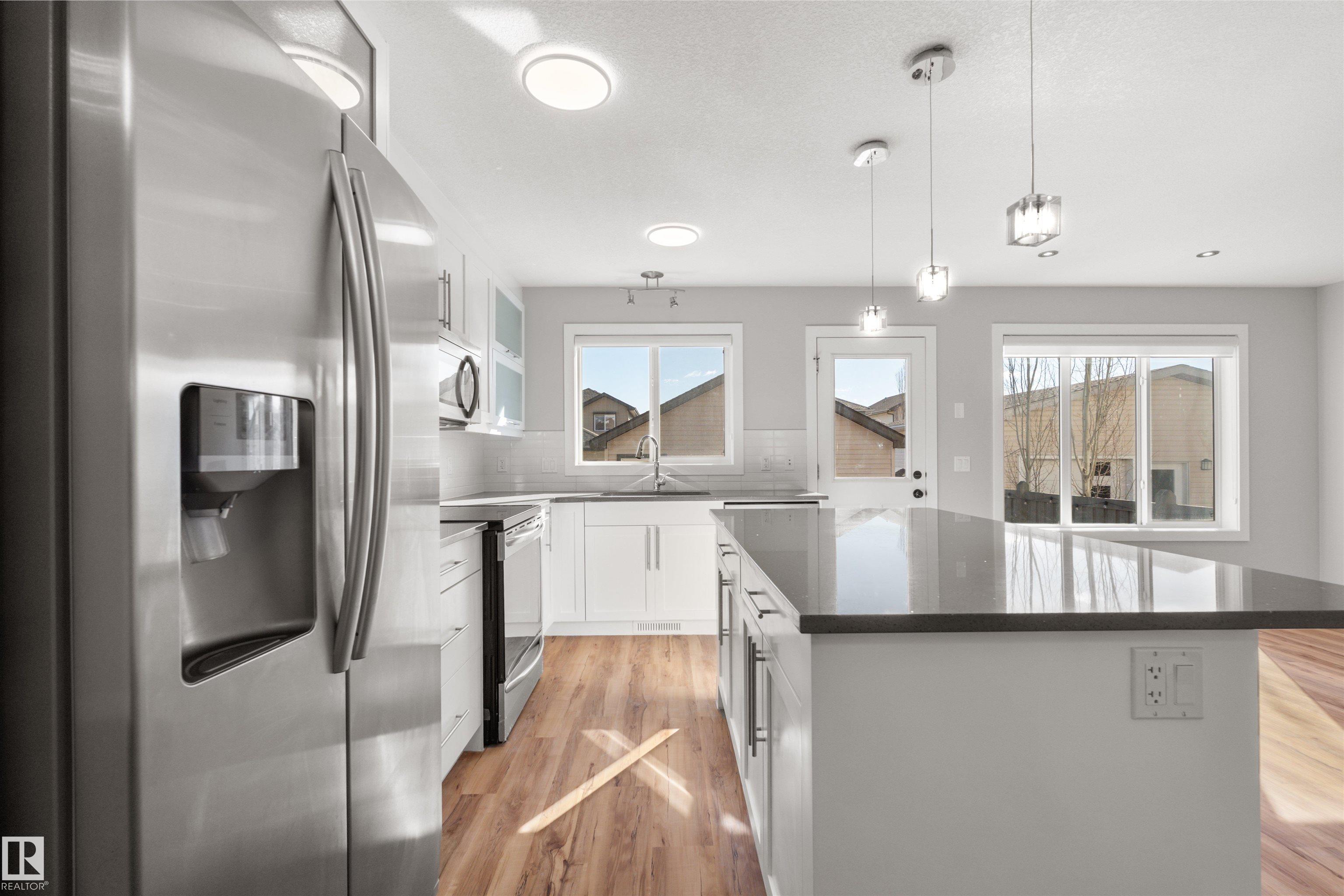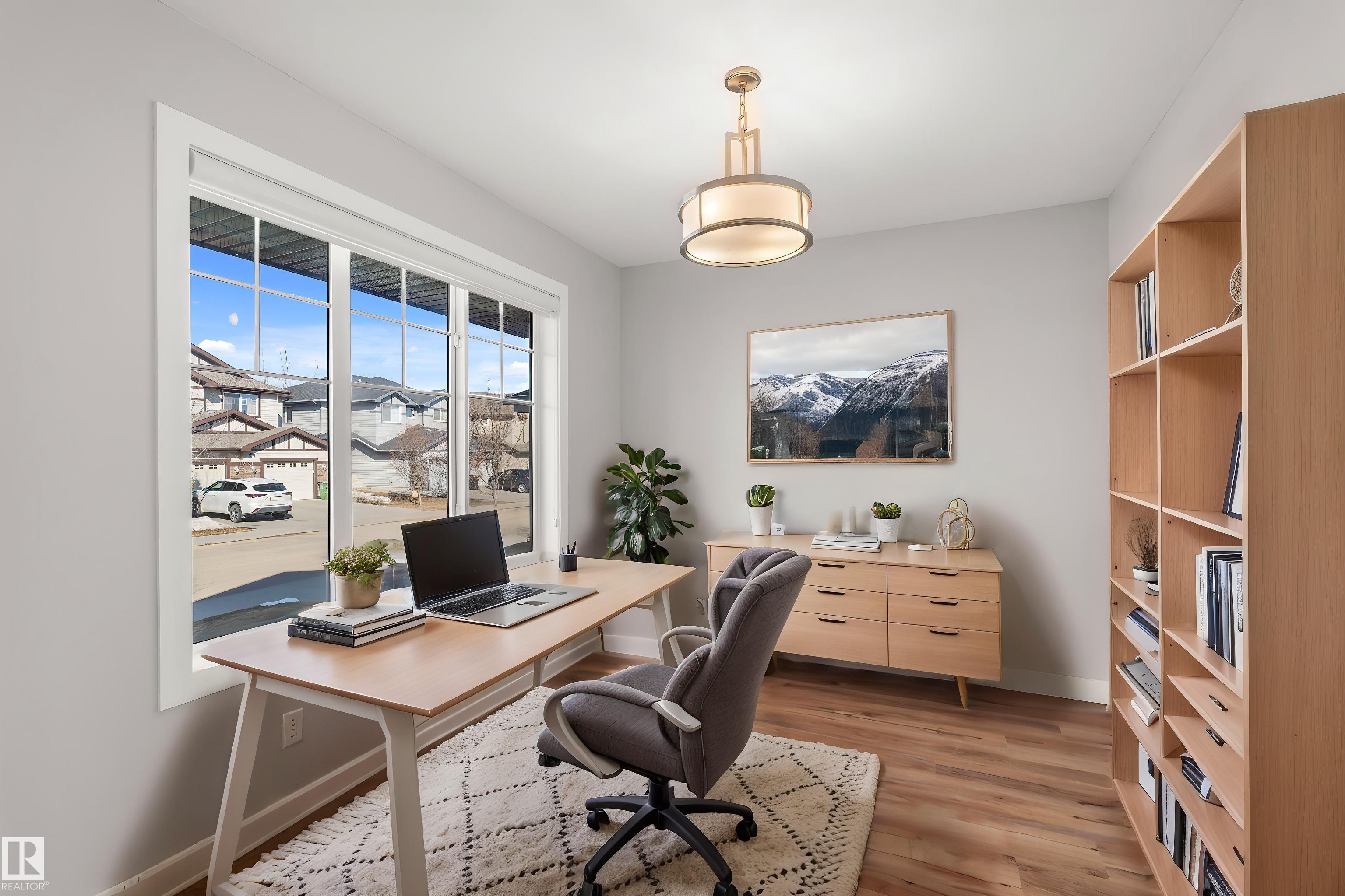 Welcome to prestigious and sought-after Windermere! This beautifully maintained, ultra-rare 1,431 sqft home offers charming curb appeal with a welcoming front veranda and shows true pride of ownership. The bright main floor is the standout, featuring a front office/den right off the entrance--perfect for working from home--paired with an incredibly functional, open-concept layout that flows effortlessly and is filled with natural light throughout. The inviting living room is anchored by a cozy fireplace, while the kitchen impresses with a large island, crisp white cabinetry, quartz countertops, and a beautifully integrated dining space--ideal for everyday living and entertaining. Upstairs offers 3 well-proportioned bedrooms, 2 full baths, and convenient upstairs laundry. The primary retreat features a walk-in closet and private 4-pc ensuite. Enjoy A/C for year-round comfort. Prime southwest location near Currents of Windermere, top-rated schools, and all amenities. Don't miss out!