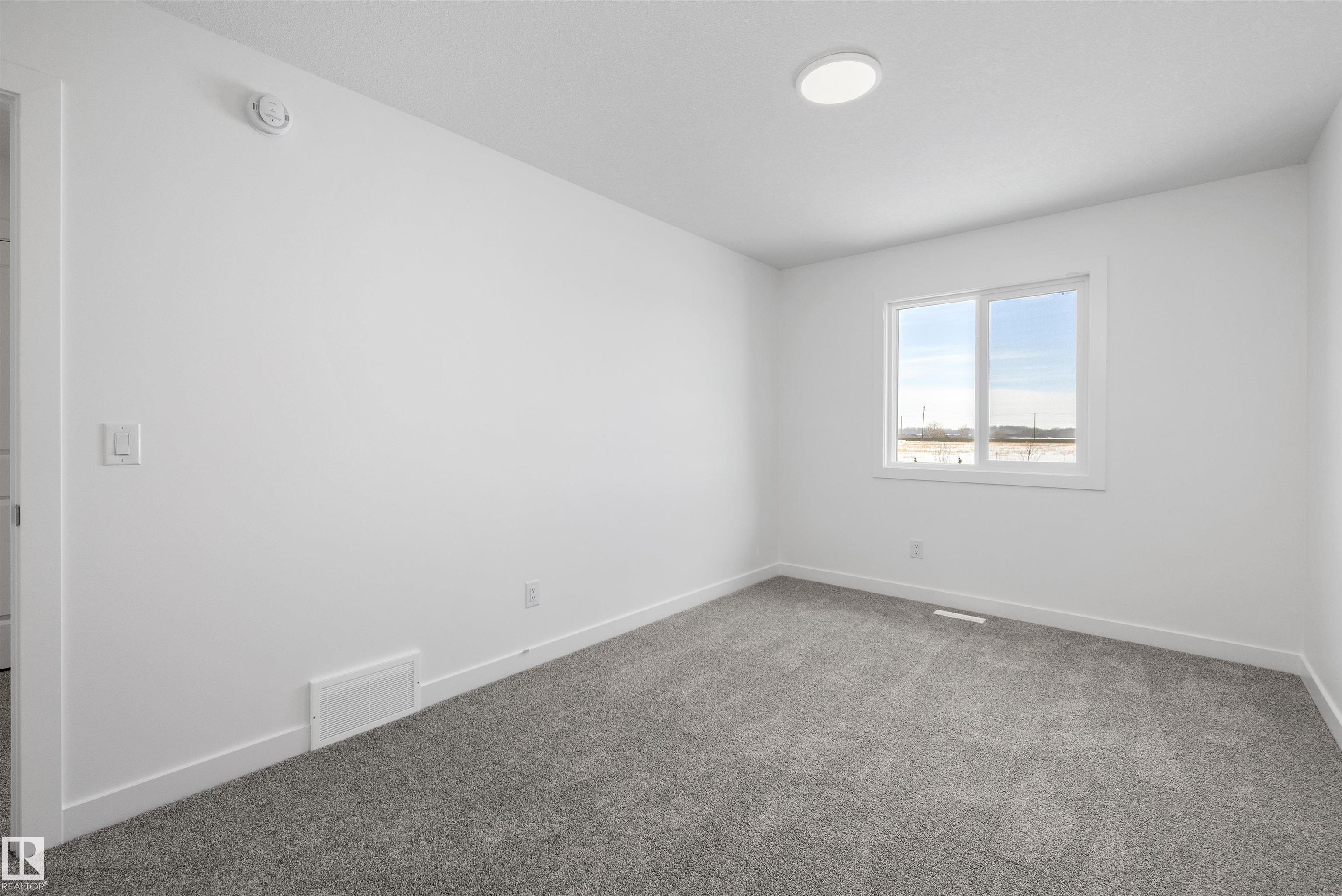 Built by Sterling Homes, this front-attached home in Sienna offers bright, modern living in a family-focused community with parks, walking paths, and nearby amenities. Triple pane windows and 9' ceilings create an open feel on the main floor, where a welcoming foyer leads to a spacious great room with an electric fireplace. The kitchen features quartz countertops, a large island with seating, upgraded cabinetry, chimney-style hood fan, built-in microwave, and a corner pantry. Large rear windows and a garden door bring in natural light, and a half bath completes the level. Upstairs, the primary suite includes a walk-in closet with a window and a 4-piece ensuite with double sinks and glass-door shower. A central bonus room, two bedrooms, full bath, and upper-floor laundry add everyday comfort. Luxury vinyl plank flooring, upgraded railings, side entrance, oversized double attached garage with floor drain, and basement rough-ins complete this Fort Saskatchewan home.