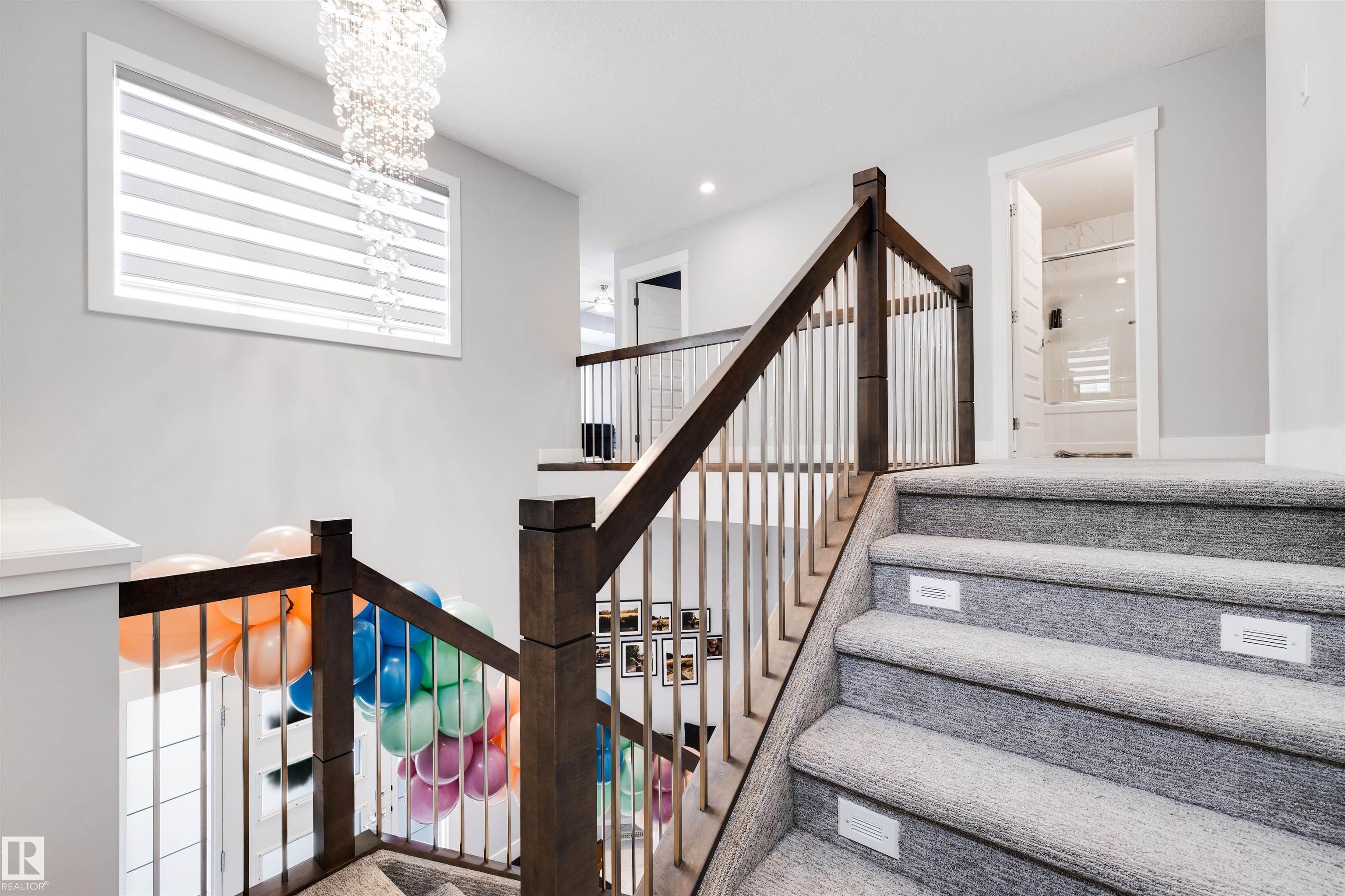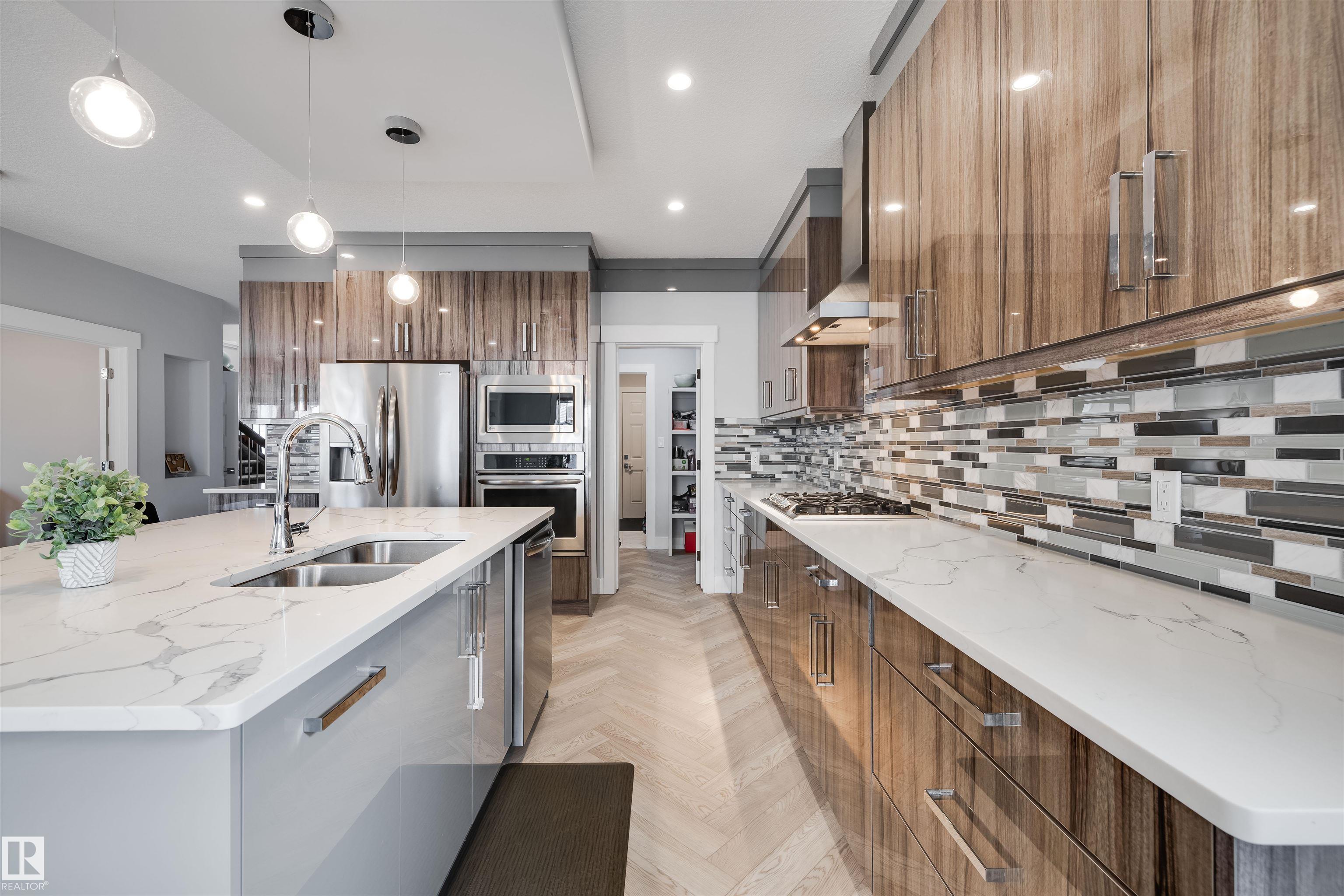Prepare to be impressed by the stunning HERRINGBONE flooring throughout, setting warm and welcoming tones as you walk in. Offering over 4,000 sqft of serious comfort, function, and luxury. The main floor features 17 ft ceilings with an open concept kitchen, perfect for entertaining, while the FULLY FINISHED basement includes a WET BAR, generous rec room, cozy fireplace, and two additional bedrooms--ideal for guests or a growing family. A SEPERATE SIDE ENTRANCE adds convenience, and the HEATED TRIPLE car attached garage offers both space and comfort year-round. Stay cool with central AIR CONDITIONING, and retreat to the luxurious primary suite with a spa-like bathroom, complete with a jetted tub, tiled shower, and large walk-in closet. From top to bottom, this home is full of upgrades and personality--truly an awesome place to call home.