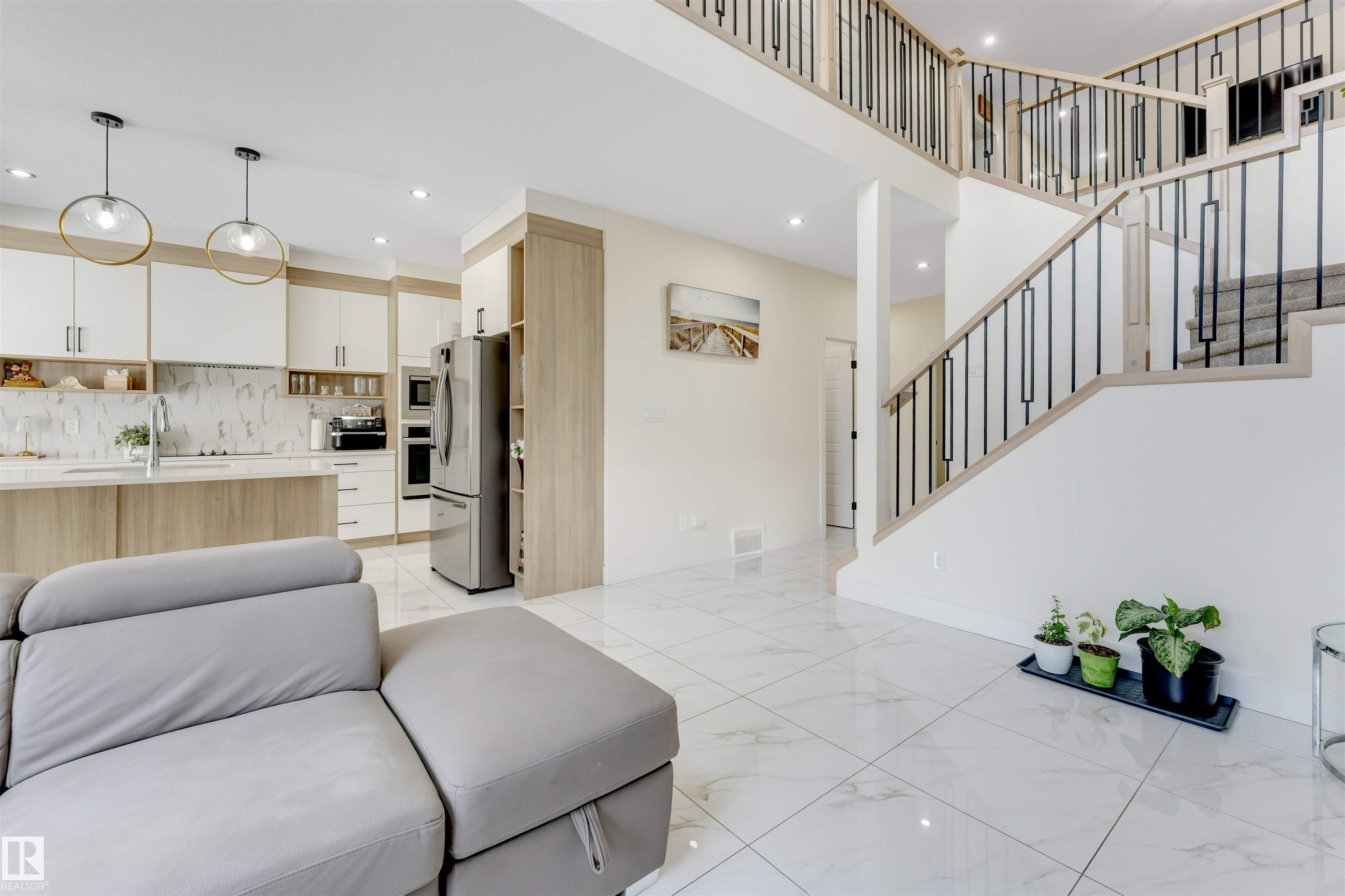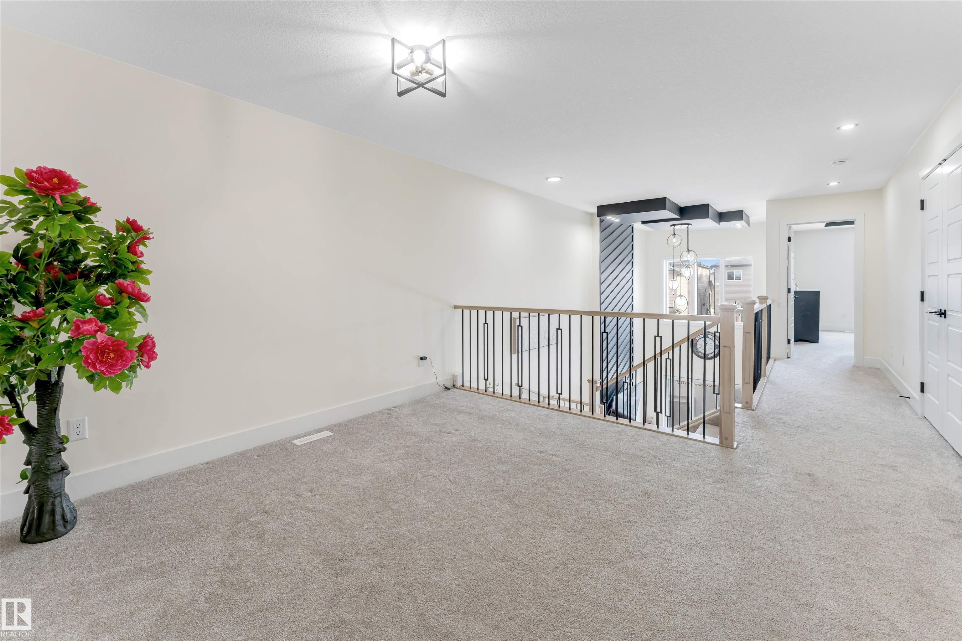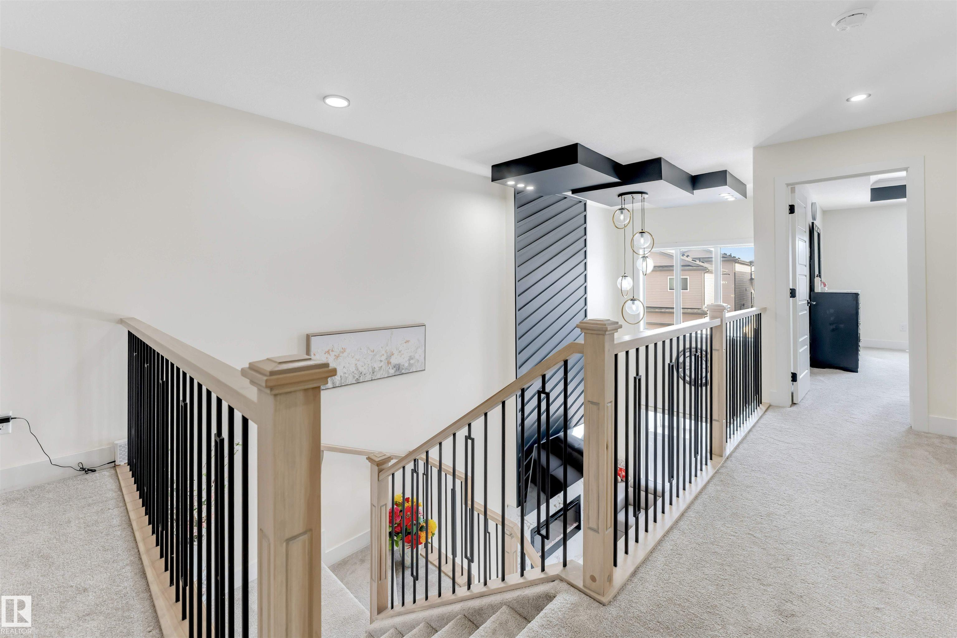 Luxury Living in Triomph Estates, Beaumont - 4 BEDS + DEN/OFFICE , SPICE KITCHEN & More! Welcome to this stunning 2,183 sq. ft. home in the sought-after Triomph Estates of Beaumont, located on a quiet closed street with a SEPARATE ENTRANCE to the basement and BACK ALLEY access. Step into a breathtaking open-to-below living area, featuring a striking accent wall with an electric fireplace, adding warmth and elegance. The modern gourmet EXTENDED kitchen boasts glass countertops, while the spice kitchen with a gas cooktop is perfect for culinary enthusiasts. The main floor includes a den and a full bathroom, ideal for guests or a home office. Upstairs, a huge bonus room complements 4 spacious bedrooms, including a master suite with an accent wall, 5-piece ensuite, and walk-in closet. Laundry is conveniently upstairs. With an unfinished basement, back alley access, and a peaceful location on a quiet closed street, this home offers endless possibilities. Experience luxury and functionality!