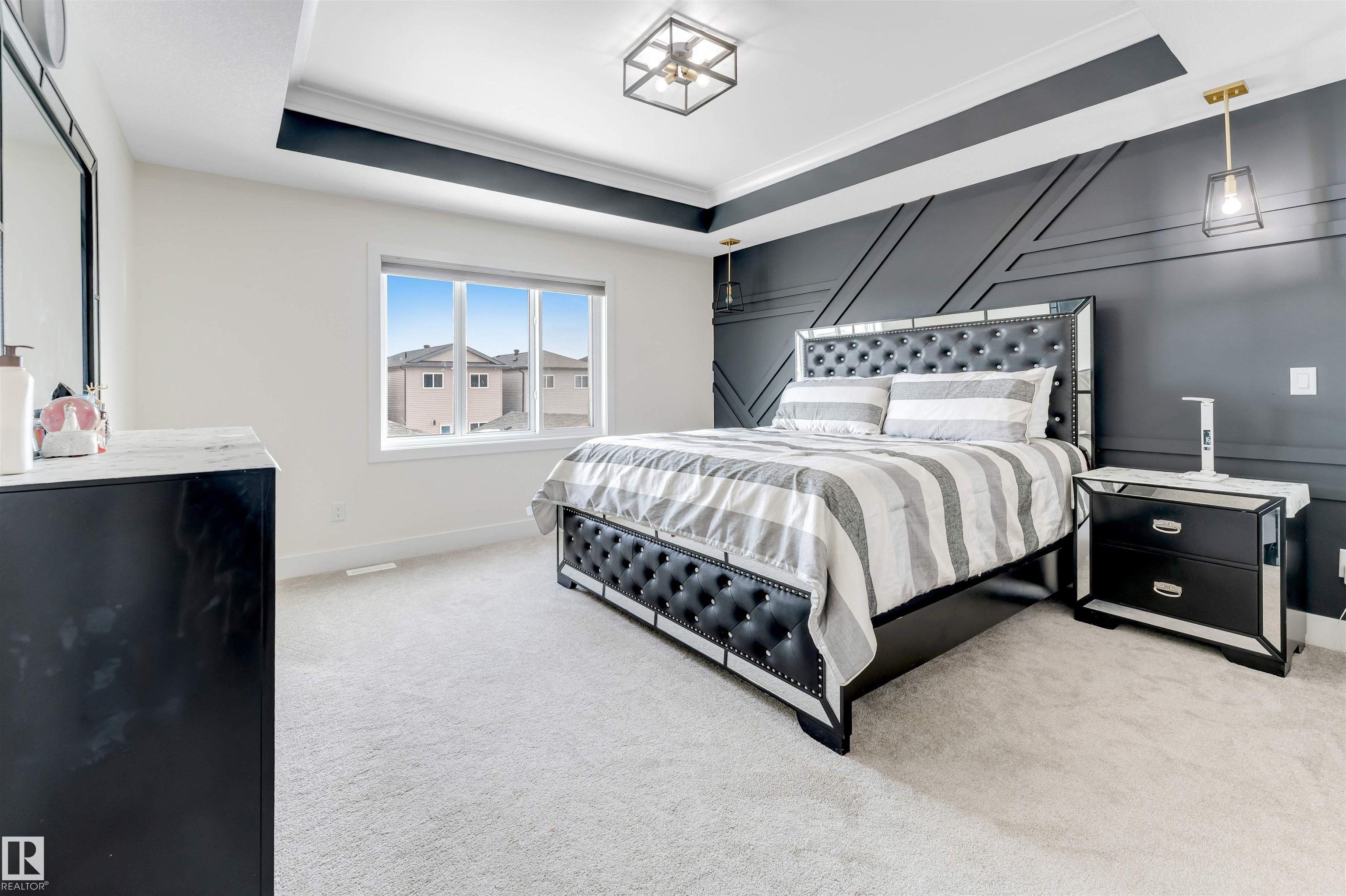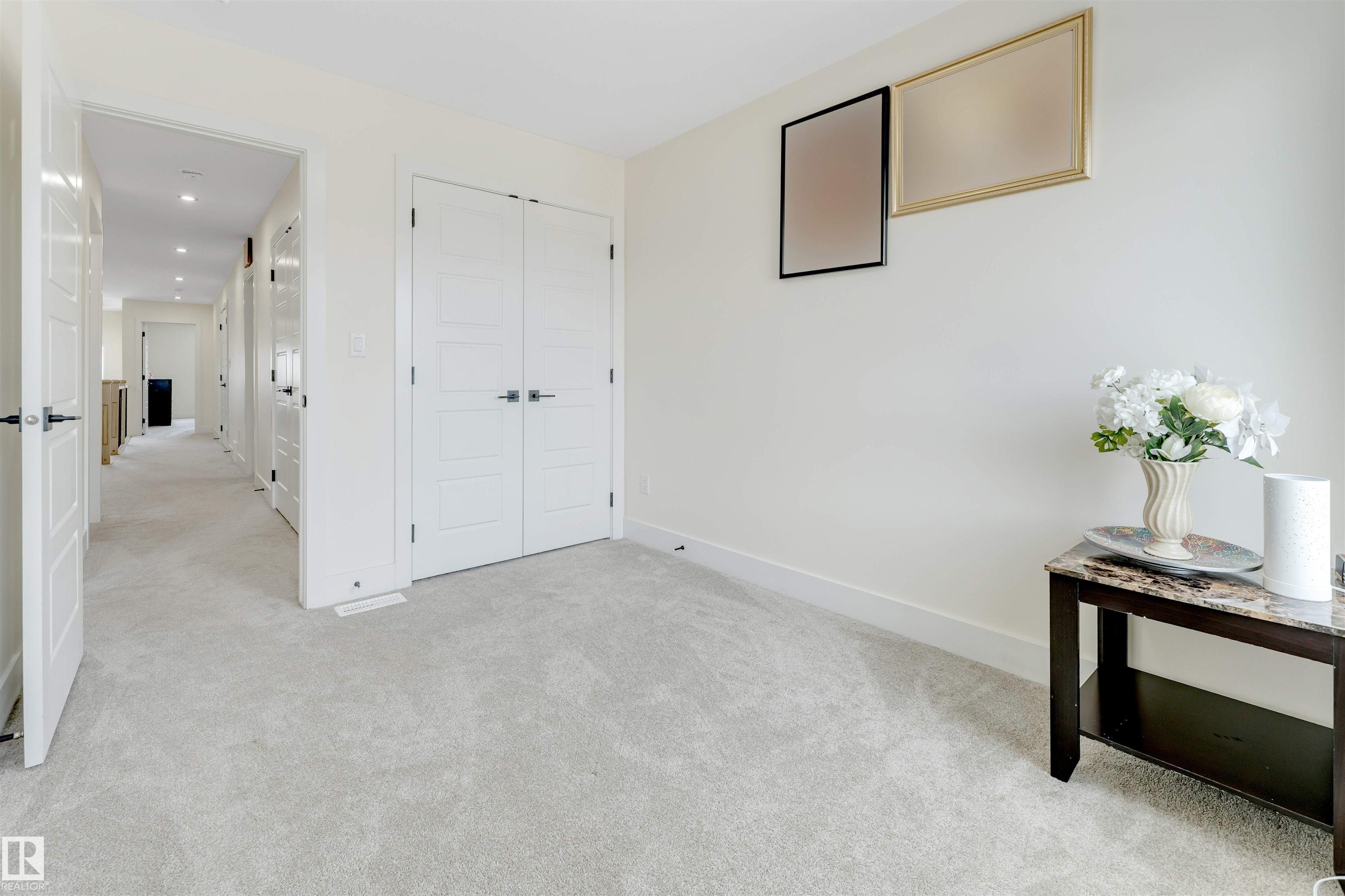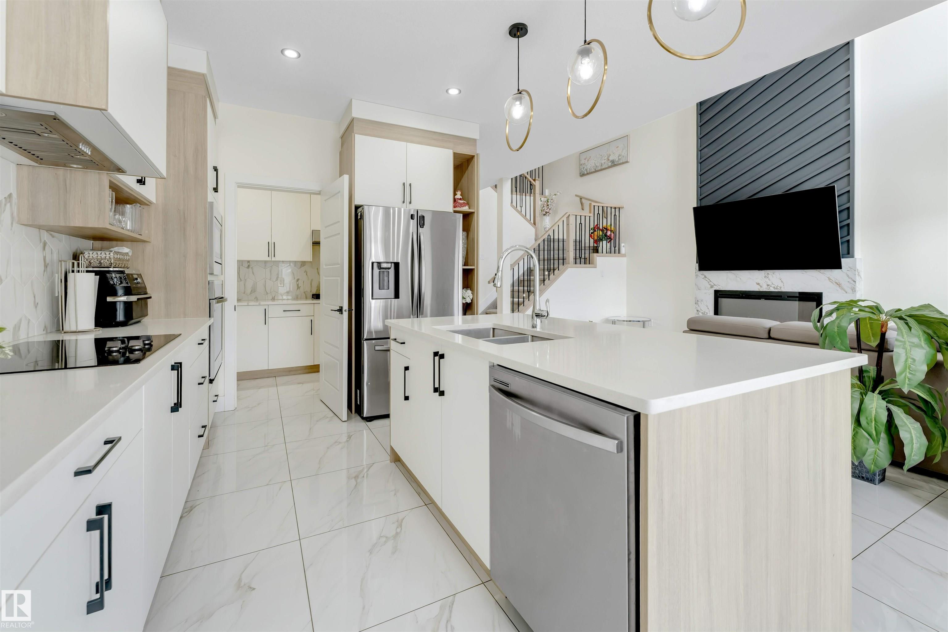 Luxury Living in Triomph Estates, Beaumont - 4 BEDS + DEN/OFFICE , SPICE KITCHEN & More! Welcome to this stunning 2,183 sq. ft. home in the sought-after Triomph Estates of Beaumont, located on a quiet closed street with a SEPARATE ENTRANCE to the basement and BACK ALLEY access. Step into a breathtaking open-to-below living area, featuring a striking accent wall with an electric fireplace, adding warmth and elegance. The modern gourmet EXTENDED kitchen boasts glass countertops, while the spice kitchen with a gas cooktop is perfect for culinary enthusiasts. The main floor includes a den and a full bathroom, ideal for guests or a home office. Upstairs, a huge bonus room complements 4 spacious bedrooms, including a master suite with an accent wall, 5-piece ensuite, and walk-in closet. Laundry is conveniently upstairs. With an unfinished basement, back alley access, and a peaceful location on a quiet closed street, this home offers endless possibilities. Experience luxury and functionality!