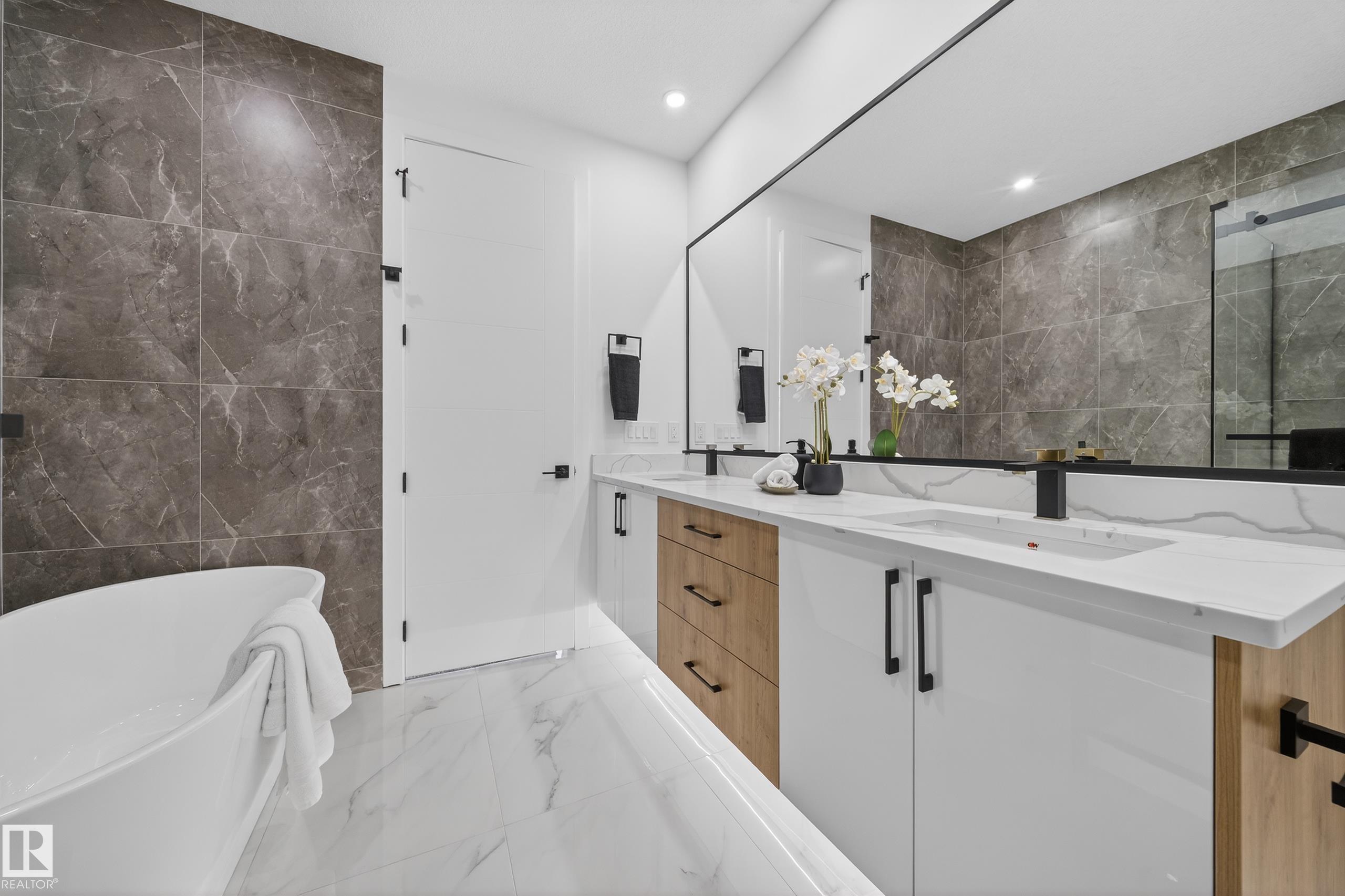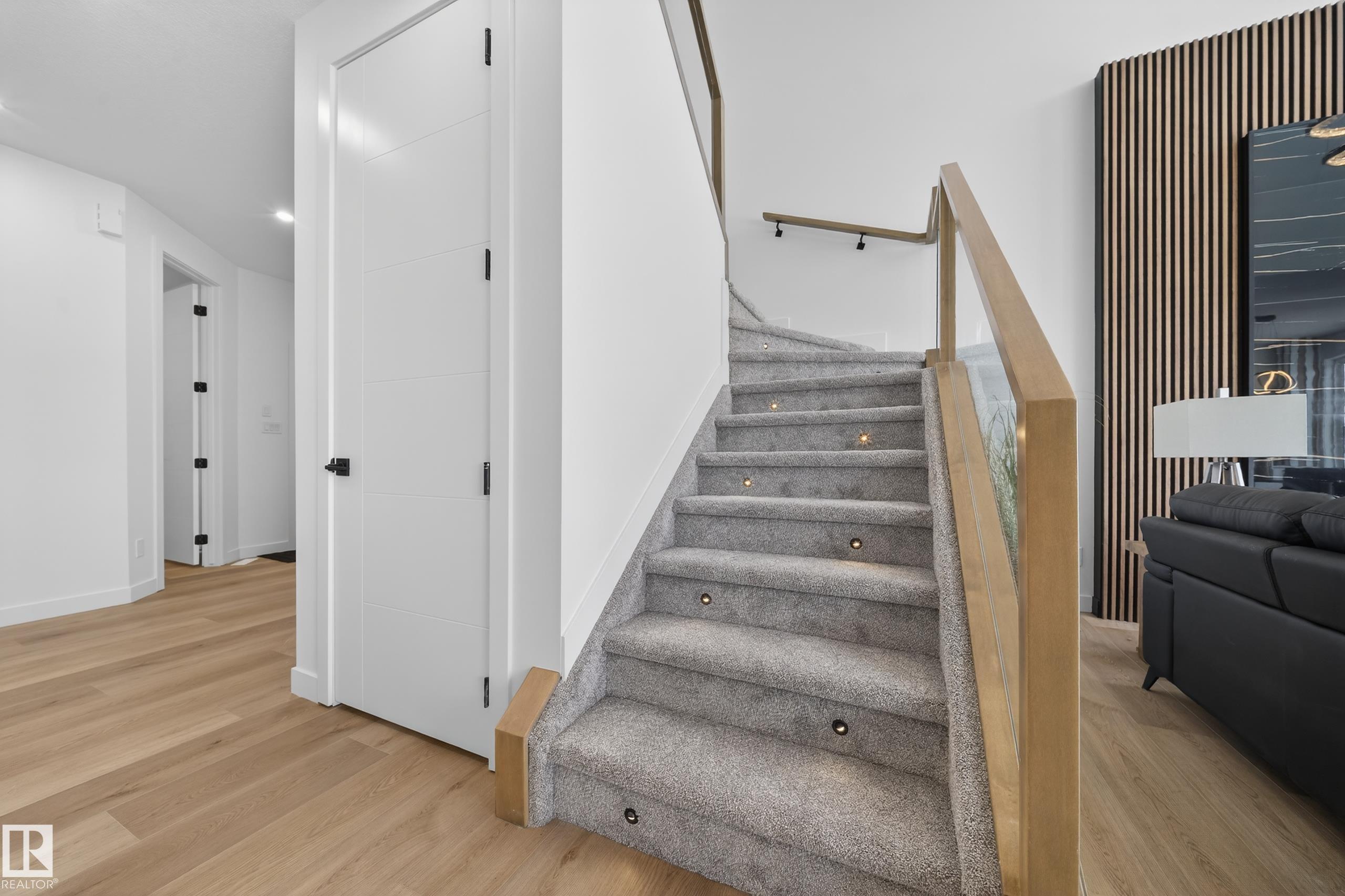 Welcome to this Brand New Single Family home located in the growing community of Crystal Creek, Leduc. This beautifully upgraded home offers 4 bedrooms and 3 full bathrooms, including a convenient MAIN FLOOR BEDROOM & BATH, perfect for guests or extended family. The main level features an impressive extended kitchen with 3 cm quartz countertops, ample MDF shelving & a full SPICE KITCHEN for added convenience. Enjoy the bright and open OPEN-TO-ABOVE living room, upgraded lighting package, spacious mudroom, and modern glass railing. Upstairs offers a comfortable bonus room, two additional bedrooms, a spacious primary suite, and upper-level laundry. Additional features include a SEPARATE SIDE ENTRANCE to the unfinished basement, 200 AMP service, EV rough-ins, MDF shelving throughout, a DOUBLE ATTACHED GARAGE, and close proximity to shopping, parks, and major amenities. Photos are for a similar property with same layout and Interior selections. Home is Under construction & Estimated completion in March end!!