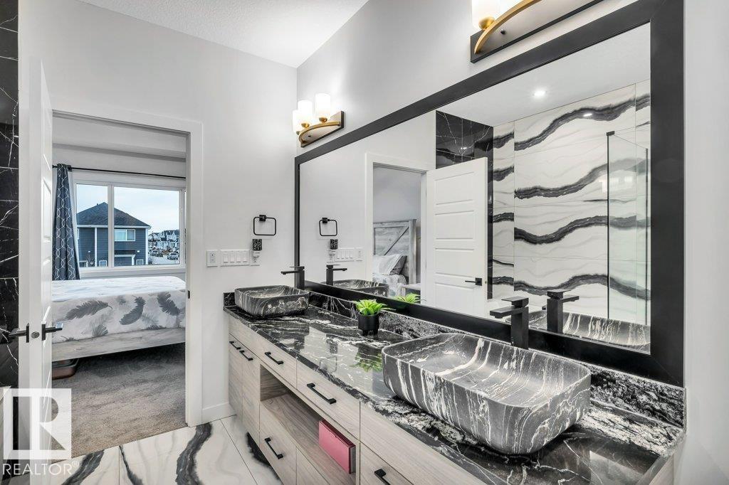 COME to Leduc! This AMAZING HOME in the prestige Southfork! Featuring 4-bedroom, 2.5-bathroom on 2,245 sq. ft. of living space on a LARGE CORNER LOT! The spacious foyer that opens to a modern, open-concept main floor. The living room impresses w/ its 20-ft ceilings, floor-to-ceiling picture windows & a sleek modern fireplace! The chef-inspired kitchen features a breakfast nook, large island, quartz countertops, modern cabinetry & a convenient walk-in pantry. The dining area overlooks the expansive backyard and opens onto a spacious deck, ideal for barbecues and outdoor gatherings. Upstairs, you'll find a spcious bonus room, 4 generously sized bedrooms, incl. a relaxing primary suite w/ double vanity, soaker tub w/ quartz finishes! A 5-pc common bath & laundry room adds convenience to the upper floor! The undeveloped basement offers endless opportunities to create a custom area, home gym, or guest suite with SEPARATE ENTRANCE! Located just a short drive from McKinely Park South & all essential amenities!