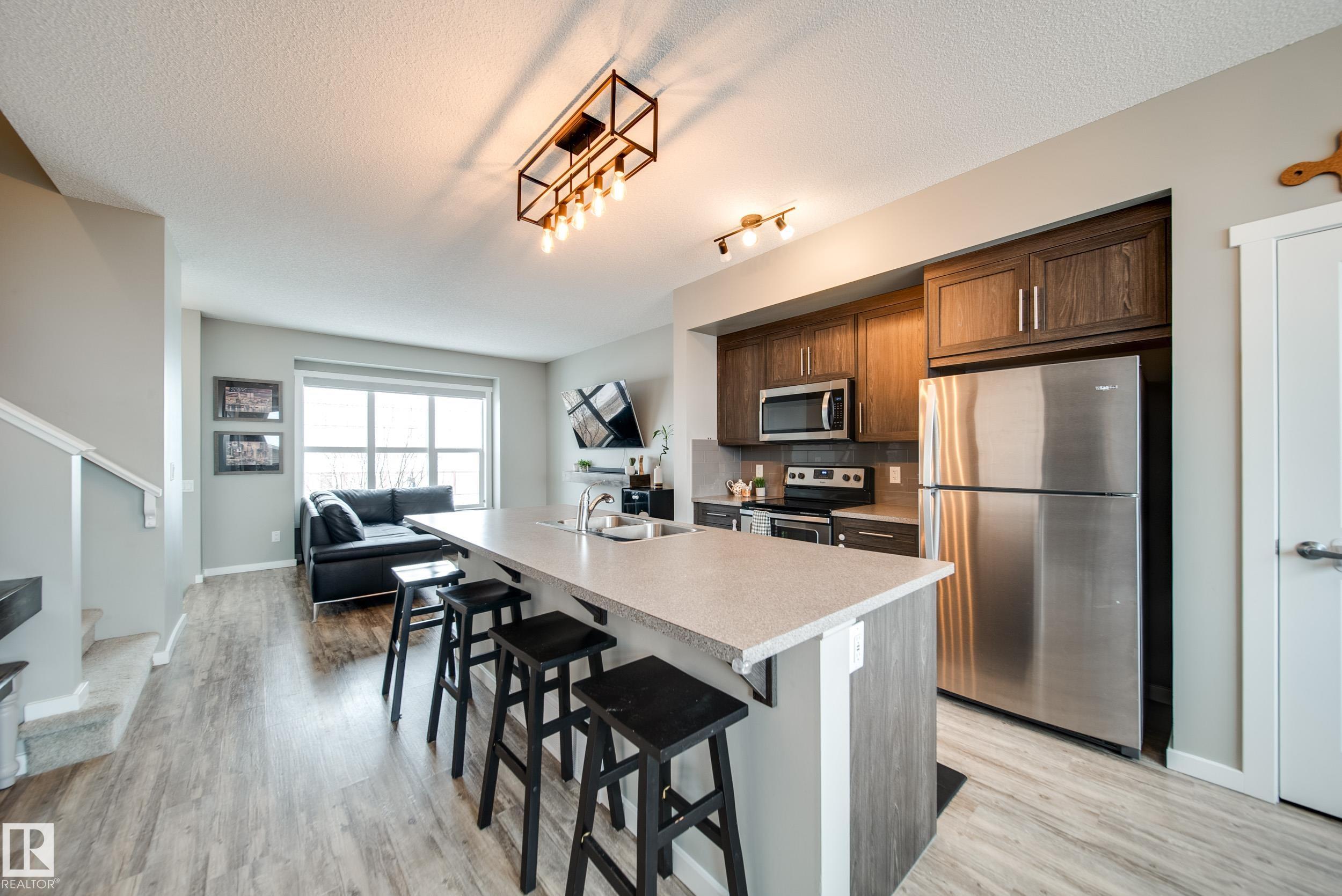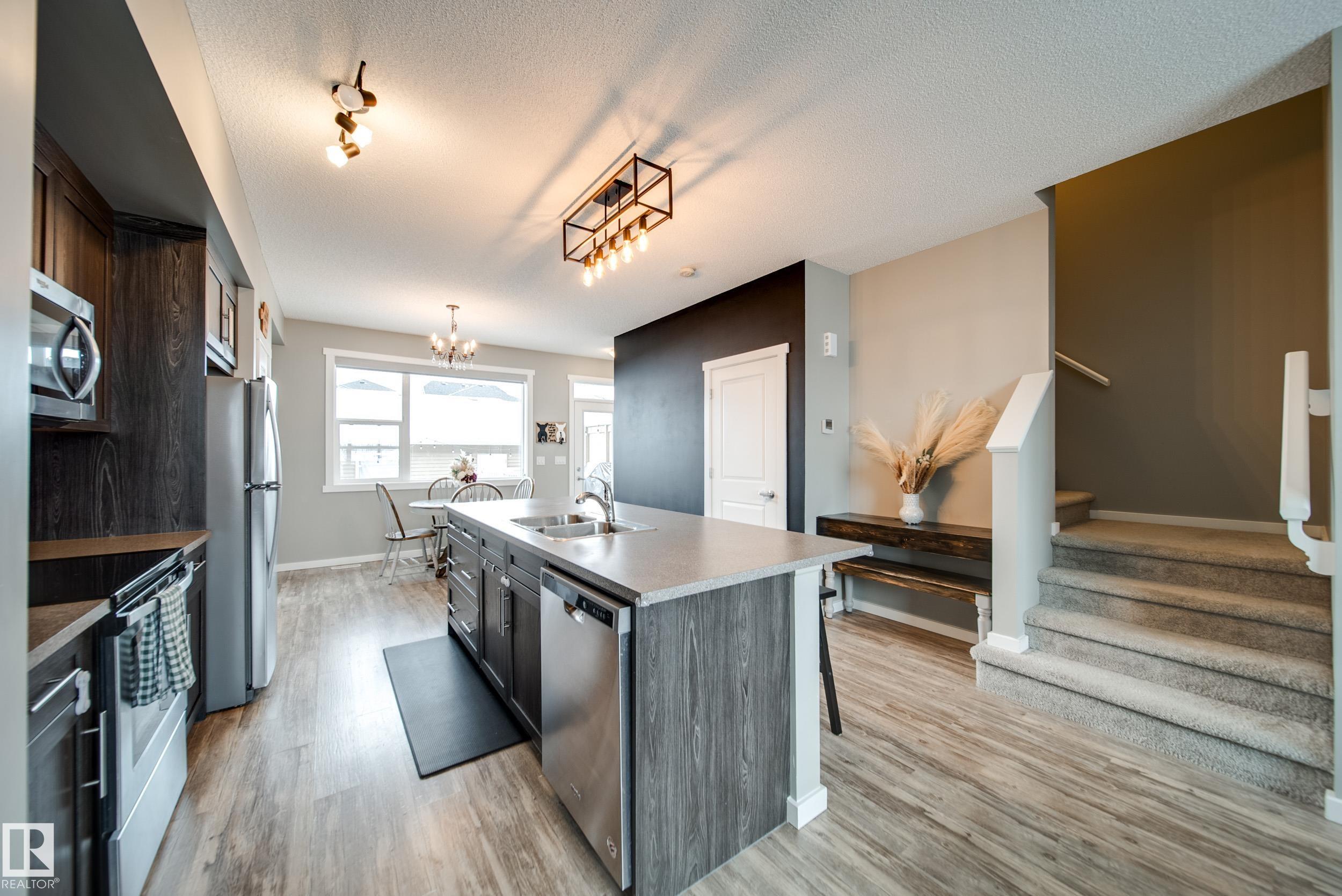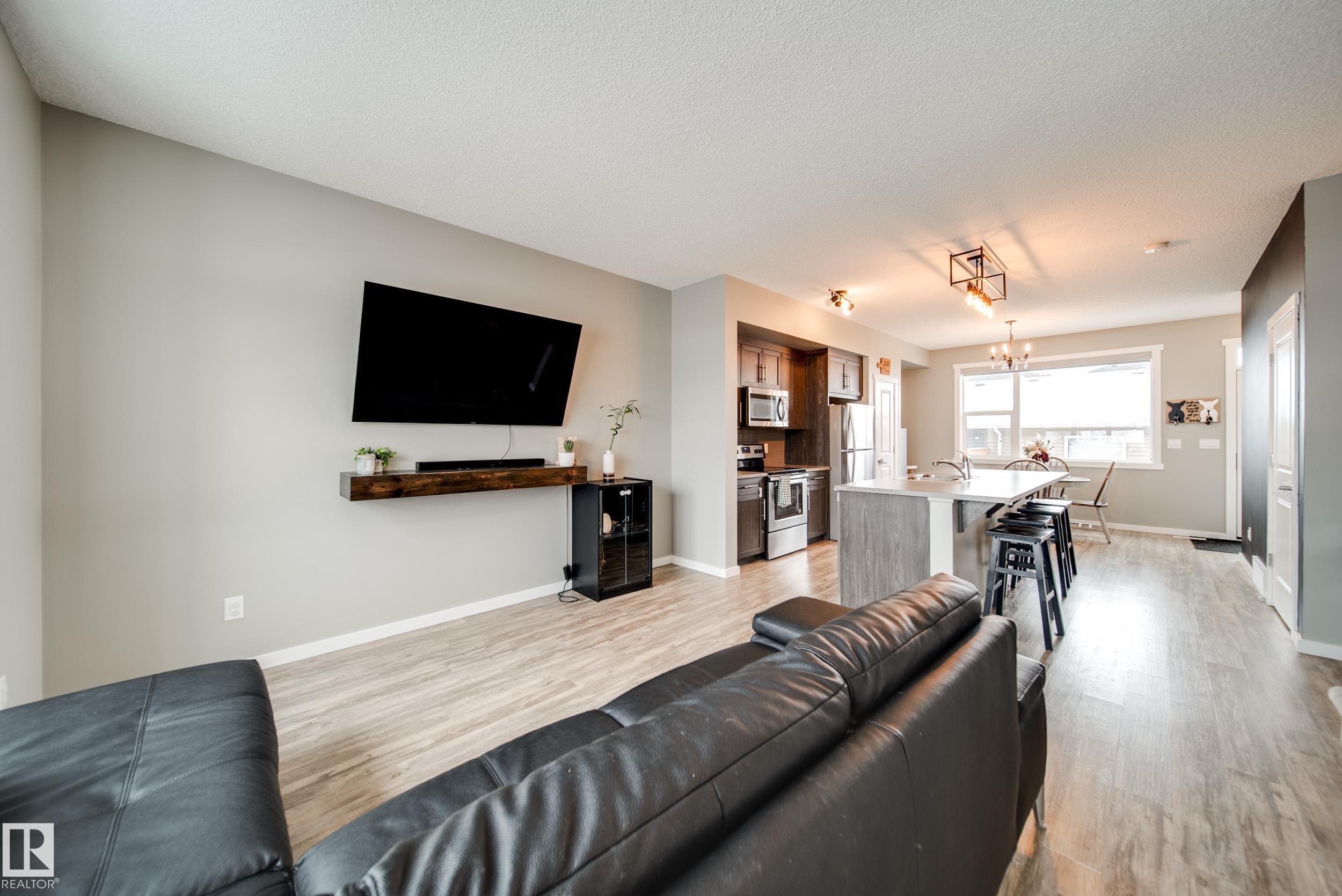 This thoughtfully built Homes by Avi townhome in family friendly Southfork is beautifully maintained w/4 beds, 3.5 baths & comes w/a FULLY FINISHED BASEMENT + OVERSIZED dbl detached garage that fits both a truck AND an SUV, offering space that truly grows with you. A bright, open concept main floor feat. 9' ceilings, VINYL PLANK flooring, stainless steel appliances, soft close cabinetry & an oversized island, perfect for everyday living & entertaining, w/a deck right off the dining area leading into your fully fenced & landscaped yard. Upstairs, the SPACIOUS primary bedrm inclds. a walk in closet & private ensuite, while 2 additional bedrms & a full bath provide comfortable space. Find the 4th bedrm & another full bath in the FINISHED bsmt, along with a versatile family room. Just 20 minutes south of Edmonton, South Fort offers an unbeatable lifestyle w/parks, pathways, & green spaces, along w/convenient access to both downtown Leduc and major commuter routes. Move in ready, NO CONDO FEES. Welcome home!
