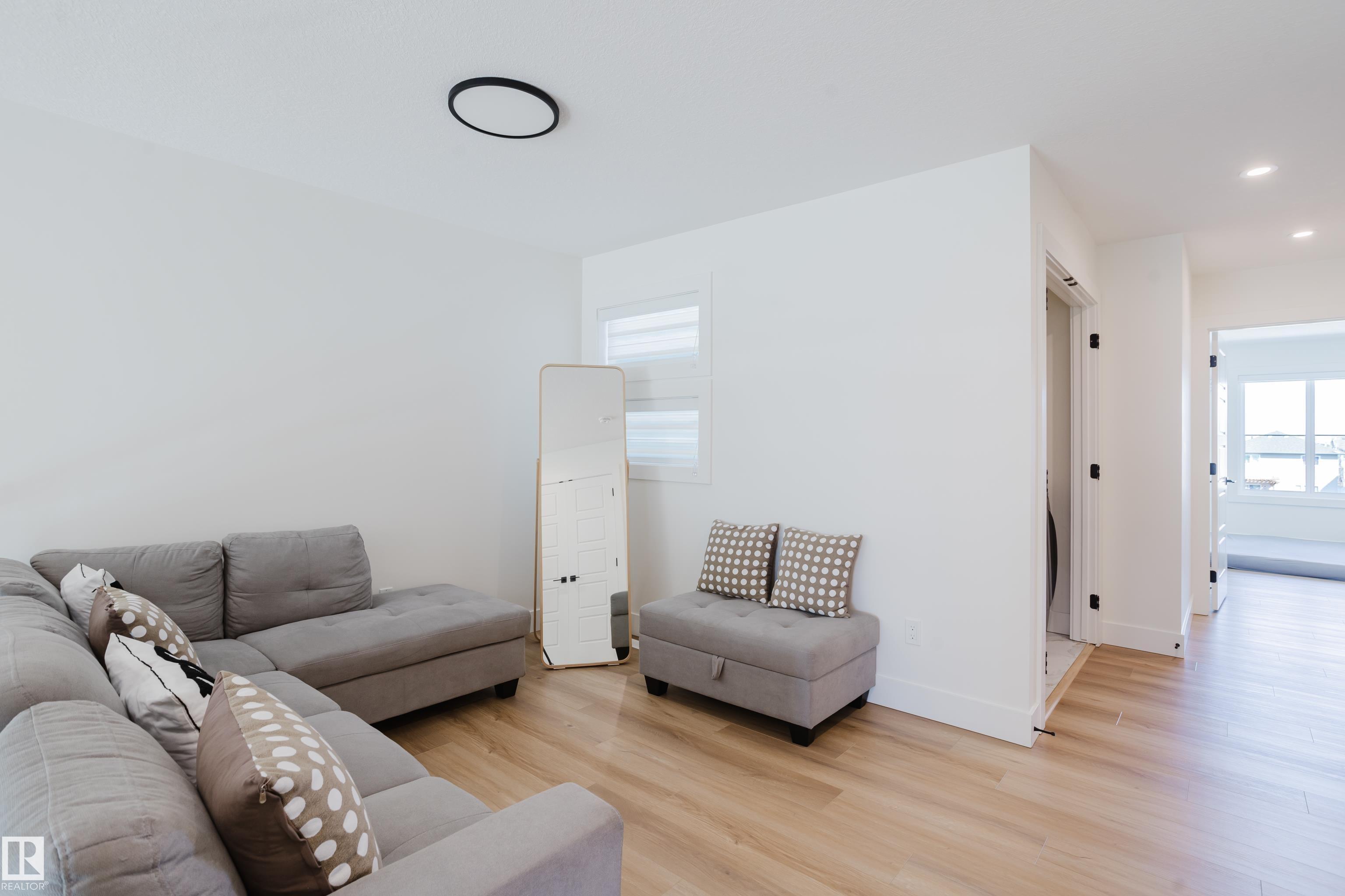 Welcome to this well-appointed 4-bedroom, 4-bathroom two-storey offering 1939 sq ft of functional living space. The main floor is designed for everyday living and entertaining, featuring 9' ceilings, a private den, and a stunning open-to-above living room at the rear with an electric fireplace and plenty of natural light. The kitchen showcases a quartz island, walk-through pantry with custom shelving and a microwave outlet, and modern finishes throughout. Upstairs offers a bonus room, two primary suites, spacious bedrooms with built-in organizers, and convenient upper-level laundry. Luxury vinyl plank flooring runs throughout the house for a clean, durable finish. Built last year and exceptionally well maintained, this home offers a like-new feel. Complete with a south-facing yard, double attached garage, and separate side entrance, all in Silverstone close to schools, trails, and quick city access.