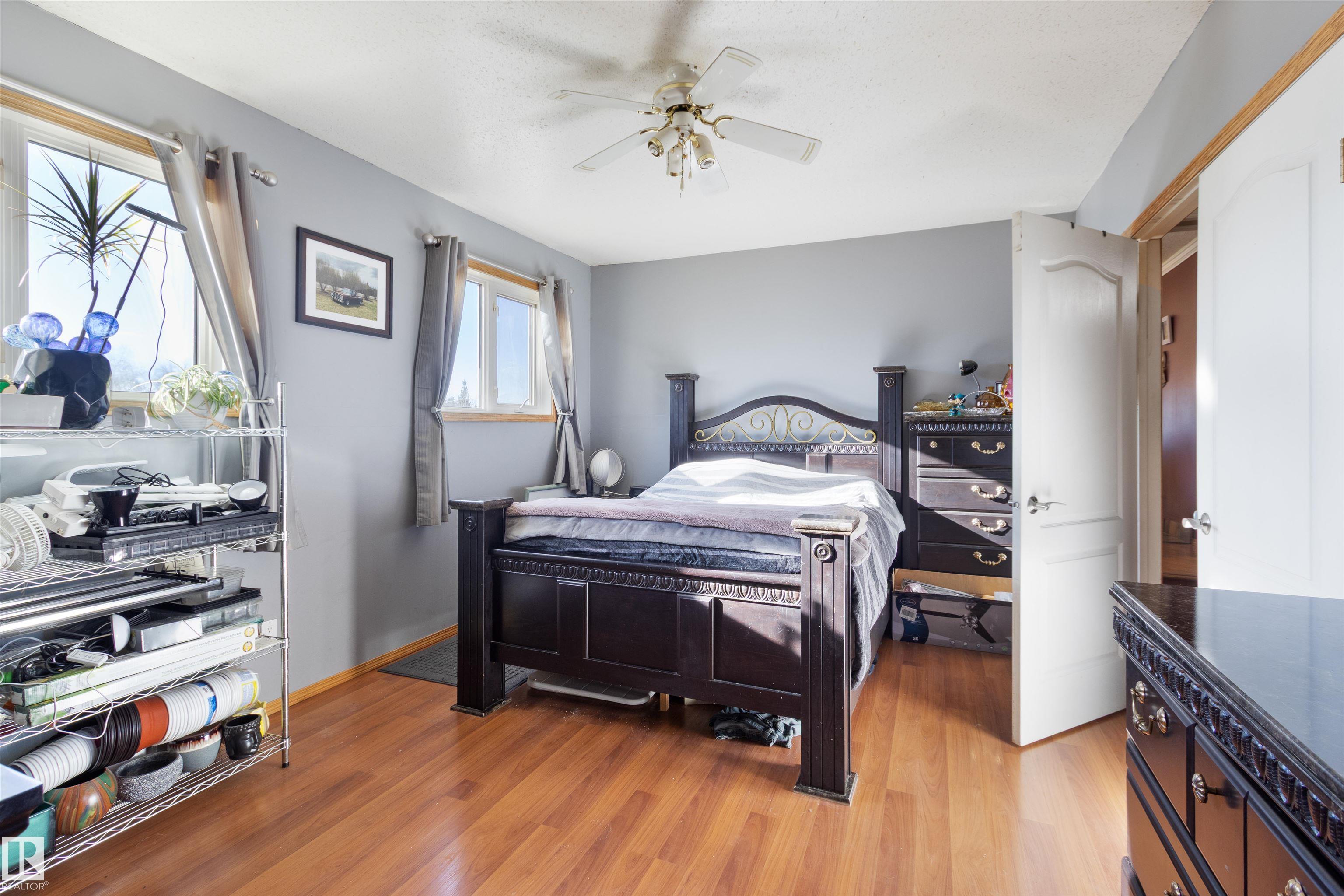 Just minutes from Drayton Valley, the golf course, and seconds from a grocery store, this 3-acre property offers pavement right to the driveway. The land is fully fenced with 5' page wire on three sides, 4' chain link along the front and secured with an automatic gate. For outbuildings - a 14x20 insulated barn, a 32x48 heated, finished shop with 220 wiring and a newer 12x14 electric overhead door, along with 3 sheds. The 5-bedroom bungalow was fully renovated in 1998, including electrical and plumbing, and offers over 1,600 sq ft on the main floor. Inside, you'll find a bright open floor plan, a large family room, main floor laundry, slate flooring, vinyl windows, and a wood stove. The finished basement provides even more functional living space. Recent updates within the past 3 years include hot water on demand, 25-year shingles, air conditioning, and updated appliances. This property combines country living, modern comfort, and exceptional garage space - all within minutes of Drayton Valley!