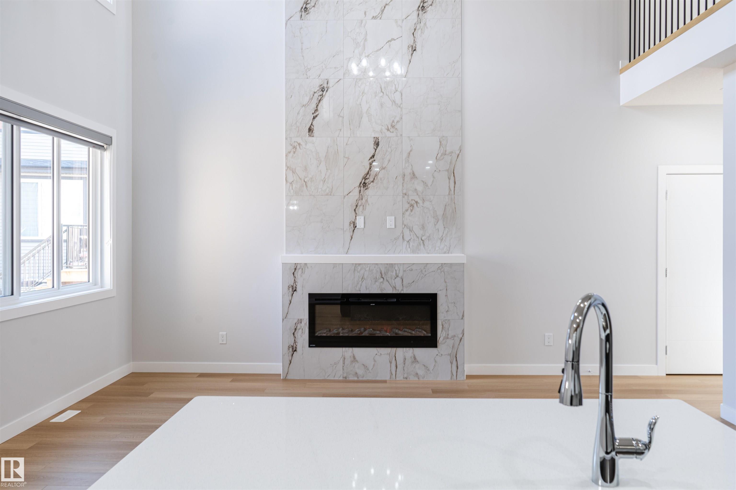 Stunning 1,971 sq.ft. 2-storey located on a huge lot in a prime location! This home offers a total of 4 bedrooms and 3 full bathrooms, including a convenient main floor bedroom and full bath--perfect for extended family or guests. The open-to-above living room is filled with natural light and features a striking tiled floor-to-ceiling fireplace as its centerpiece. The home is finished with luxury vinyl plank flooring throughout for a modern, durable touch. The gourmet kitchen is complemented by a functional spice kitchen, ideal for those who love to cook. Upstairs you'll find a spacious bonus room, perfect for family gatherings or relaxing evenings. A separate side entry leads to the basement, which has 2 large windows and excellent potential for a future suite. With stylish finishes, thoughtful design, and a functional floor plan, this home is a perfect blend of comfort and opportunity for growing families or investors alike.