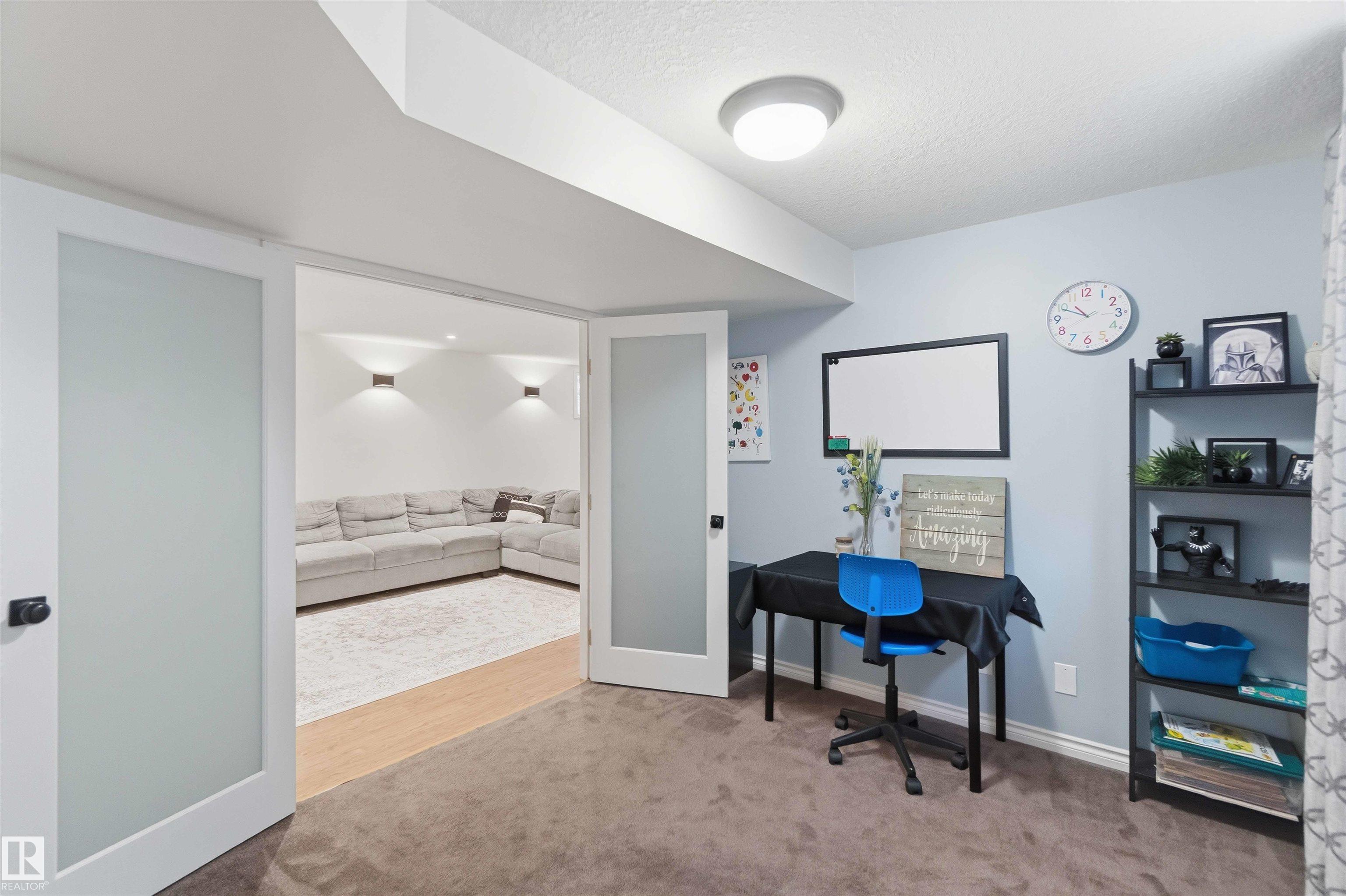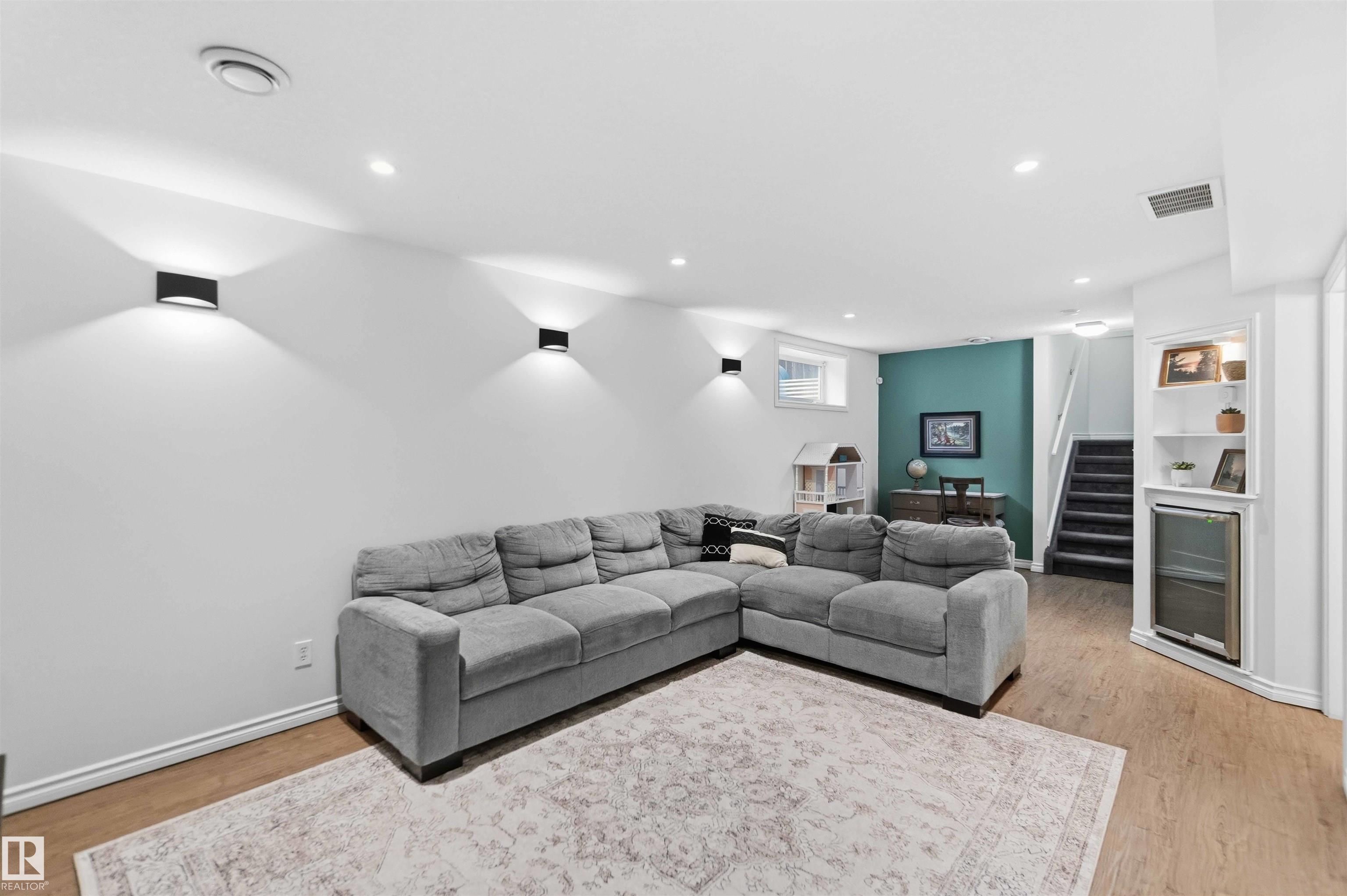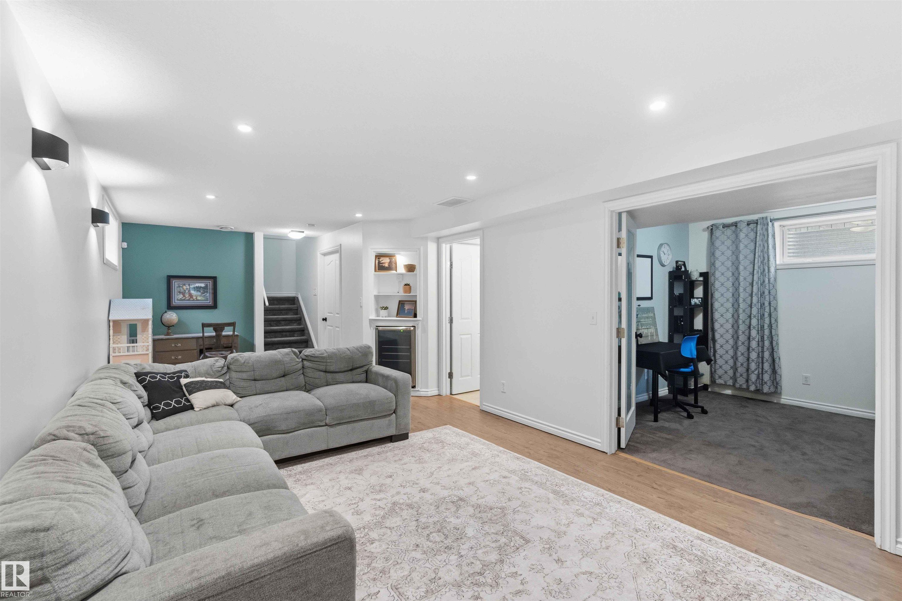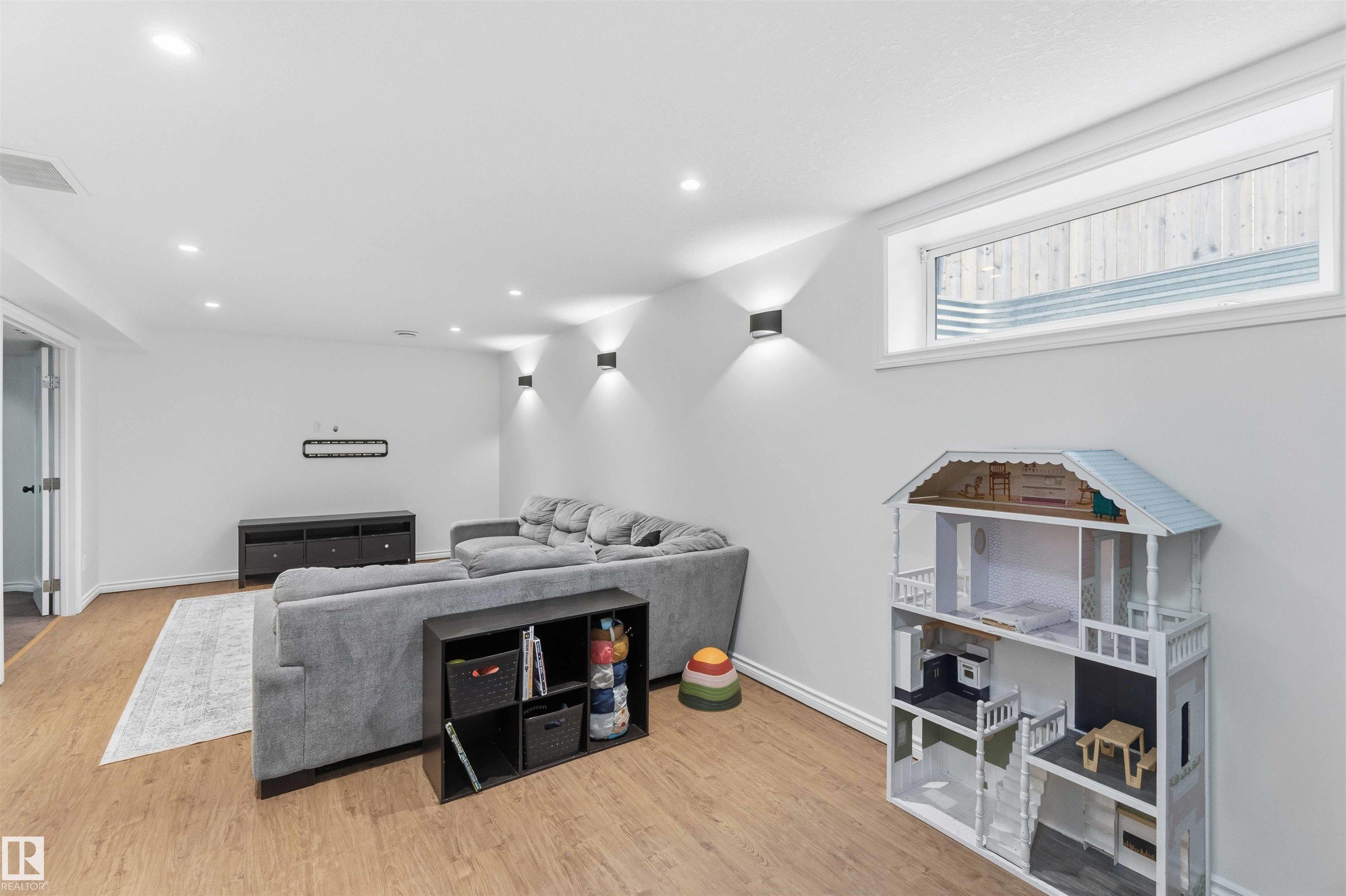 The perfect family home is here! This stylish 4-BDRM, 4-BATH home with a fully finished BSMNT is truly turn-key and ready for you to settle in. The bright living room features durable, modern laminate flooring, a cozy corner gas fireplace, and a lovely view of the backyard--perfect for everyday living and relaxing evenings. The open-concept kitchen shines with crisp white cabinetry, plenty of storage, and sleek stainless steel appliances. An open-to-above staircase fills the home with natural light and leads you upstairs to a spacious primary retreat with a full ensuite and park views, plus two generously sized BDRMS and another full bath. Downstairs, the fully finished BSMNT offers a large rec room, a fourth BDRM, and a full bath--perfect for guests or home office. Step outside and enjoy summer in your west-facing yard, while central A/C keeps you cool on those hot days. Located just steps from a skating rink, soccer field, and expansive green space. Freshly painted with a newer and brand-new shingles!