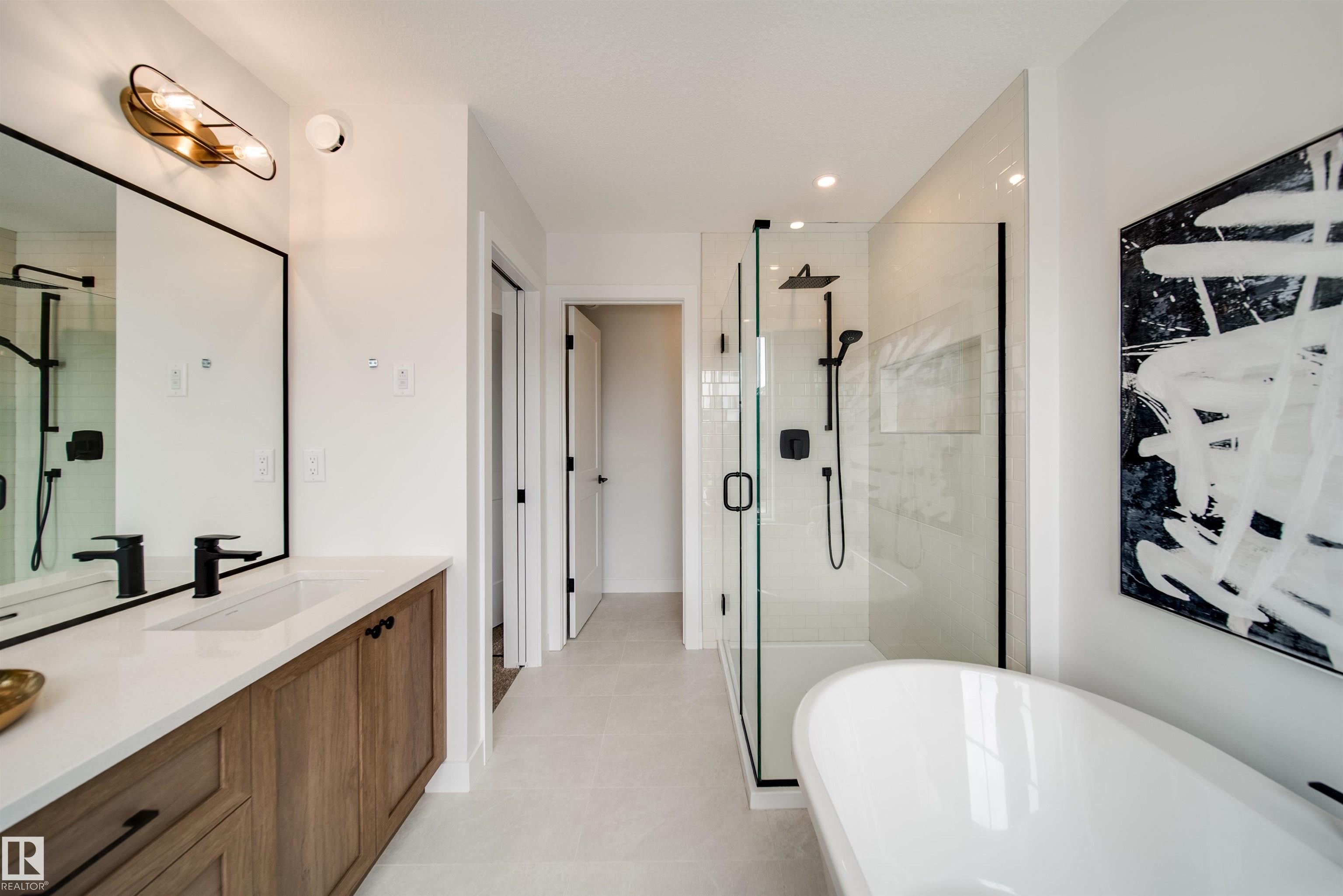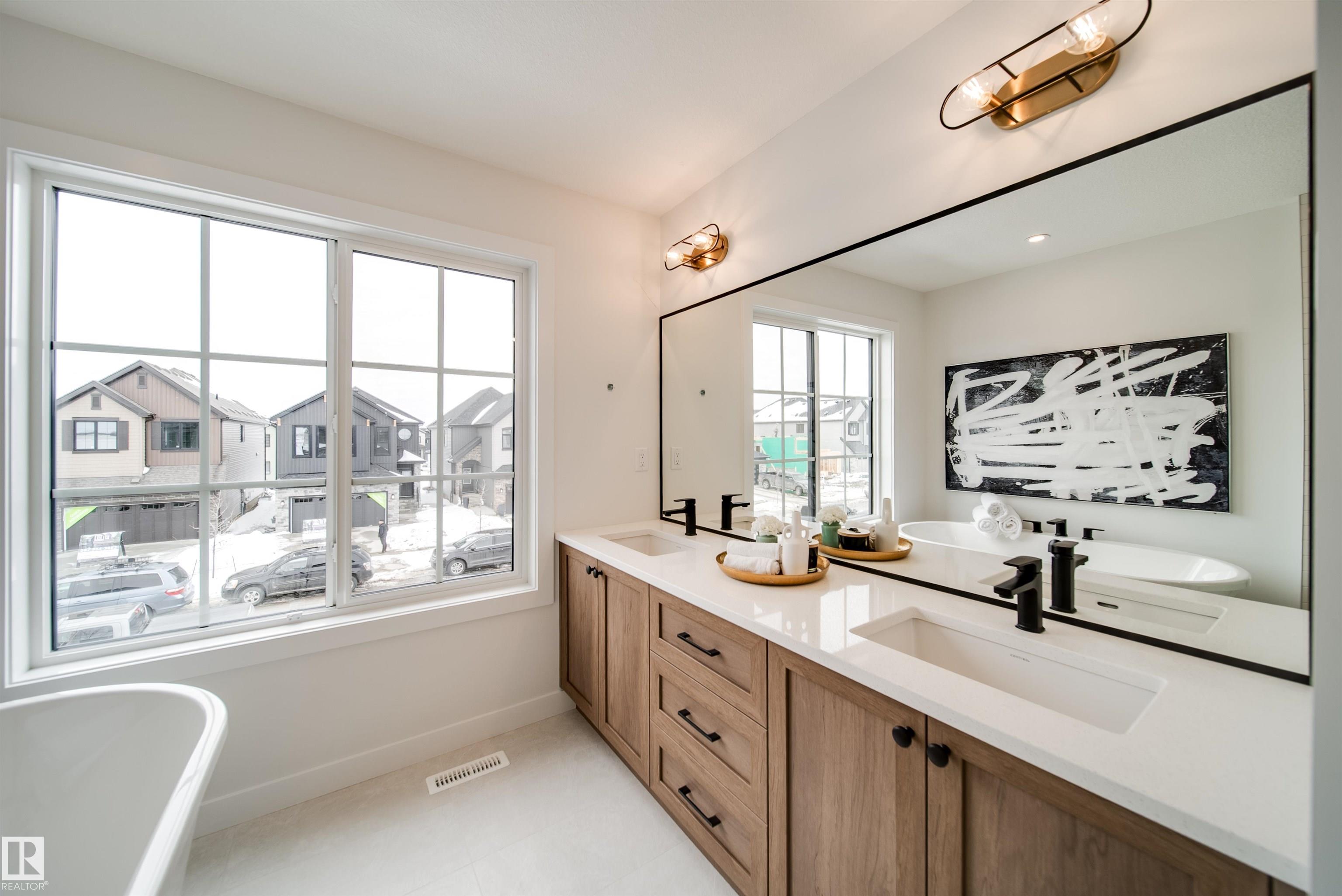 Welcome to The Vantablack by award winning Justin Gray Homes, situated on 30' pocket POND BACKING WALKOUT lot in Cherot, offering 2519 sqft of refined living space in a professionally curated French Country palette by CM Interiors. Featuring soaring open-to-below ceilings, 9' ceilings & 8' doors on the main, HARDWOOD floors & a cozy GAS fireplace. The main floor den w/glass walls is perfect for a stylish home office. An OVERSIZED DBL GARAGE leads to a mudroom w/custom MDF built-ins. Through JG's iconic archways, step into a WALKTHROUGH pantry & chef's kitchen w/huge QUARTZ island w/premium dove-tailed cabinetry & full KitchenAid APPLIANCE PACKAGE INCLUDED. Enjoy sunset pond views off your 13'6" x 10' REAR DECK. Upstairs find 3 spacious bdrms incld. a dreamy primary w/VAULTED ceilings & wainscoting wall feature, spa-like 5pc ensuite & massive WIC w/convenient direct access to the laundry rm. Located near future schools, rec centre, parks & trails. *Photos of similar model, final layout/finishes may differ.