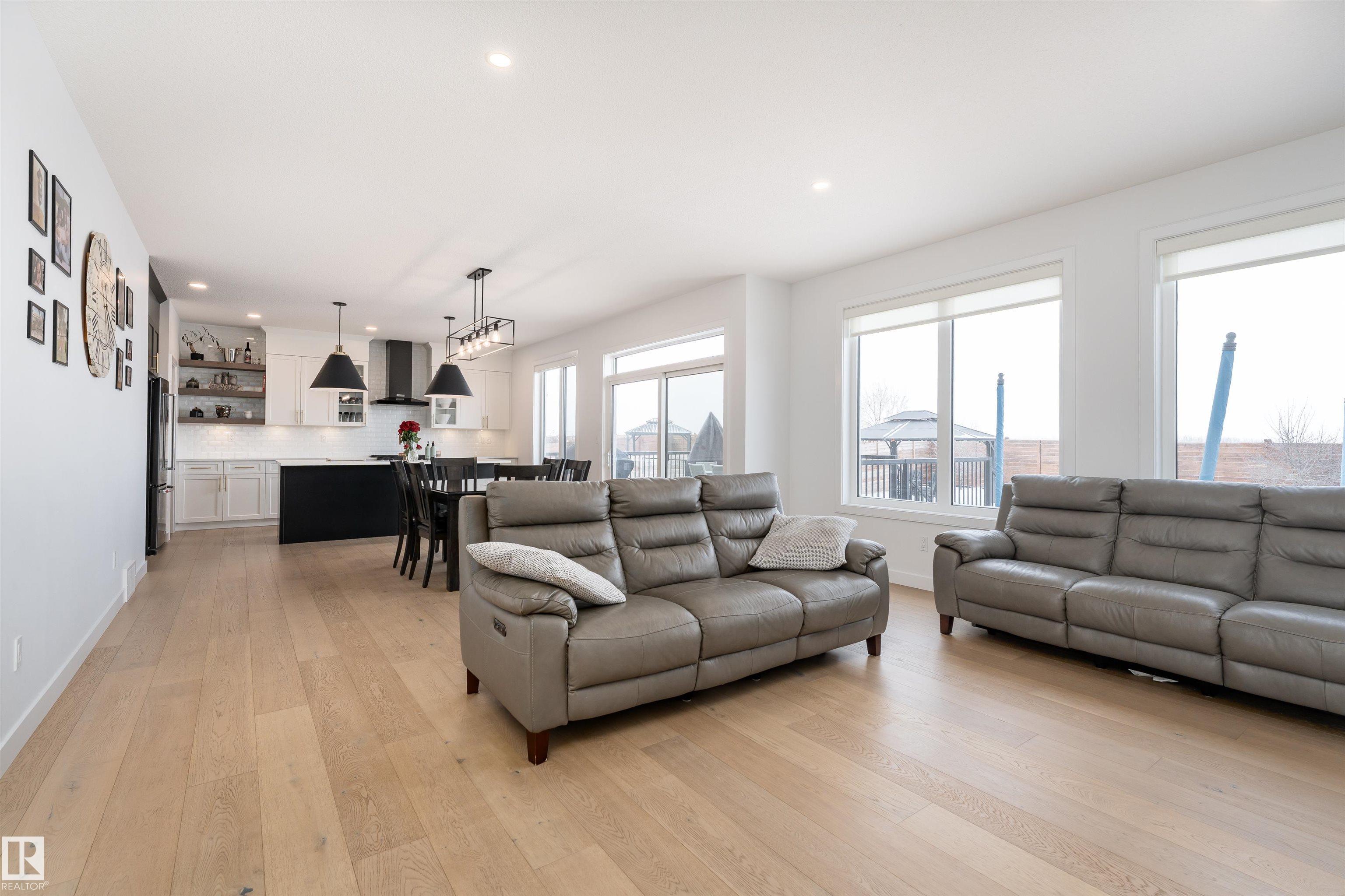 Discover luxury lakeside living in this stunning Sarasota custom-built home, situated on an executive lot in the prestigious Jensen Lakes community. Enjoy swimming, fishing, ice skating, kayaking, court sports and more, plus the convenience of being just steps from two excellent schools! Spanning 3,400 sq. ft. of developed living space, this home features a fully finished basement with soaring 10-foot ceilings and in-floor heating for ultimate comfort. The oversized, heated triple attached garage provides abundant room for vehicles and recreational toys. Step outside to a maintenance-free front yard and an expansive composite deck in the backyard--perfect for entertaining or relaxing. 9-foot ceilings, designer kitchen with two-tone cabinets & gas range, a walk-through pantry complete with bar fridge, rich hardwood floors + built-in bench in the back entry. Upstairs offers versatile flex space, laundry room, generous sized bedrooms, spa like ensuite with soaker tub + central A/C throughout. Shows 10/10!