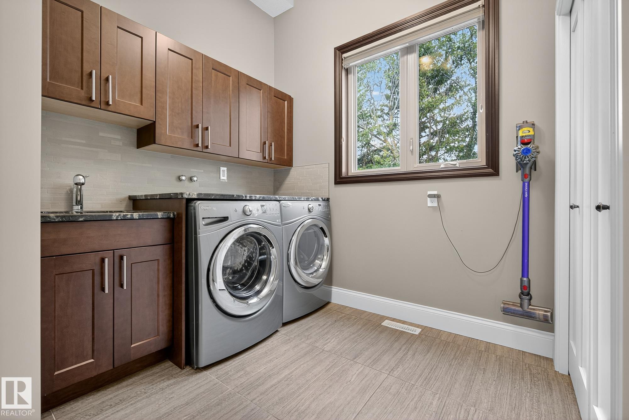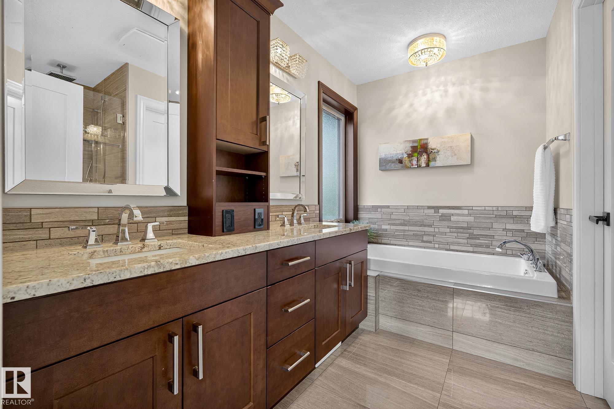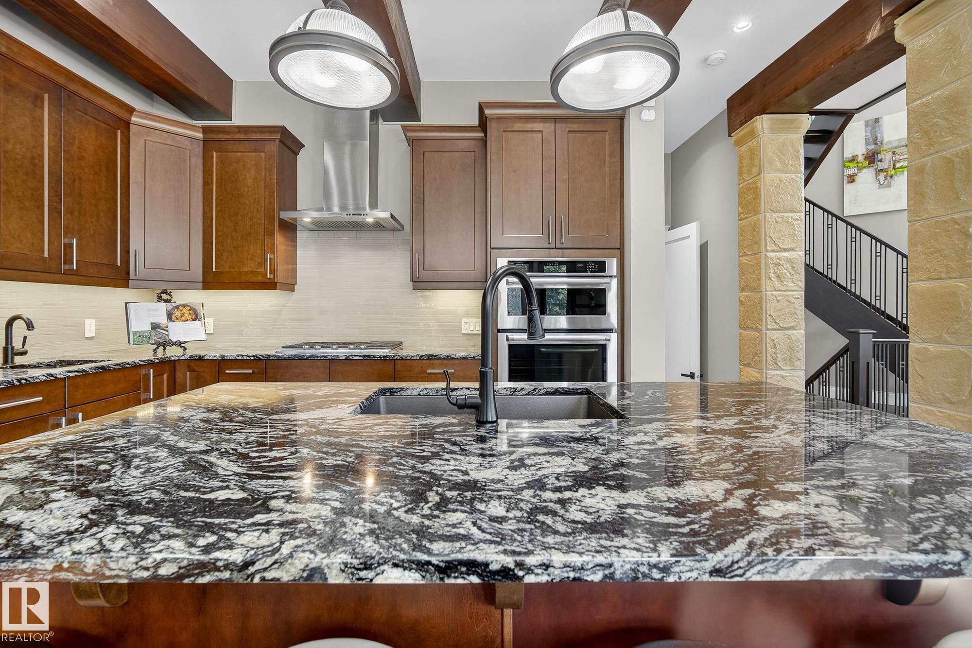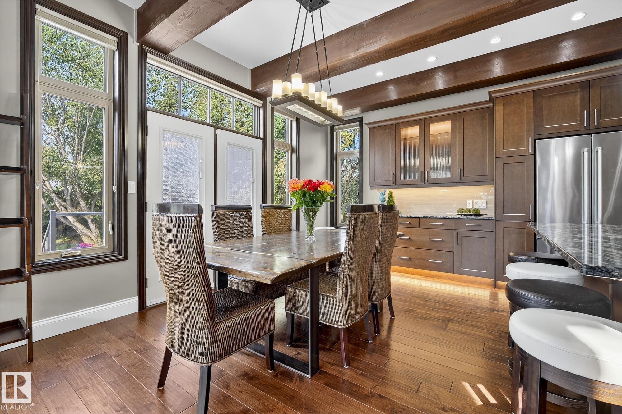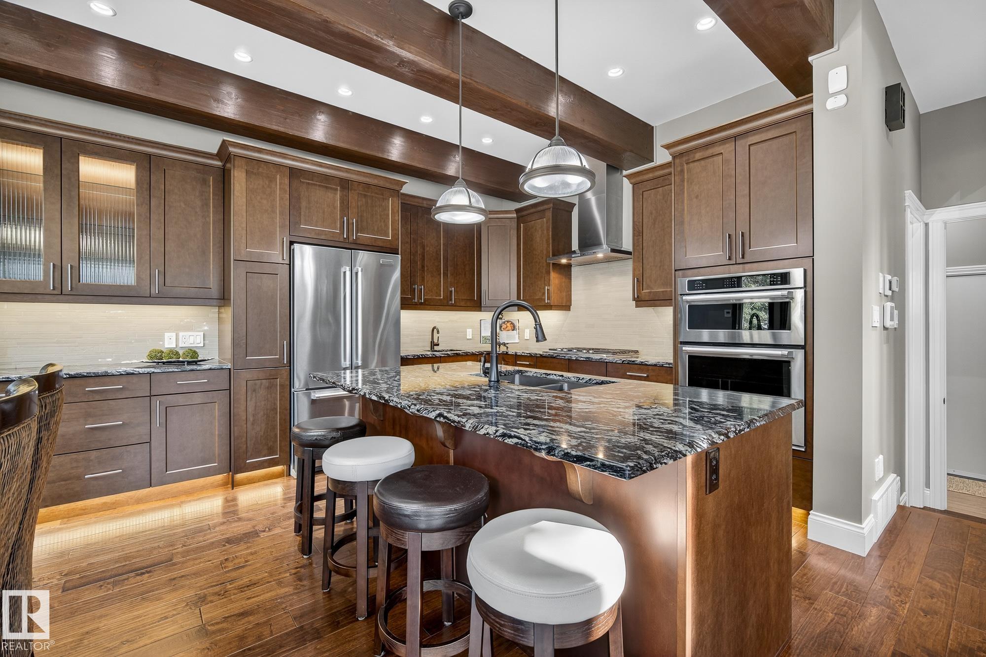FORMER BROOKHAVEN SHOWHOME on 1.55 acres located ACROSS FROM SANDPIPER GOLF COURSE & under 5 MINUTES WEST OF ST. ALBERT! Unique 4-level split dream home featuring a full custom kitchen by Gem Cabinets, dark wood beams & stone pillars on the main level, floor-to-ceiling windows to enjoy your tree-line views, curved wood open tread stair case leading to your huge den + bonus room and screened-in upper patio by Suncoast Enclosures. Upstairs you'll find 3 bedrooms & 2 full bathrooms including a spacious primary retreat looking out onto the trees. The basement is fully-finished w/ a 4th bedroom, projector TV area & large storage room. Your vehicles will stay cozy all winter long in your fully finished & heated triple attached garage. Outside, you can bring your acreage dreams to life with lots of space to build a secondary shop. And yes, you have FIBRE INTERNET! Enjoy the amenities of city living paired with the serenity + green space of rural life. Welcome home!