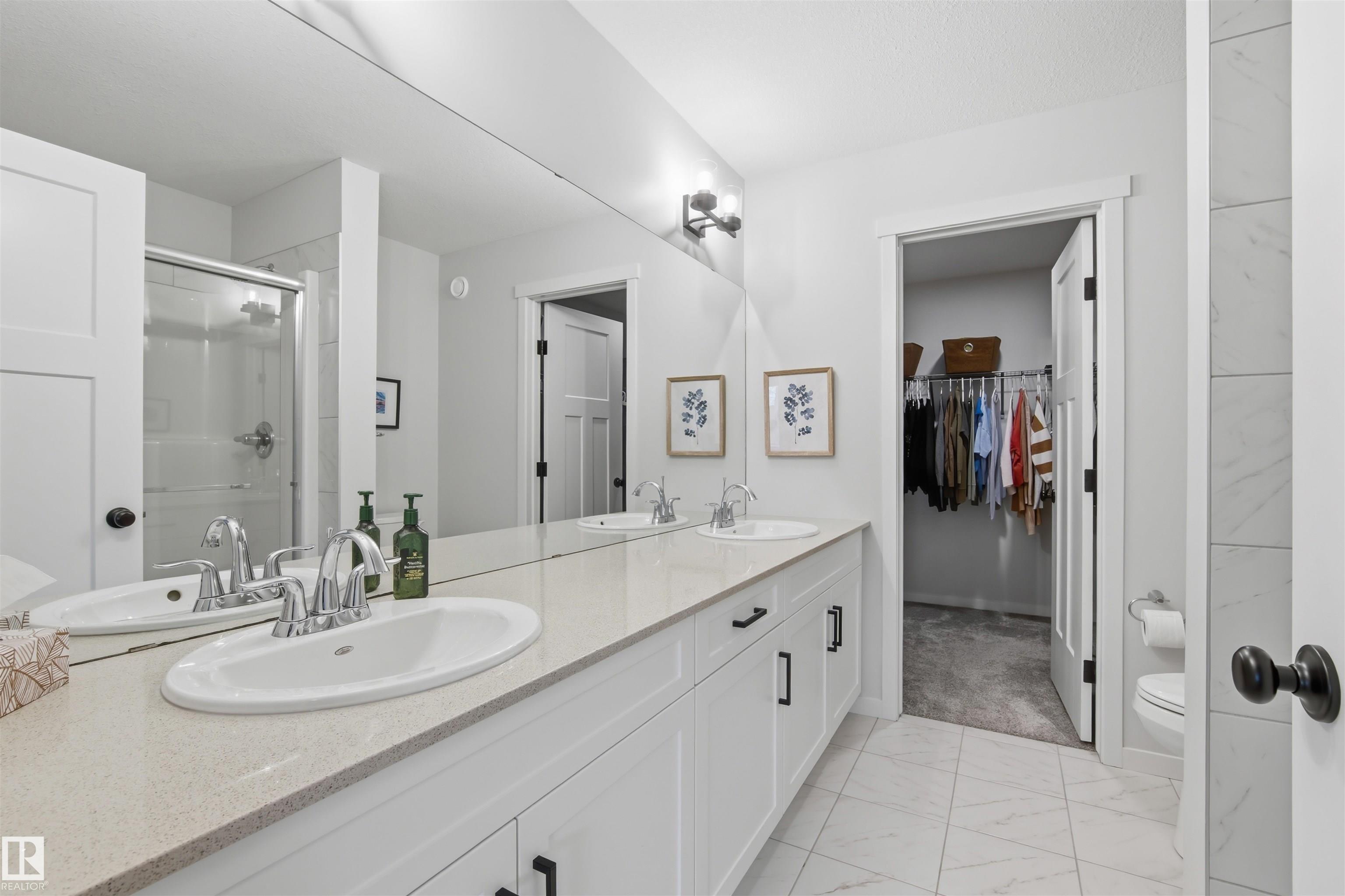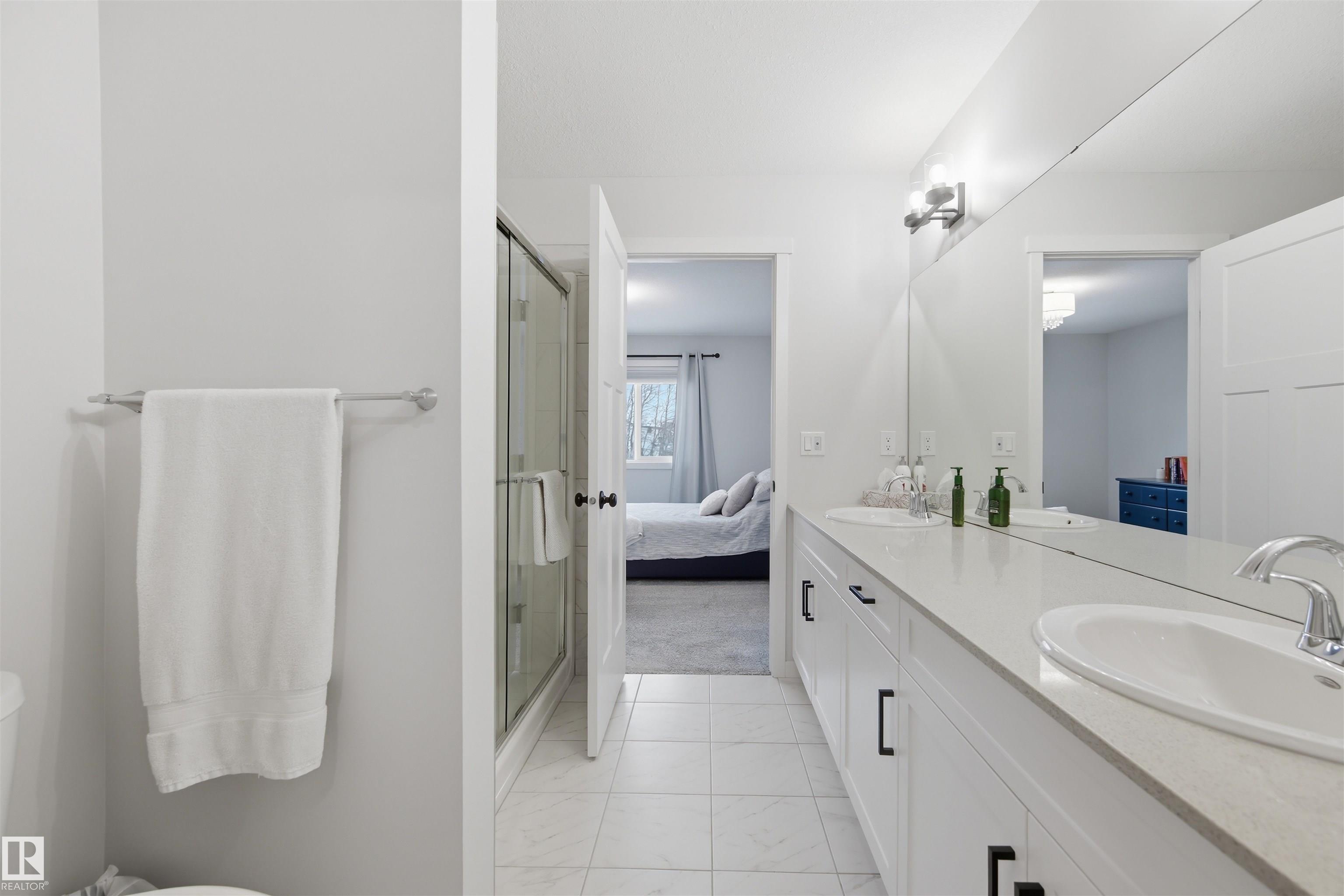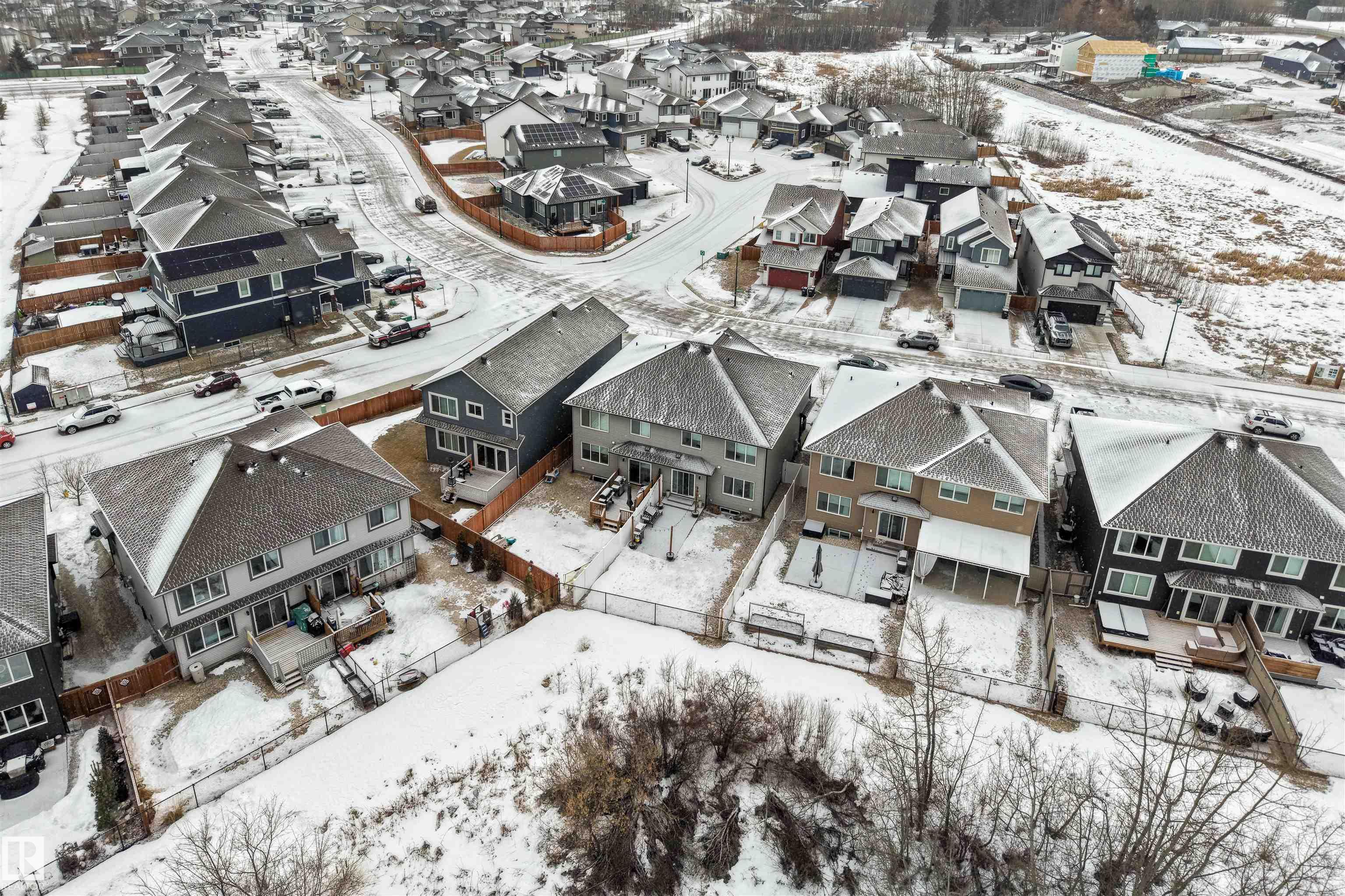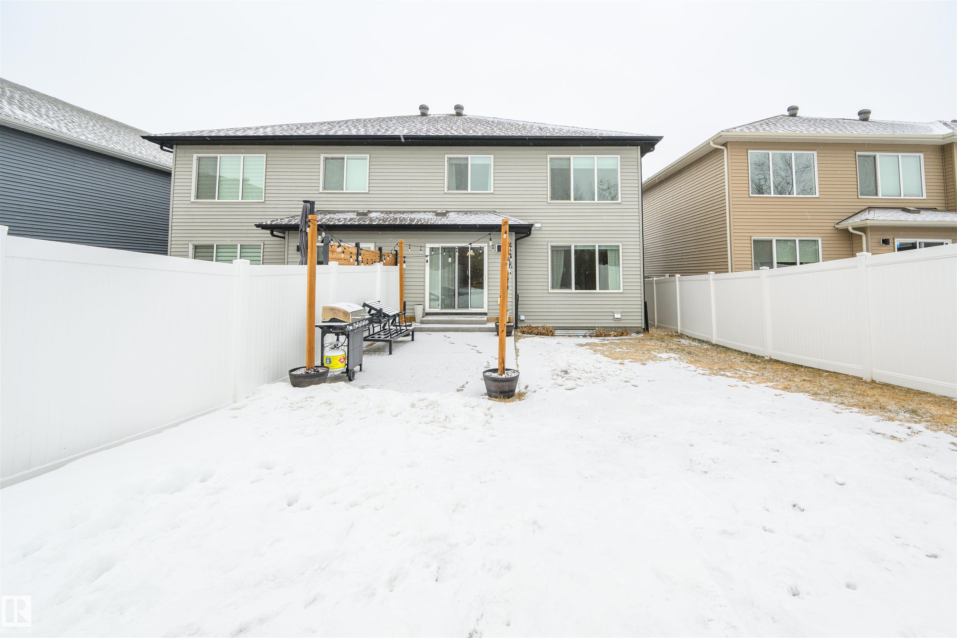 Better than new and backing a tranquil wooded area, this immaculate Coventry-built half duplex offers OVER 2,500 SQUARE FEET OF TOTAL LIVING SPACE, including a PROFESSIONALLY FINISHED BASEMENT, and delivers thoughtful upgrades without the wait. Built in 2021, the home also features COMPLETED LANDSCAPING, allowing you to move in and enjoy immediately. Inside, bright contemporary finishes highlight a beautiful open-concept kitchen that flows naturally into the main living space, creating an inviting setting for everyday living and entertaining. Upstairs features the convenience of laundry on the bedroom level, a spacious primary suite with a walk-in closet, two additional well-sized bedrooms, and a versatile bonus or flex area perfect for movie nights, relaxing, or a home office. Located in Ardrossan, families are drawn to nearby schools, parks, walking paths, and a strong sense of community, all while enjoying quick access to Sherwood Park and Edmonton. Opportunities like this are rare, so don't miss out!