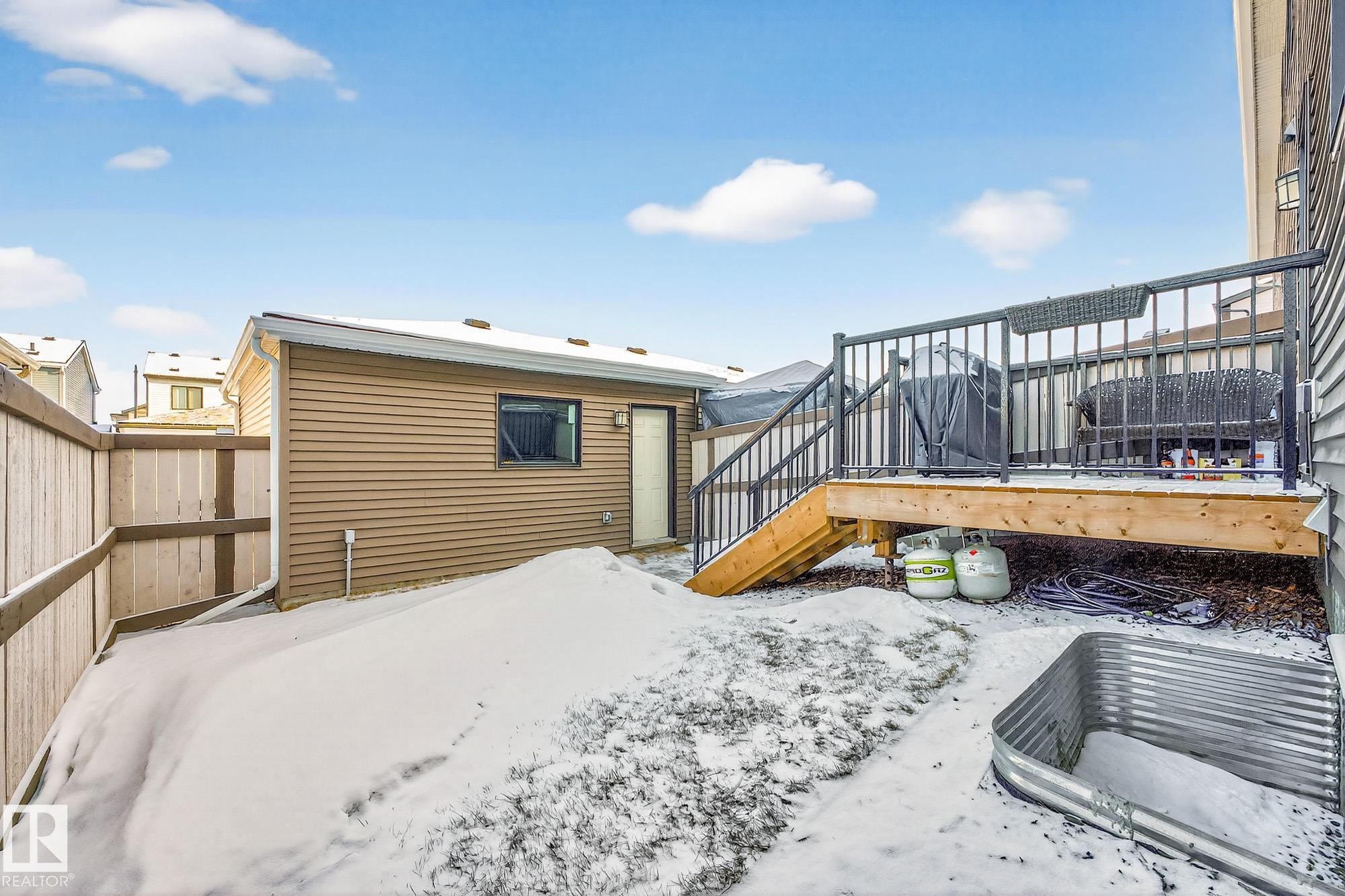 Why wait months for a new build, haggle over and pay a premium for every extra, wait for grass and fence, when it's ALL ALREADY DONE HERE? Welcome to this stunning 2-storey END UNIT townhome in sought-after Summerwood, where the farmhouse exterior charm greets you before you even step inside. The sun-soaked open concept main floor features VINYL PLANK FLOORS, QUARTZ COUNTERS, and a layout that works for real life. BLACKOUT BLINDS already installed - no measuring, no ordering, no waiting. Upstairs, your PRIMARY BEDROOM easily fits a king-sized suite with a WALK-IN CLOSET, private ENSUITE, 2 extra bedrooms, and convenient 2nd floor OVERSIZED LAUNDRY closet. The unfinished basement with BATHROOM ROUGH-IN and 9' CEILINGS is ready for your vision and equity building. Outside, enjoy a FENCED & LANDSCAPED YARD with DECK, DOUBLE DETACHED GARAGE, CENTRAL A/C, and positioned DIRECTLY ACROSS FROM THE PLAYGROUND. NO CONDO FEES. No upgrade negotiations. No construction delays. Just move in and love where you live.